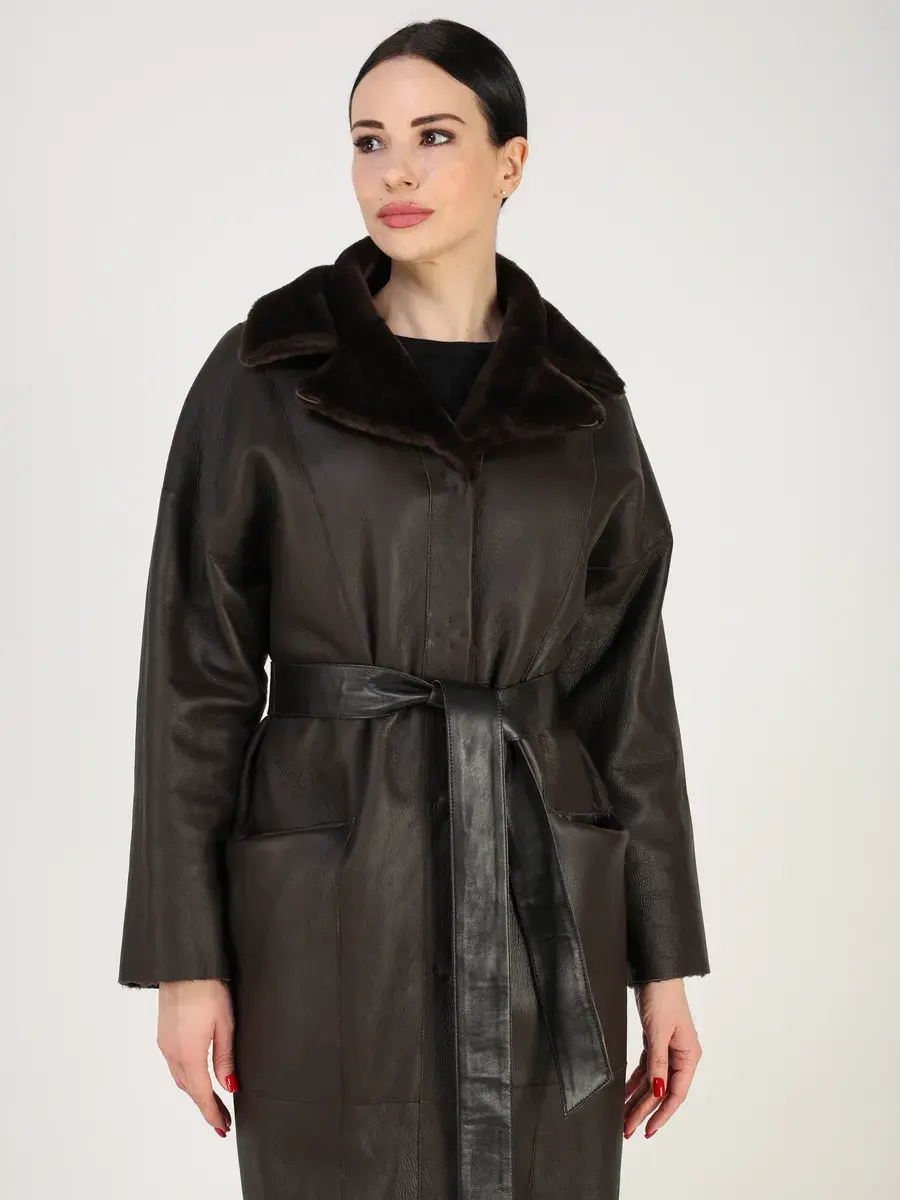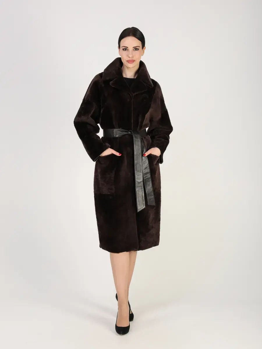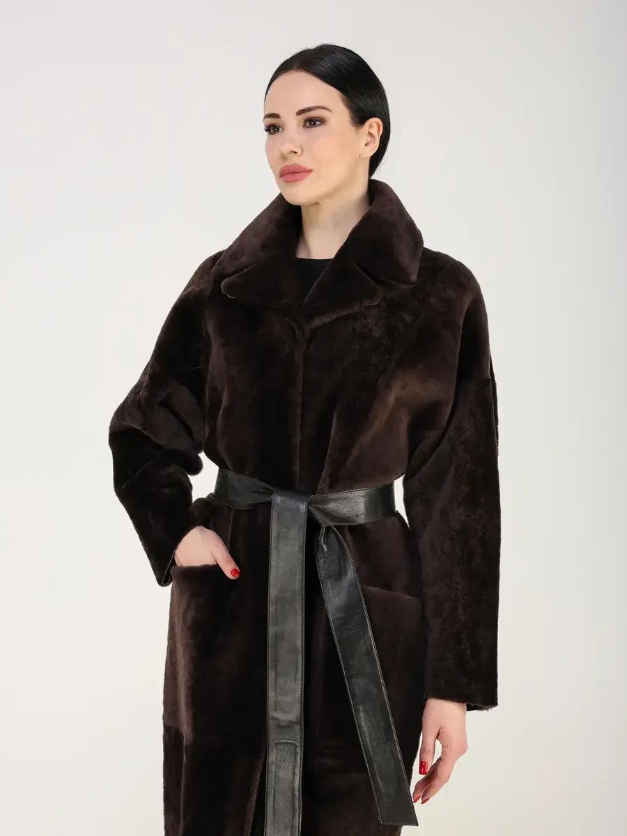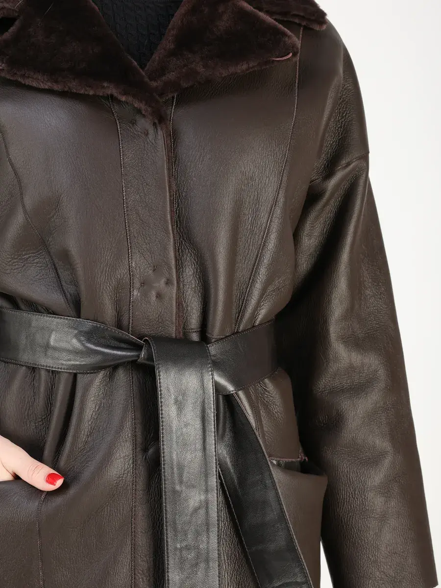 Пальто зимнее женское выполнено из натурального меха овчина, что делает ее очень теплой и комфортной для холодных дней зимой и осенью.