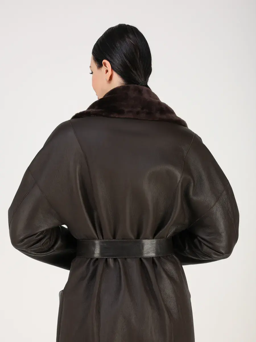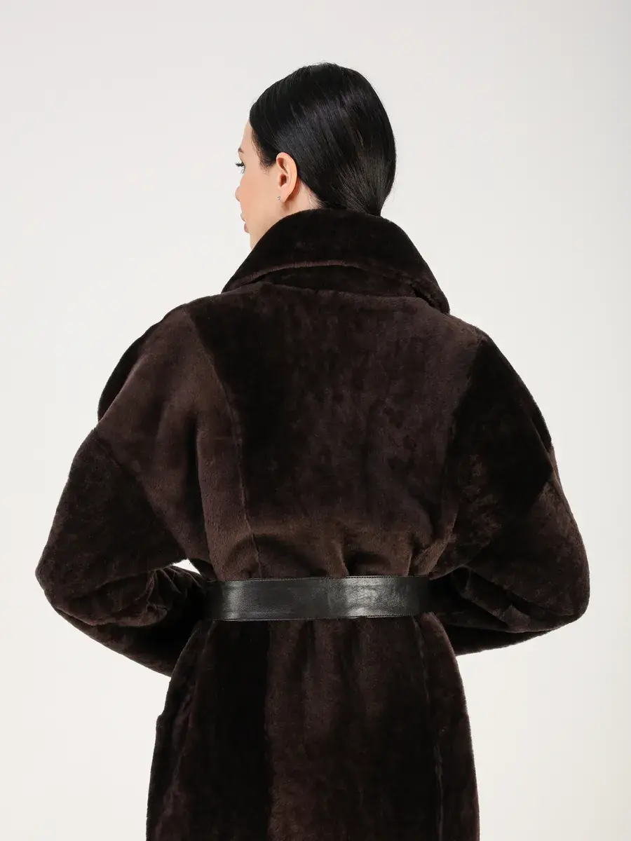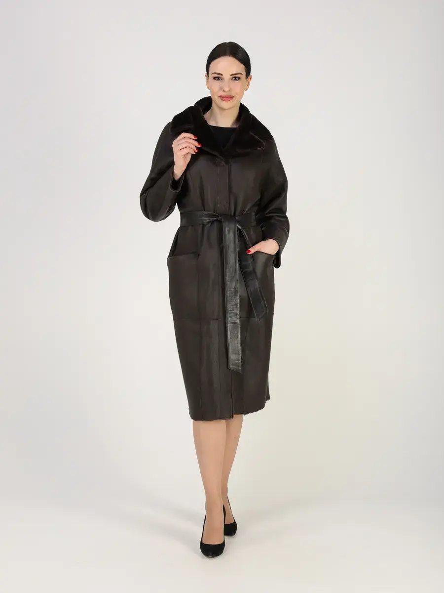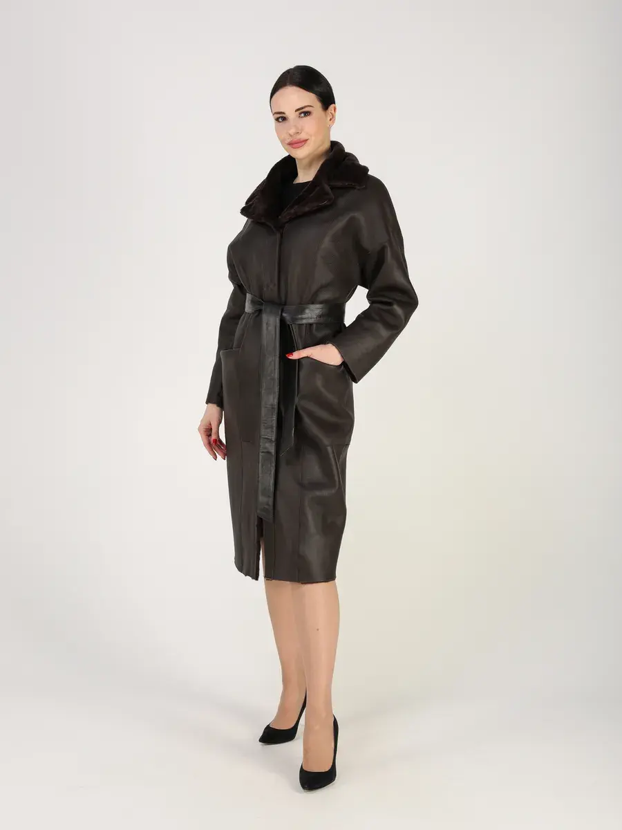 Пальто зимнее женское выполнено из натурального меха овчина, что делает ее очень теплой и комфортной для холодных дней зимой и осенью.