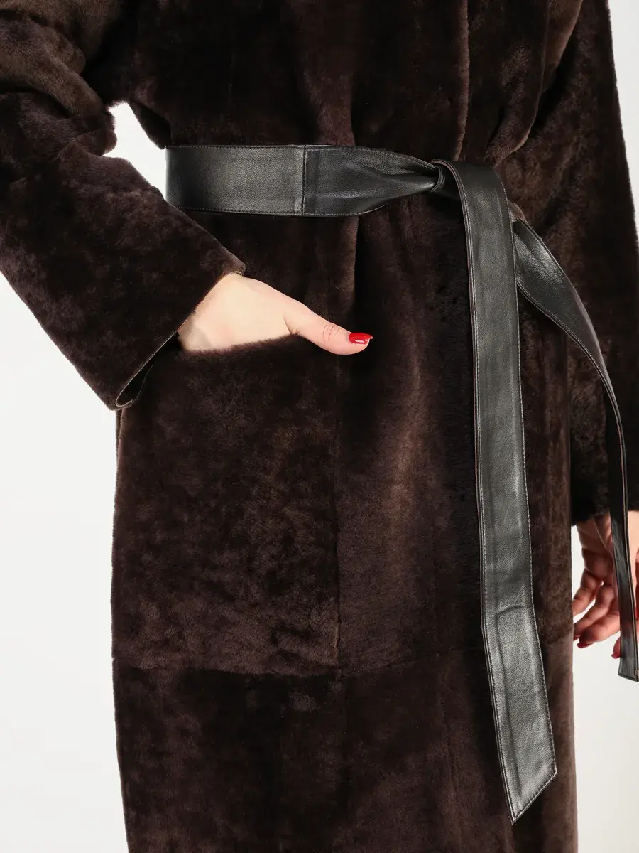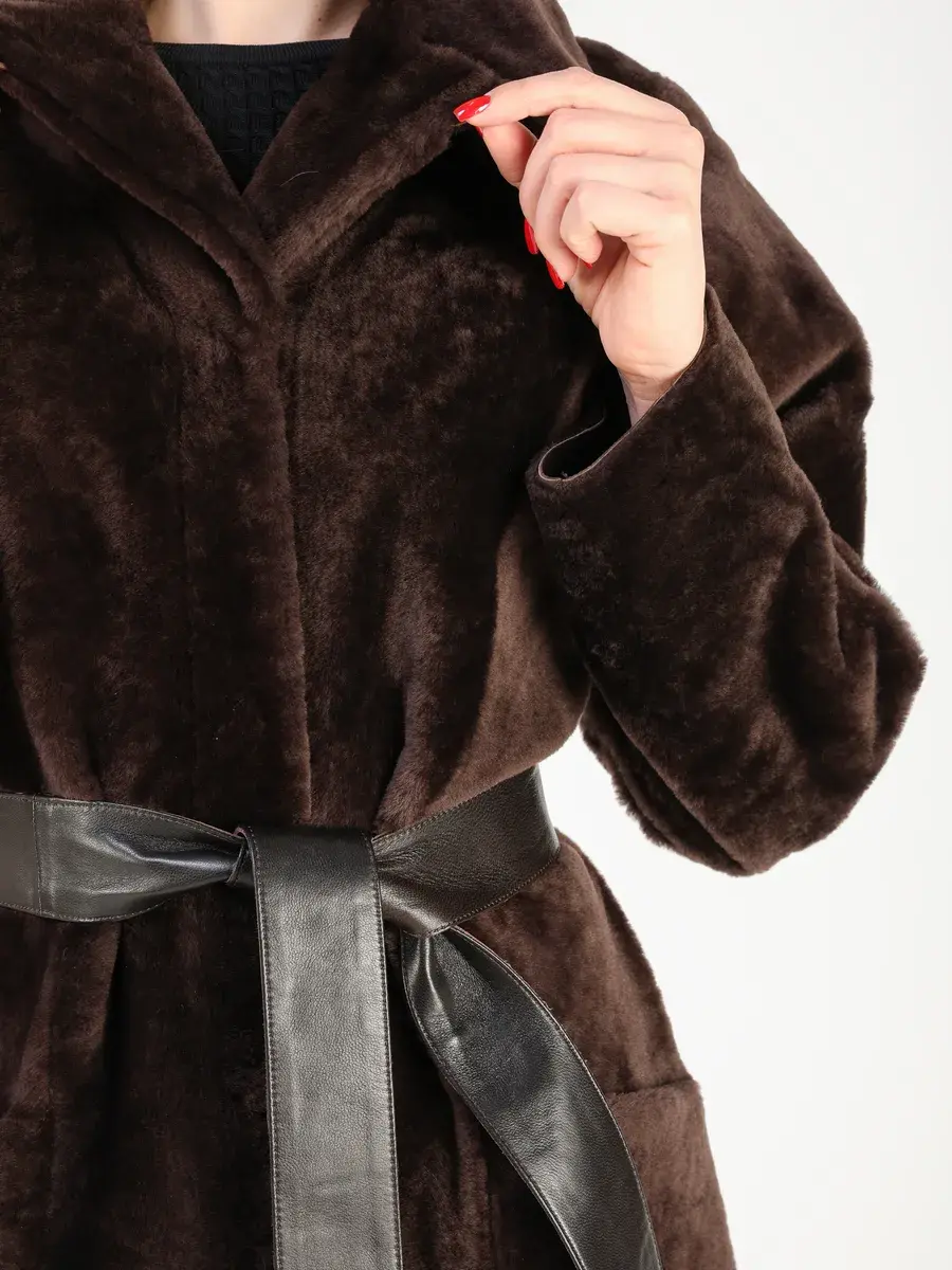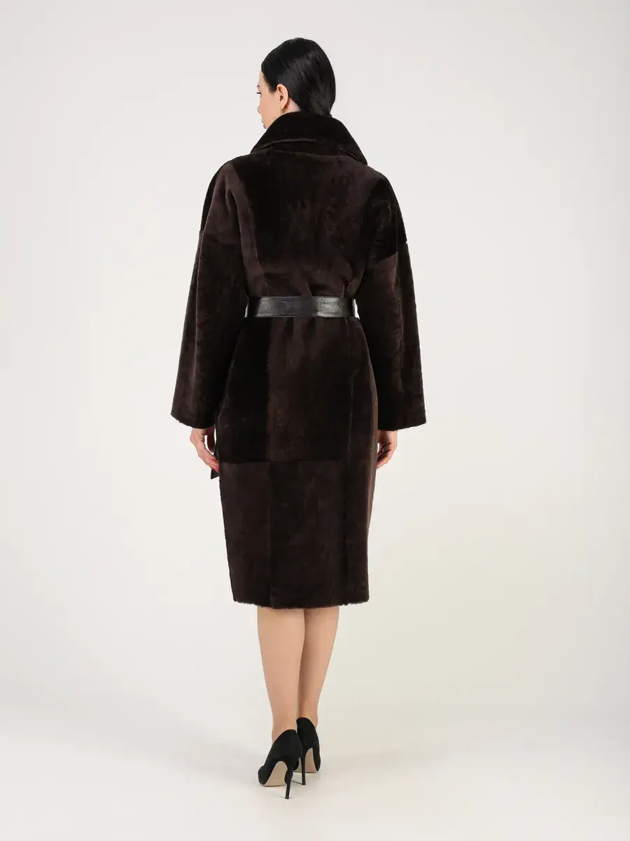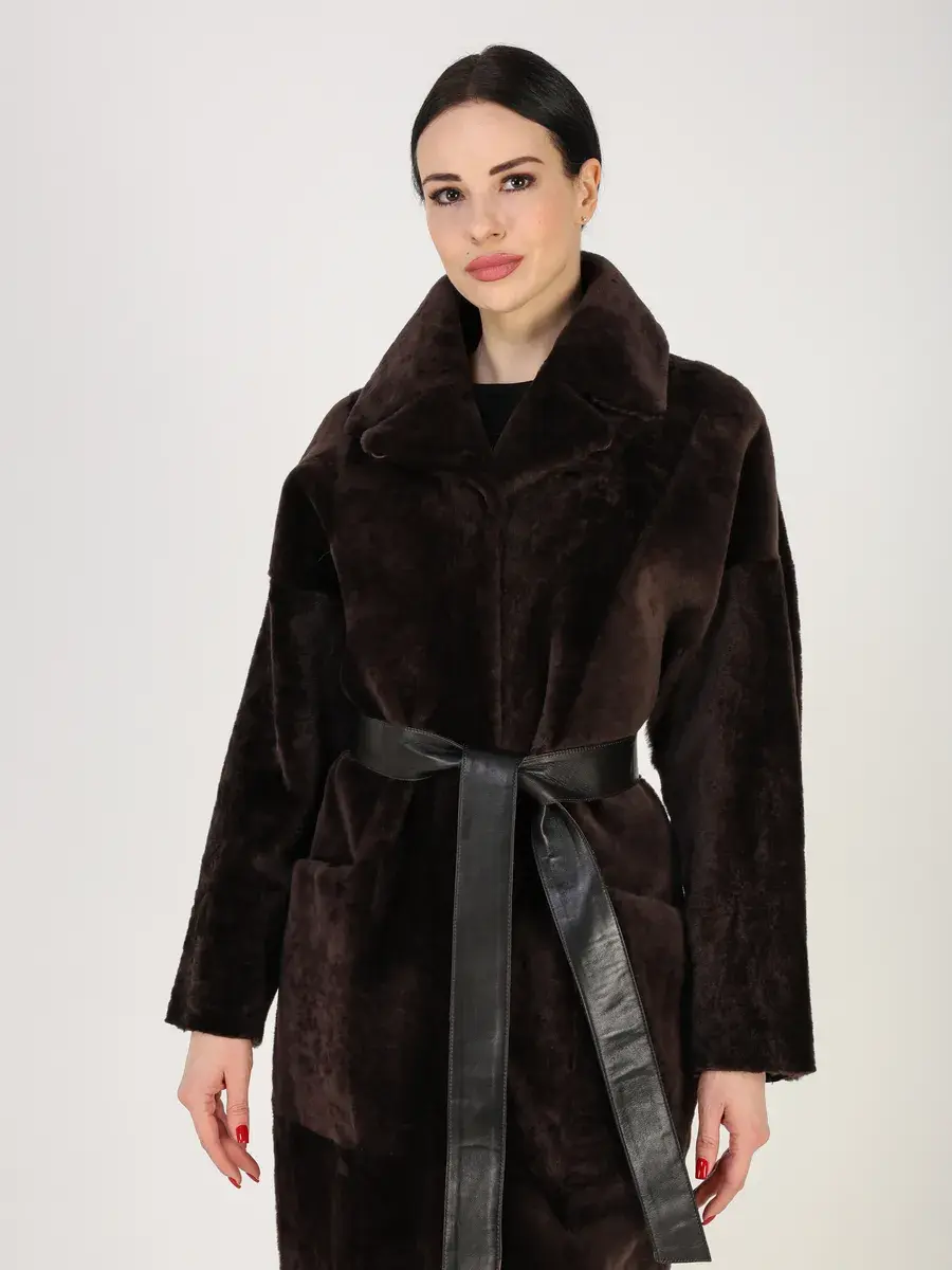 Пальто зимнее женское выполнено из натурального меха овчина, что делает ее очень теплой и комфортной для холодных дней зимой и осенью.