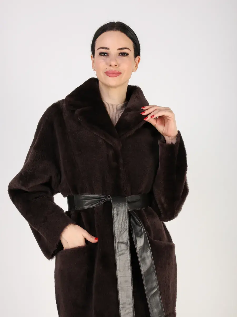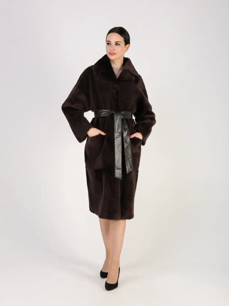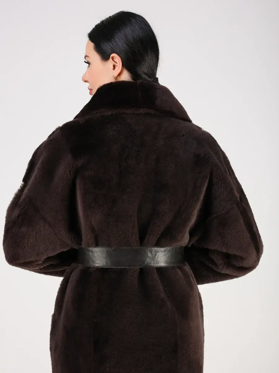 Пальто зимнее женское выполнено из натурального меха овчина, что делает ее очень теплой и комфортной для холодных дней зимой и осенью.
