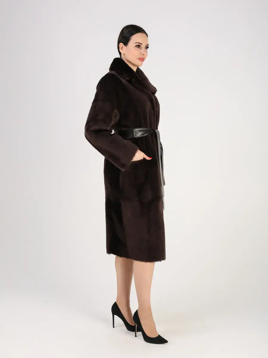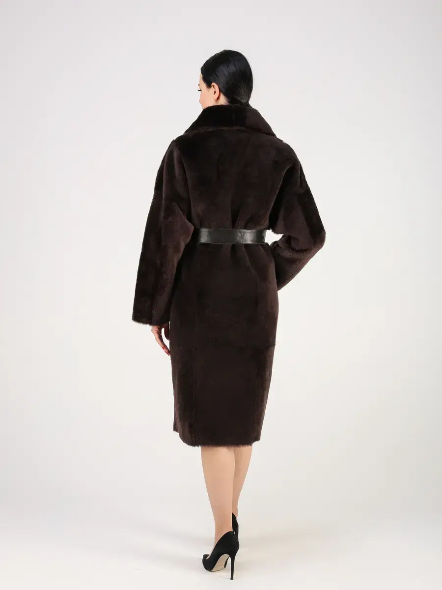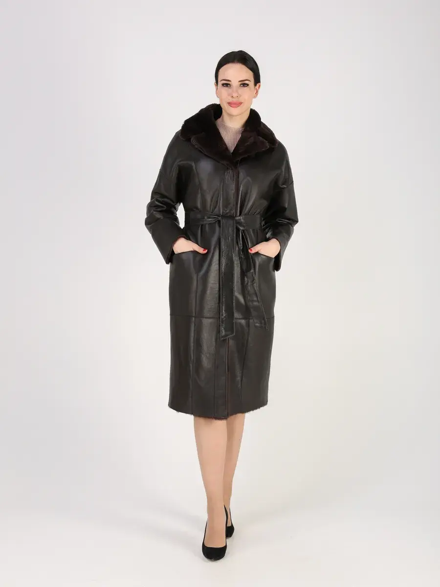 Пальто зимнее женское выполнено из натурального меха овчина, что делает ее очень теплой и комфортной для холодных дней зимой и осенью.