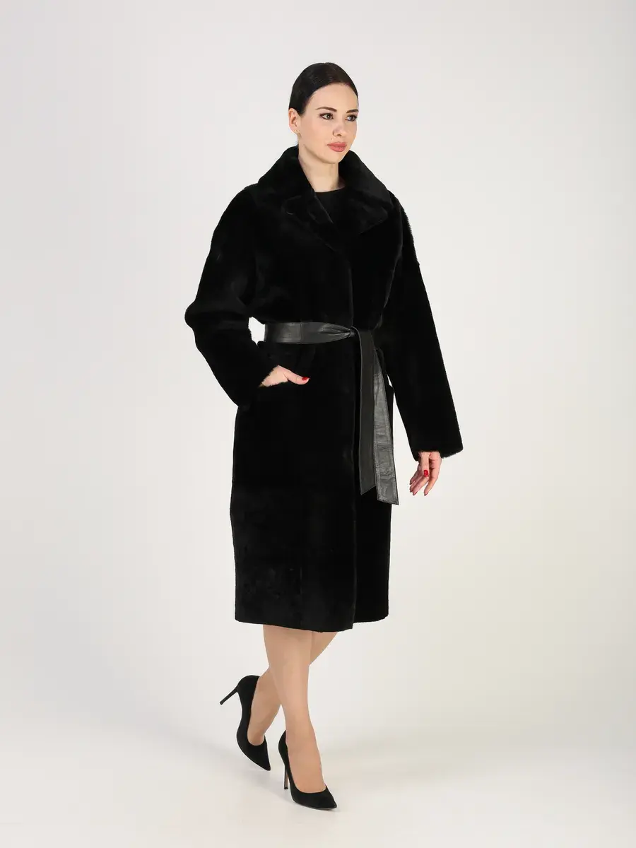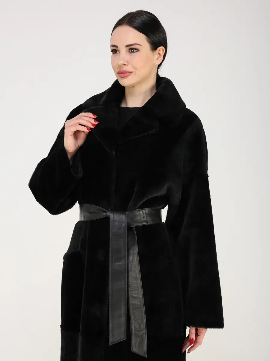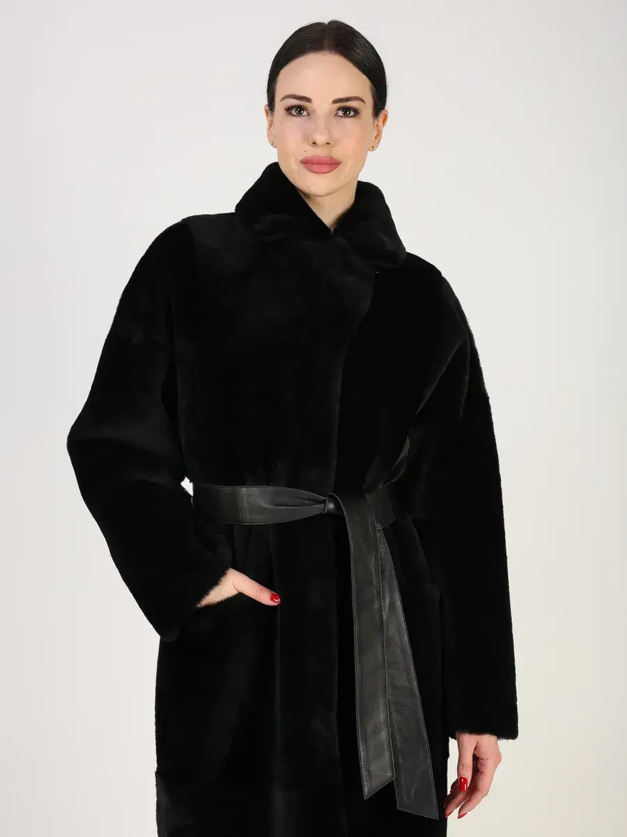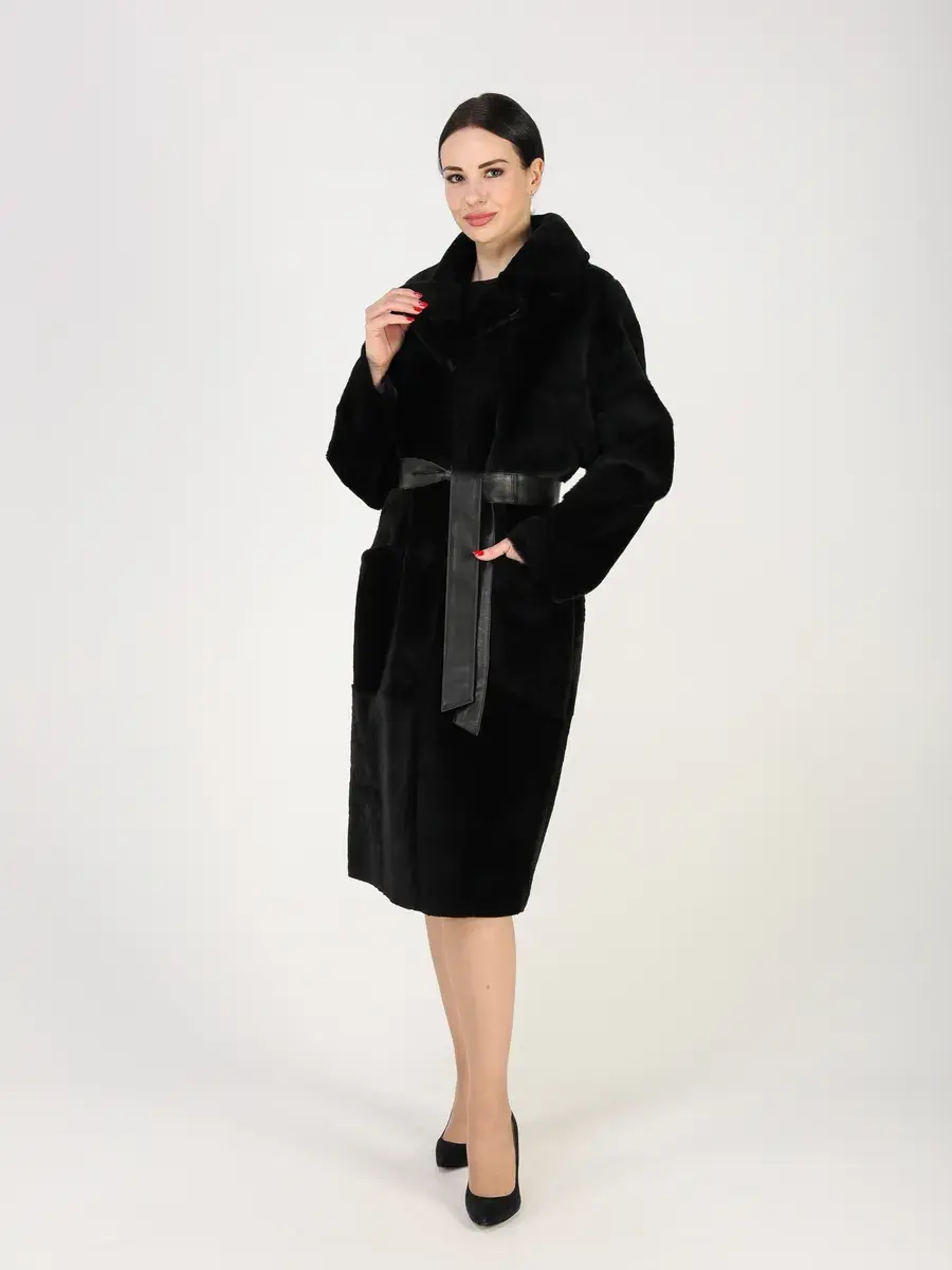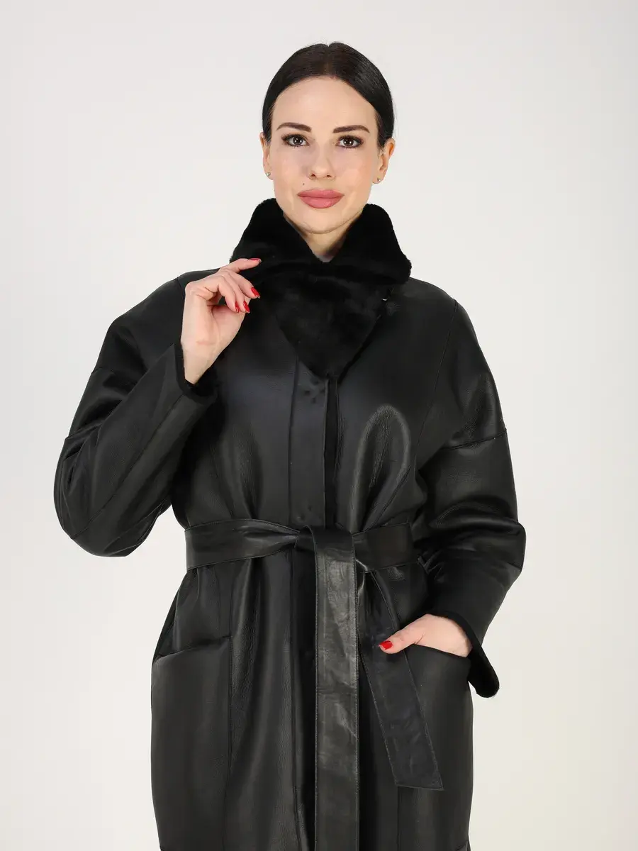 Пальто зимнее женское выполнено из натурального меха овчина, что делает ее очень теплой и комфортной для холодных дней зимой и осенью.