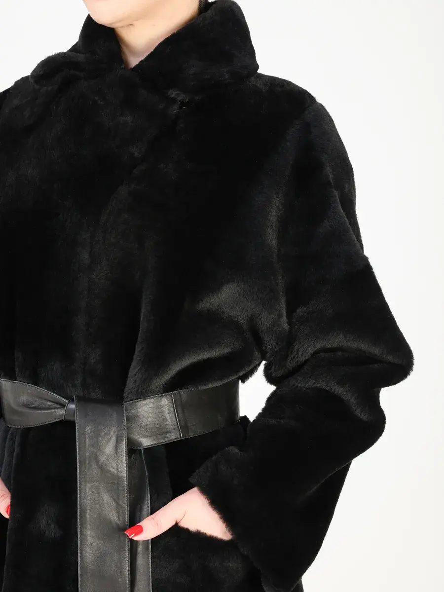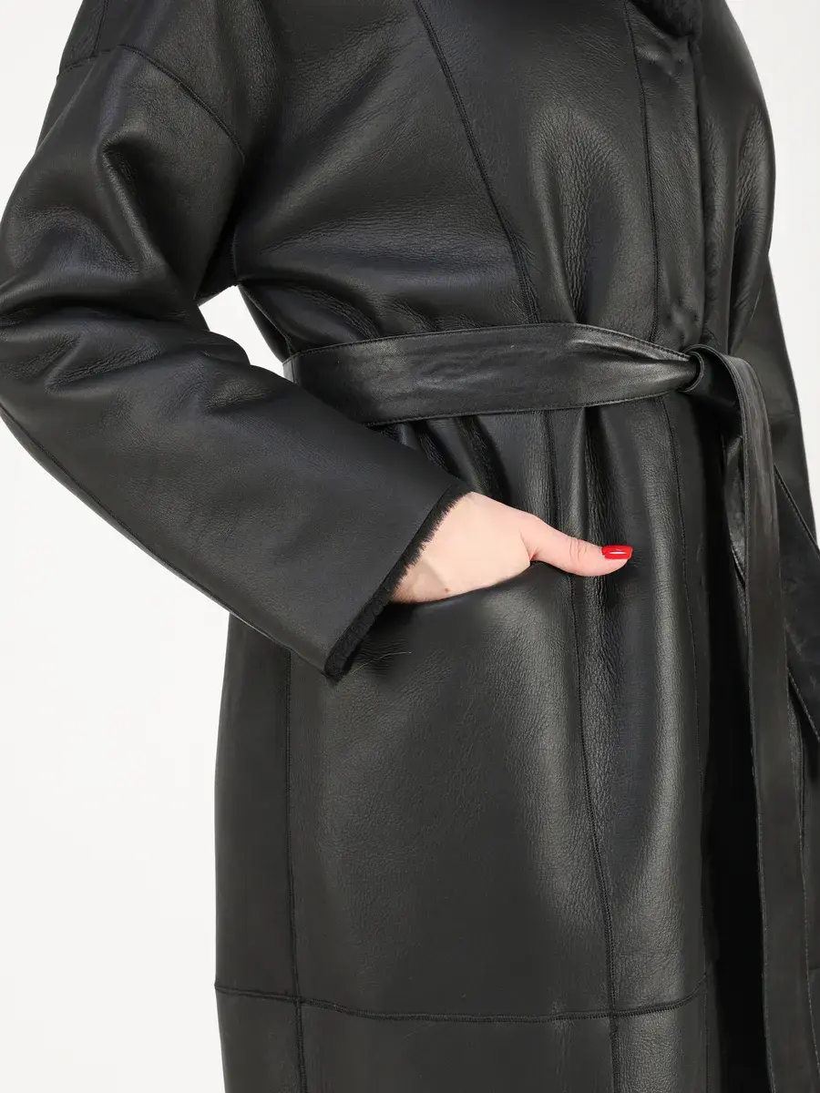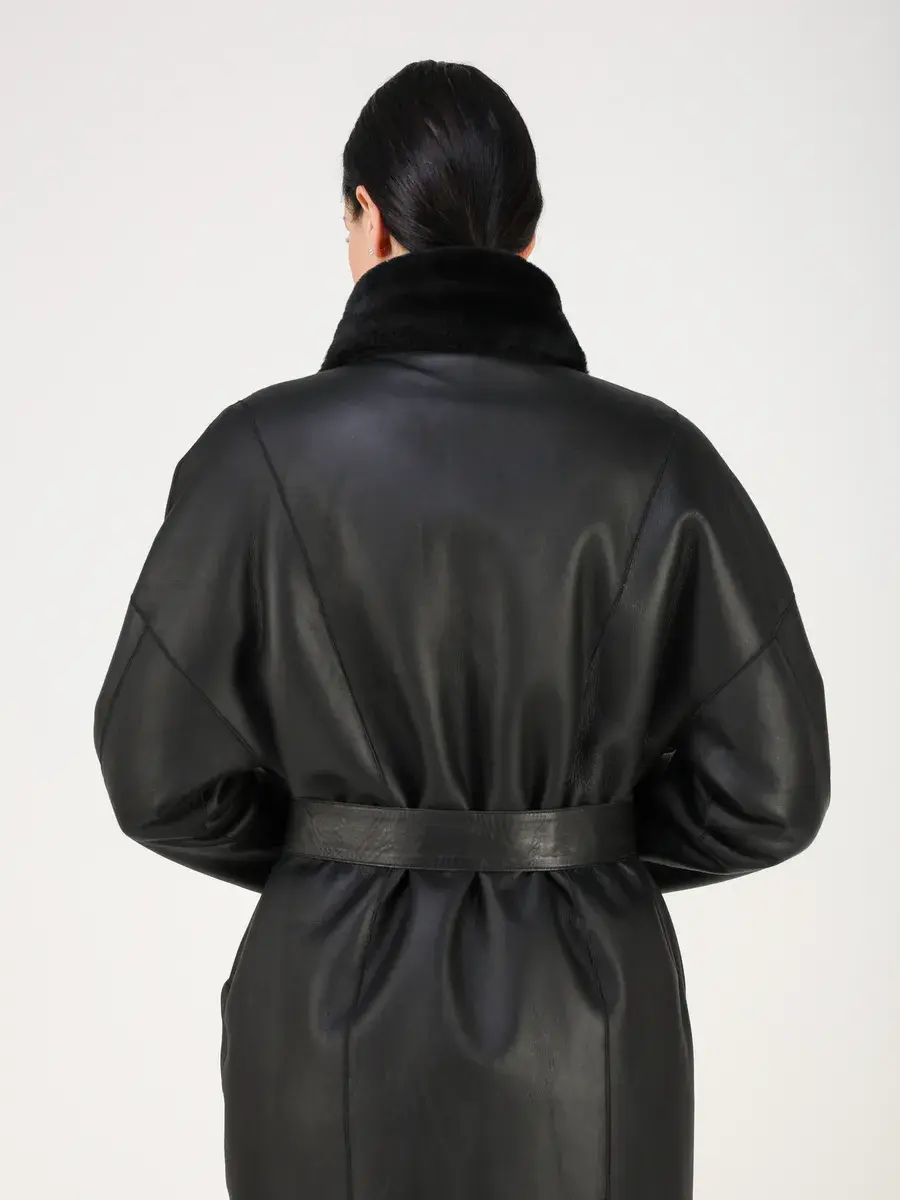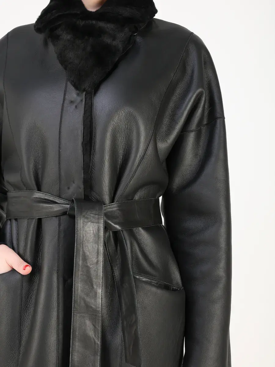 Пальто зимнее женское выполнено из натурального меха овчина, что делает ее очень теплой и комфортной для холодных дней зимой и осенью.