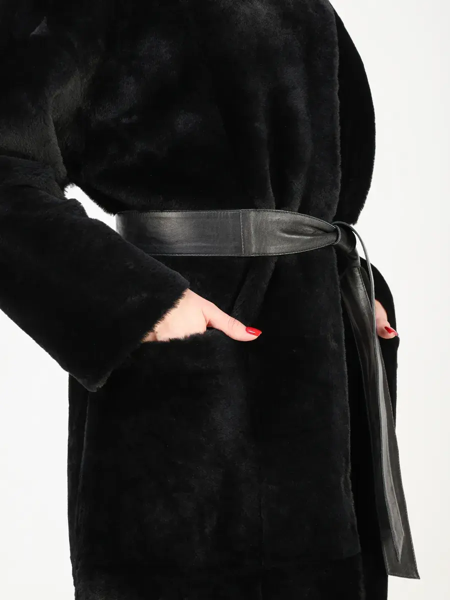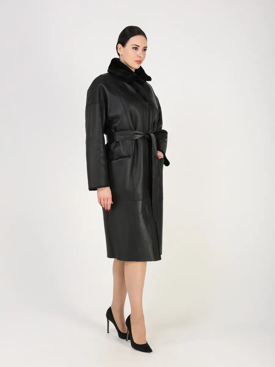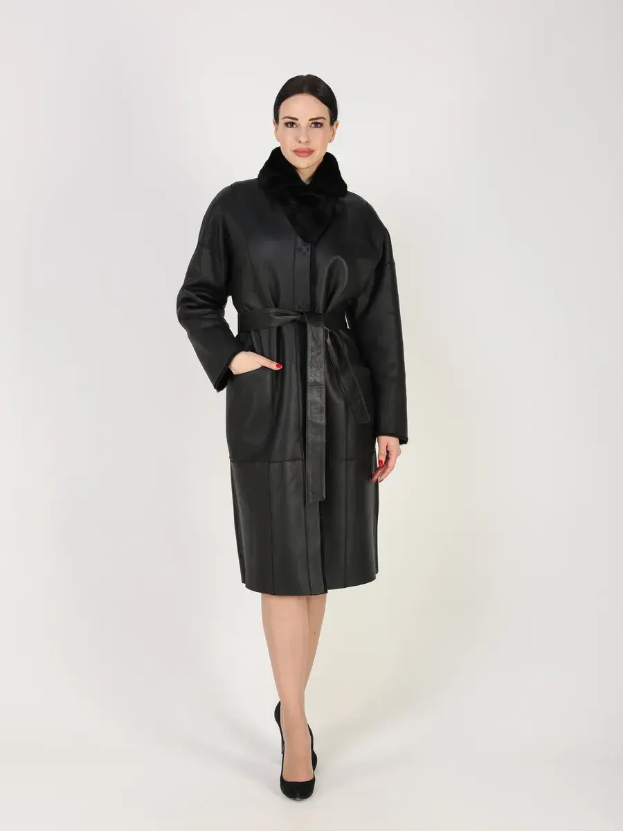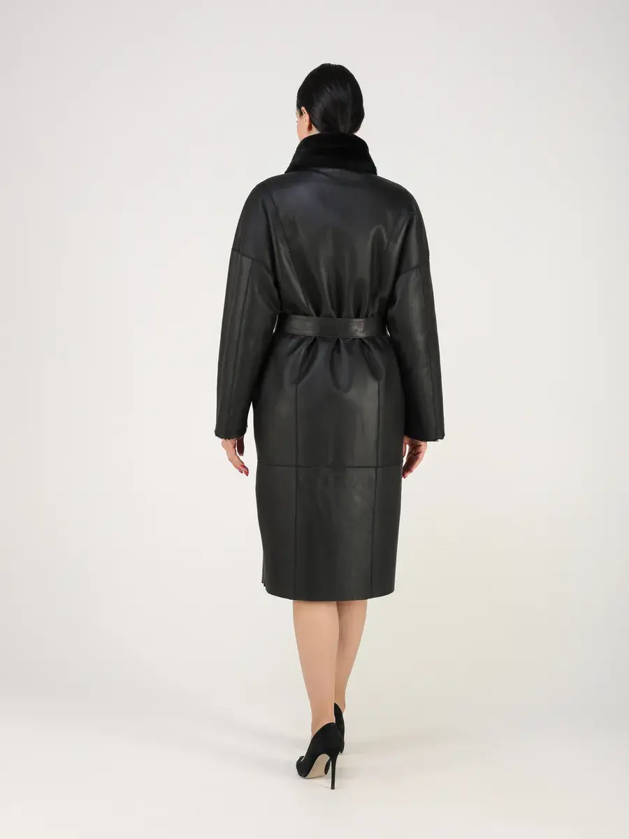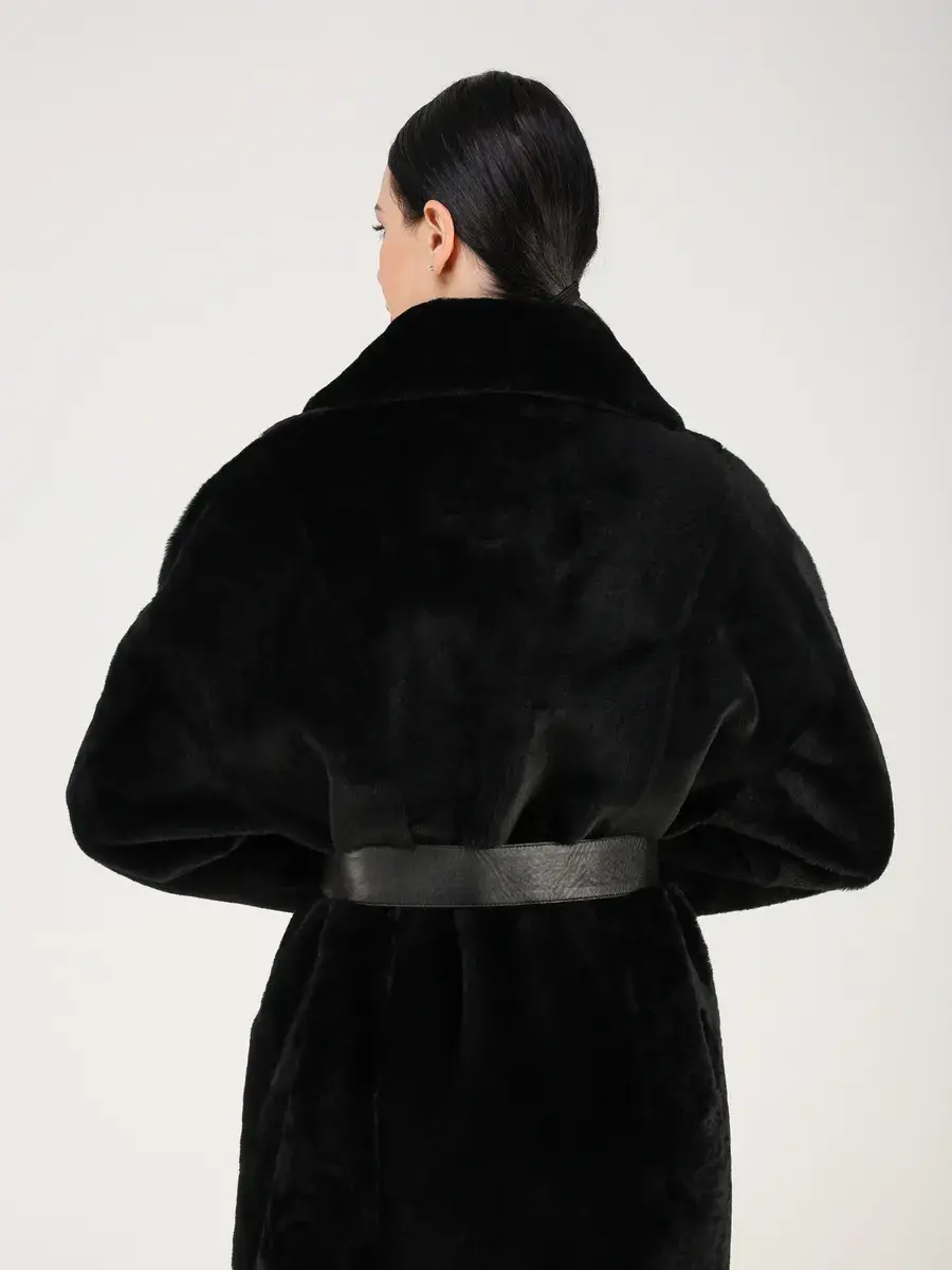 Пальто зимнее женское выполнено из натурального меха овчина, что делает ее очень теплой и комфортной для холодных дней зимой и осенью.