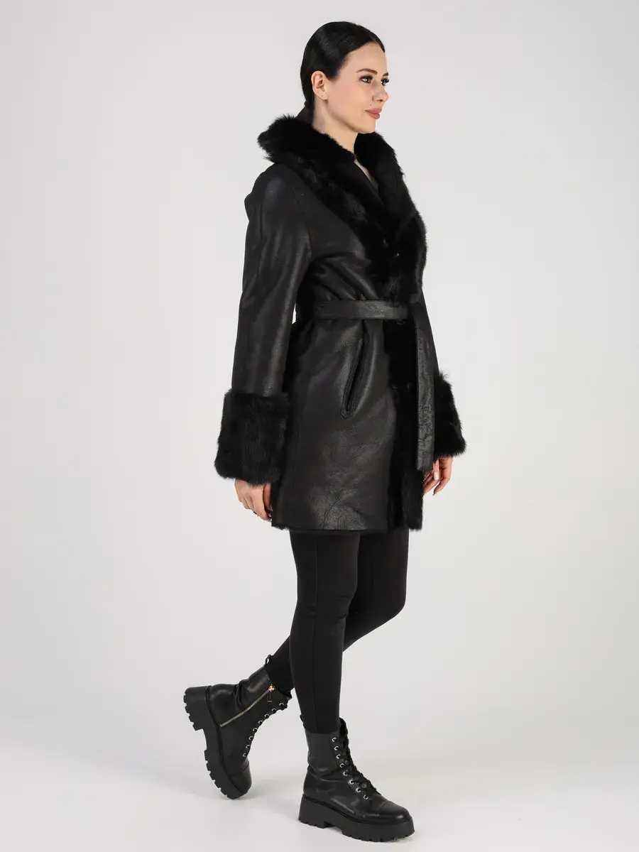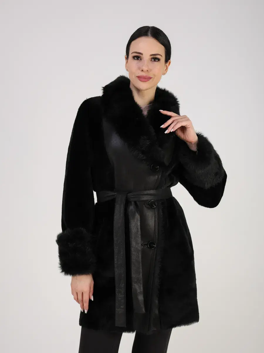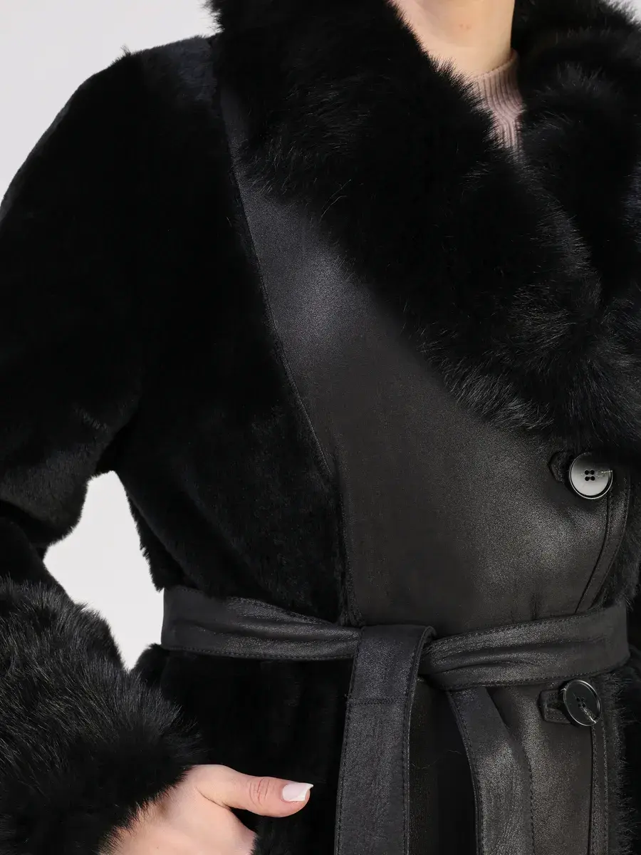 Особое внимание привлекает свободный - прямой крой, мех на воротнике и на манжетах, которые делают модель модной и эксклюзивной. Застежка на пуговицах и прорезные карманы добавляют функциональности и удобства. В комплекте идет пояс, который подчеркнет вашу талию и придаст дополнительную женственность вашему образу.