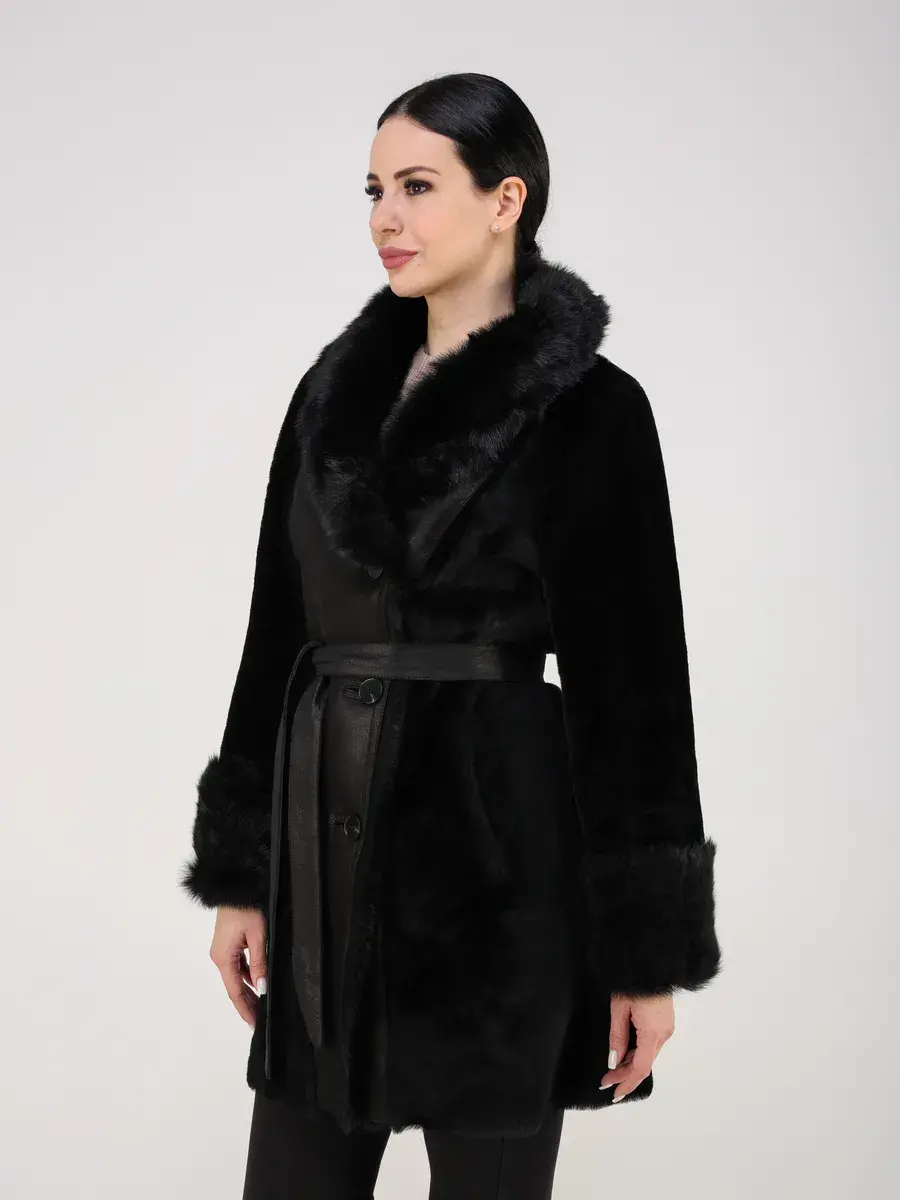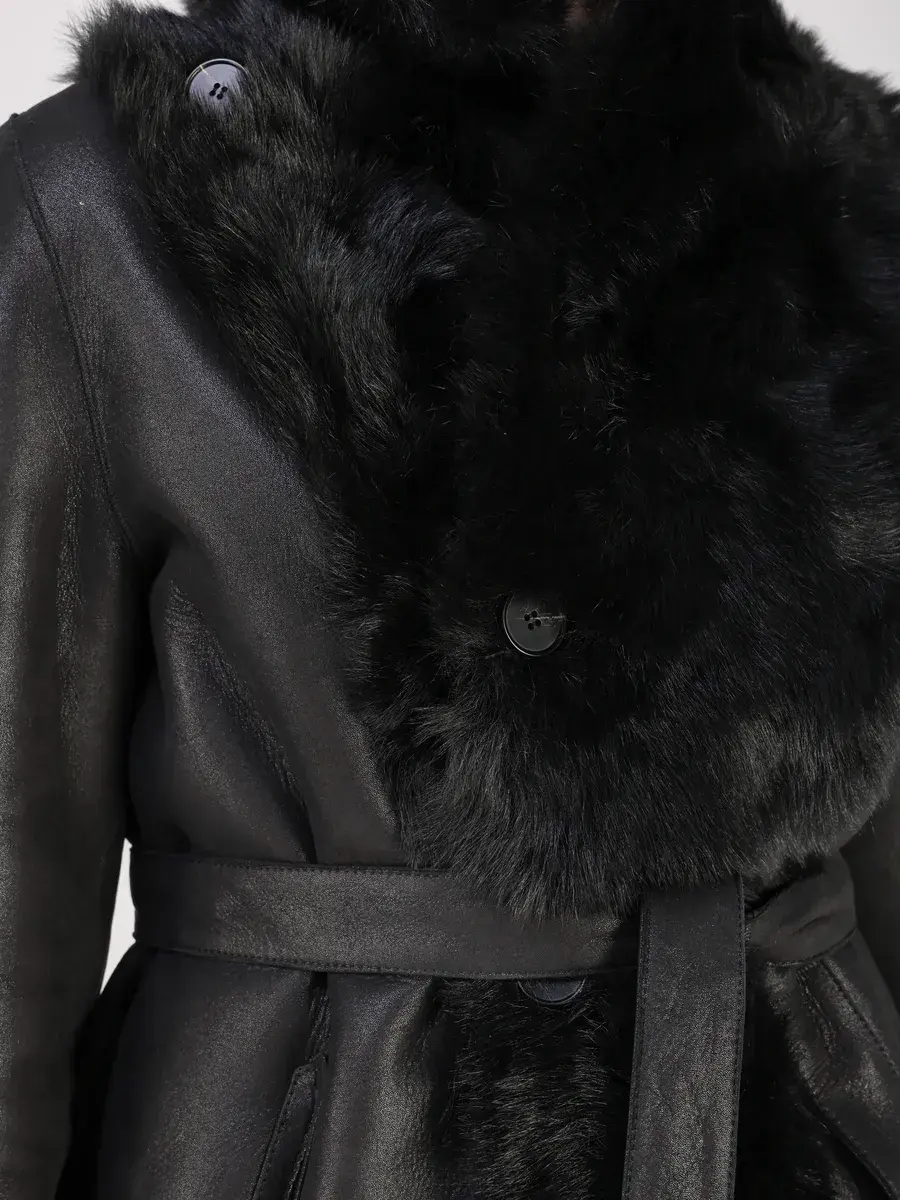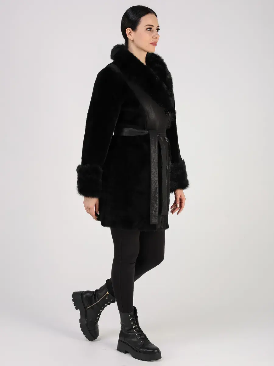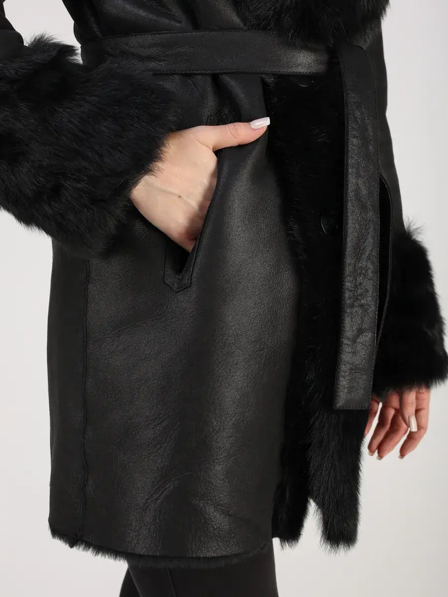 Особое внимание привлекает свободный - прямой крой, мех на воротнике и на манжетах, которые делают модель модной и эксклюзивной. Застежка на пуговицах и прорезные карманы добавляют функциональности и удобства. В комплекте идет пояс, который подчеркнет вашу талию и придаст дополнительную женственность вашему образу.