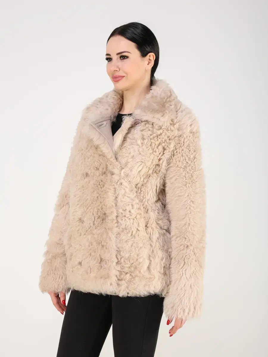 Дубленка женская зимняя короткая выполнено из натурального меха овчина - тиградо, мех длинный, мягкий, шелковистый и ярко выраженный кудрявый ворс, который хорошо держит форму. Покрытие "силки" делает изделие более долговечным!