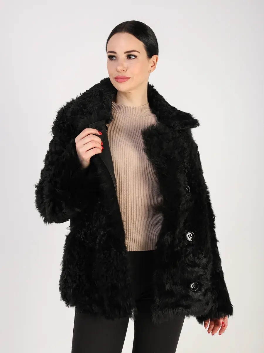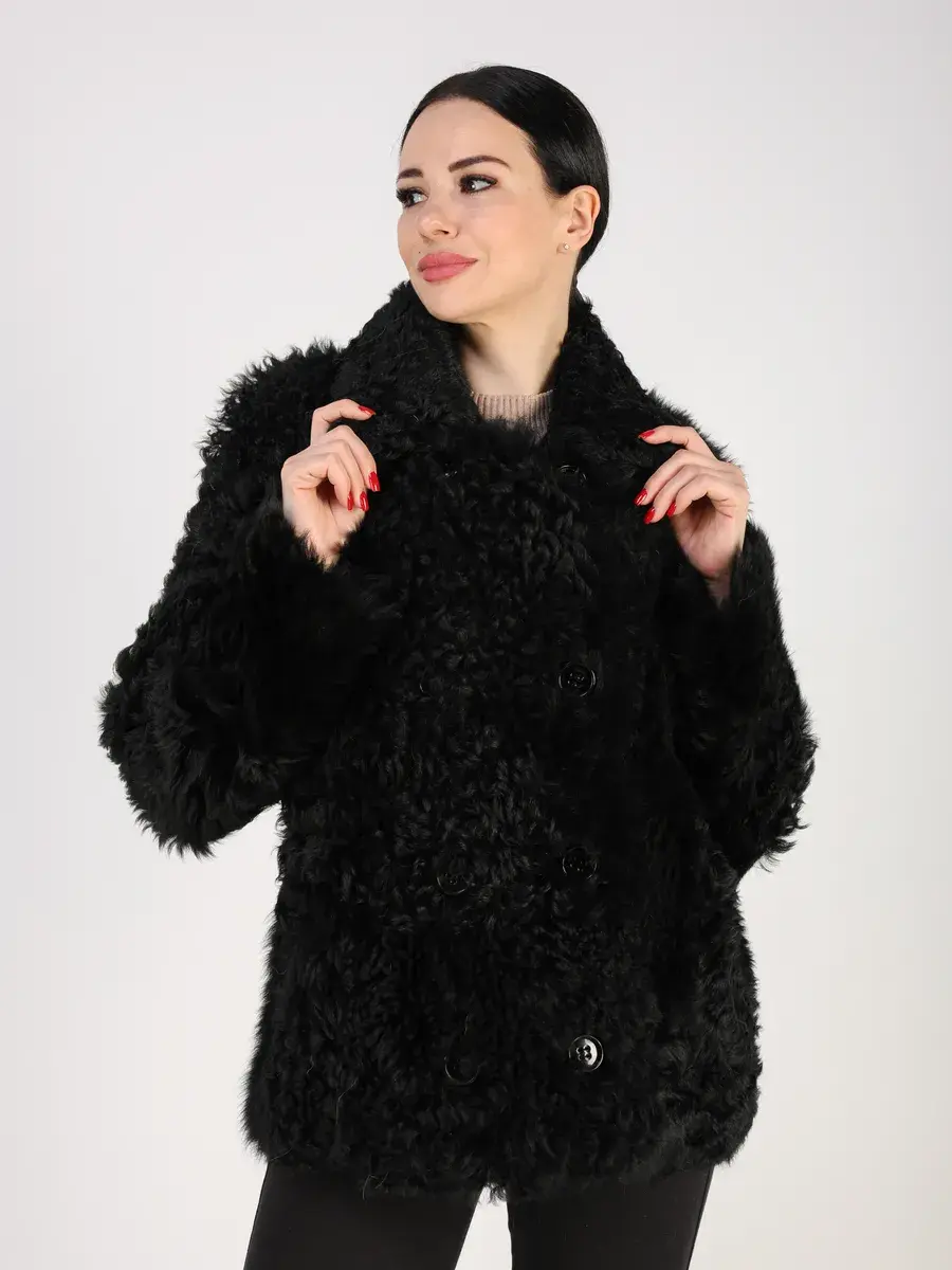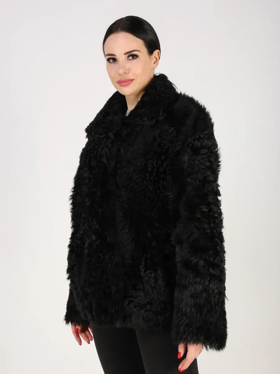 Дубленка женская зимняя короткая выполнено из натурального меха овчина - тиградо, мех длинный, мягкий, шелковистый и ярко выраженный кудрявый ворс, который хорошо держит форму. Покрытие "силки" делает изделие более долговечным!