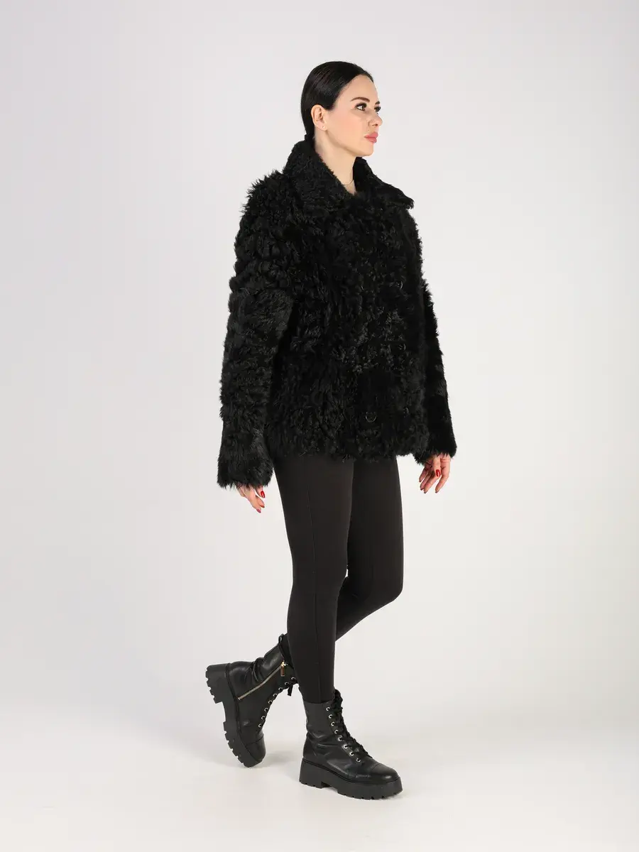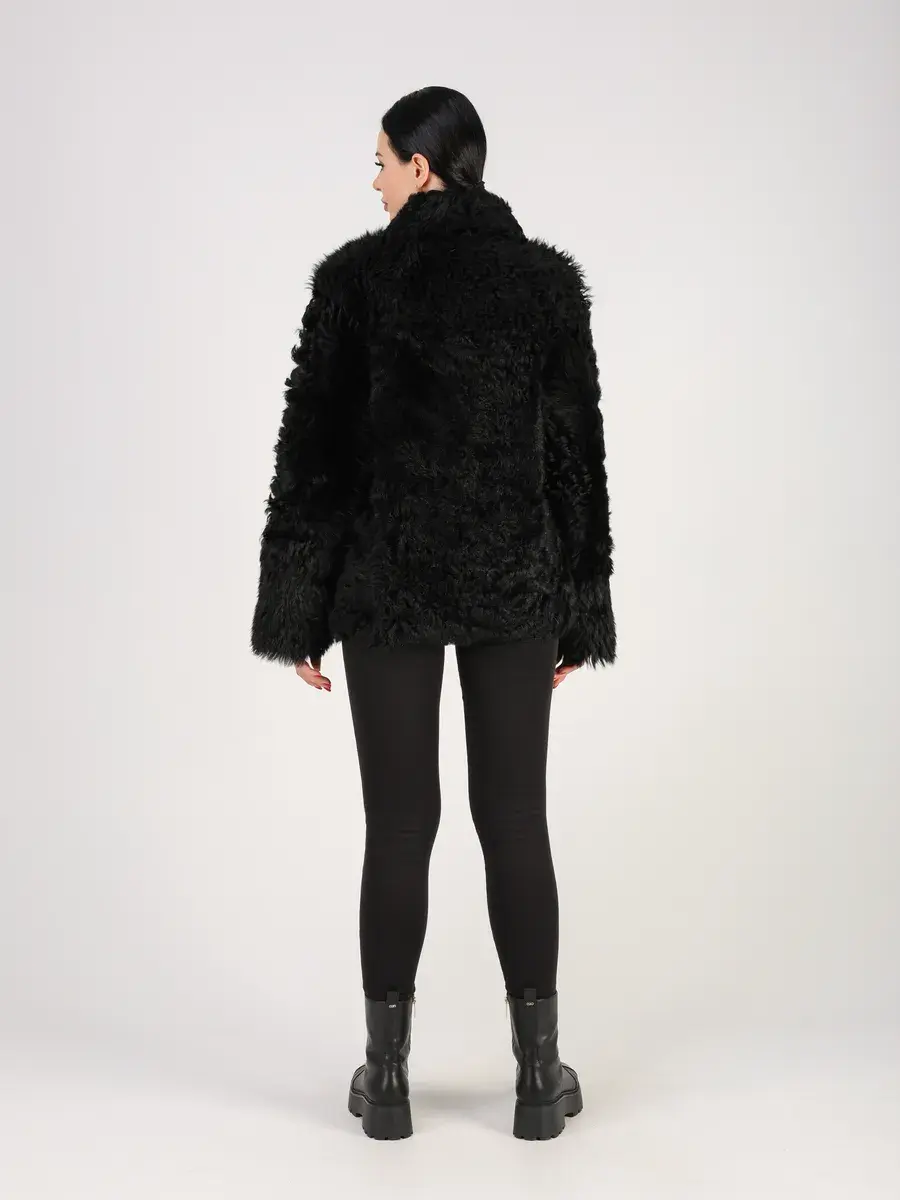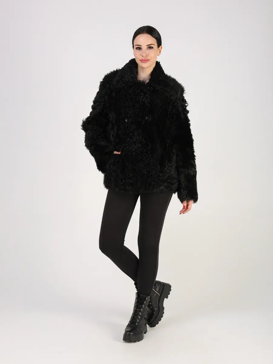 Дубленка женская зимняя короткая выполнено из натурального меха овчина - тиградо, мех длинный, мягкий, шелковистый и ярко выраженный кудрявый ворс, который хорошо держит форму. Покрытие "силки" делает изделие более долговечным!
