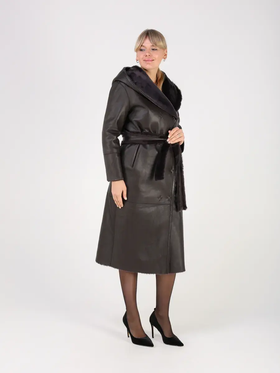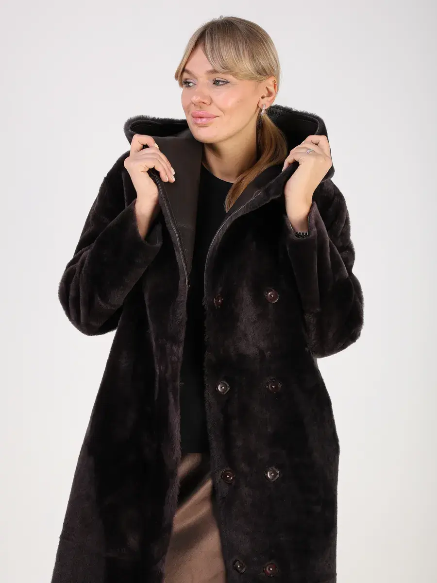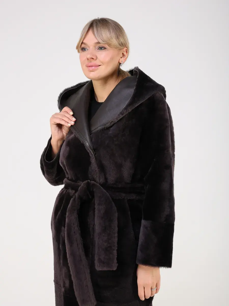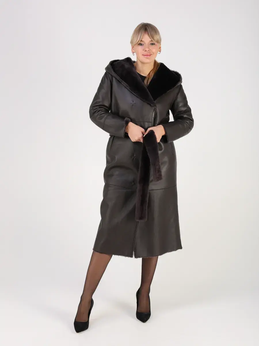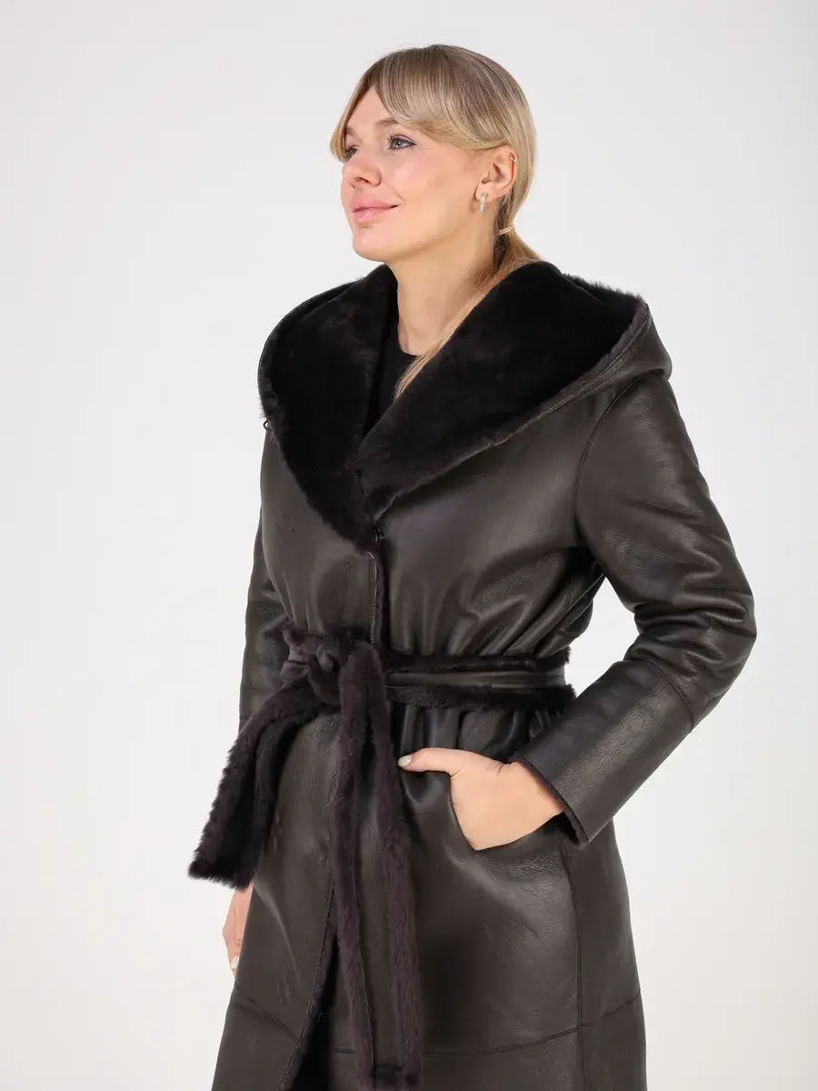 Пальто зимнее женское выполнено из натурального меха овчина, что делает ее очень теплой и комфортной для холодных дней зимой и осенью.