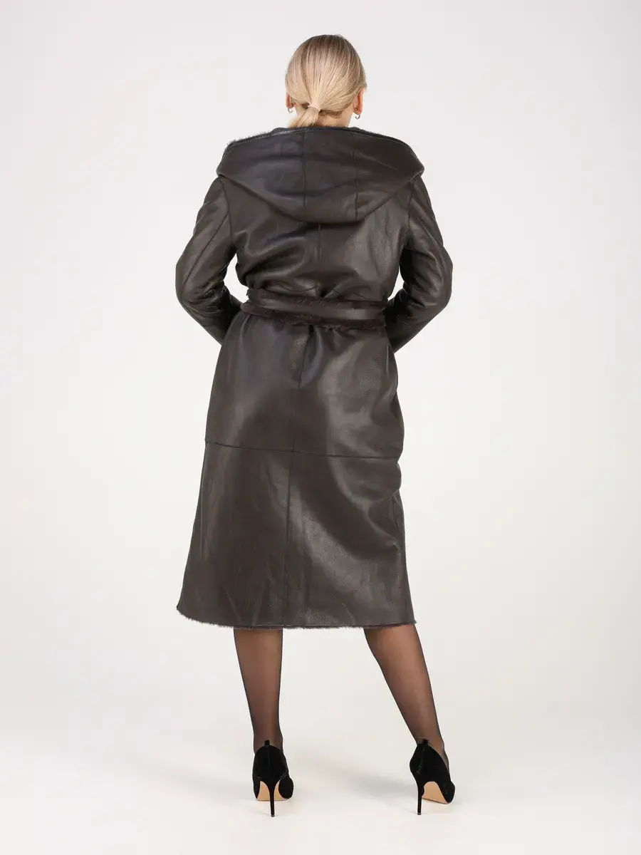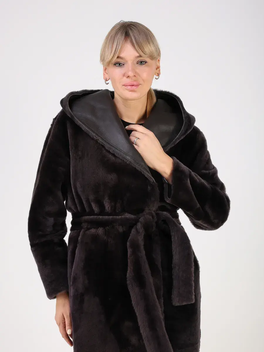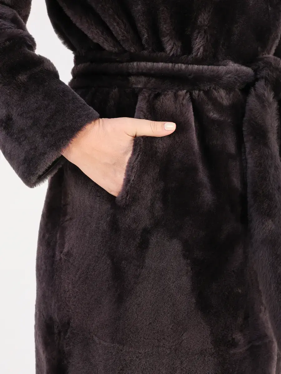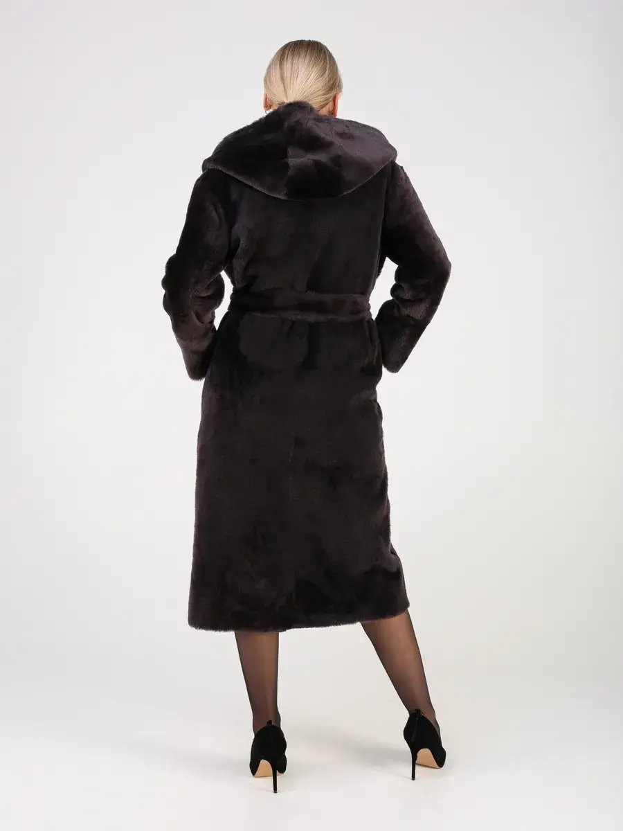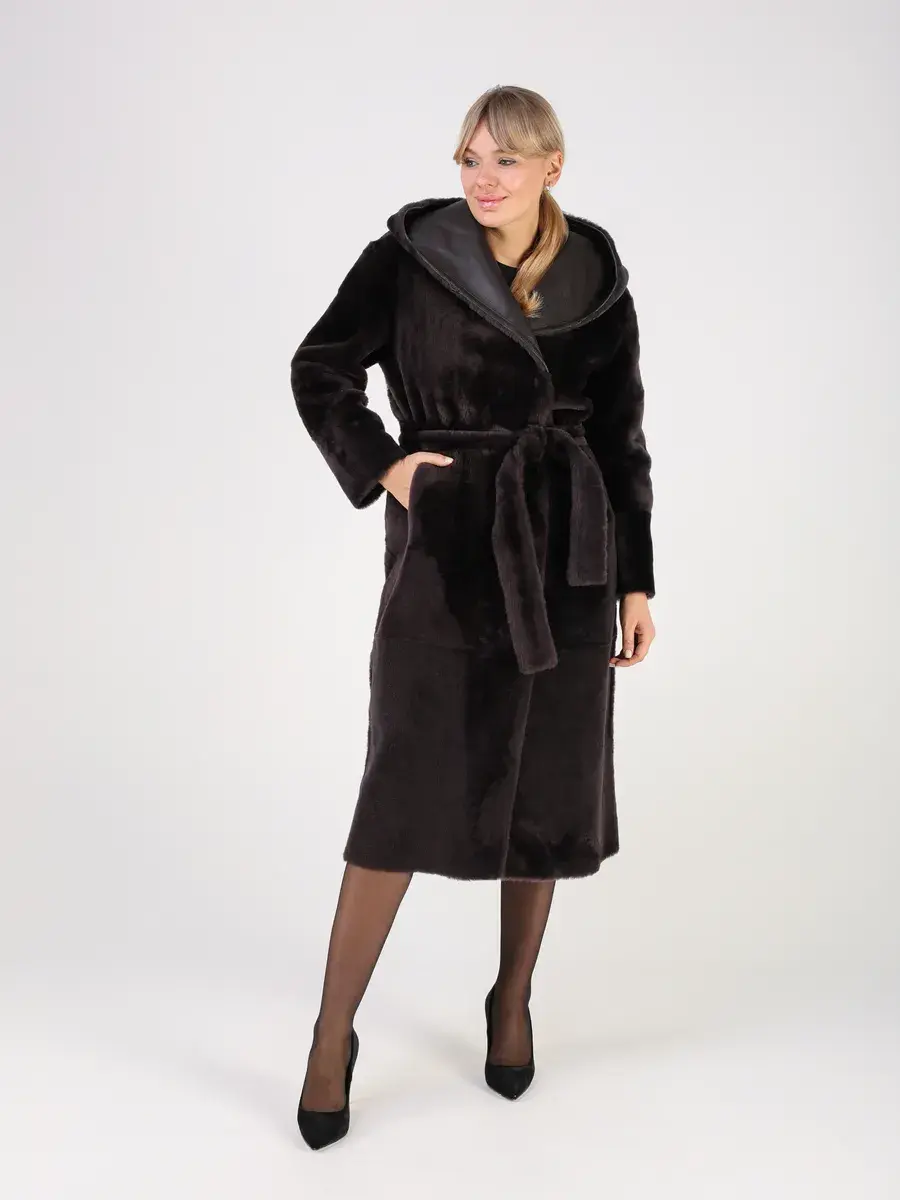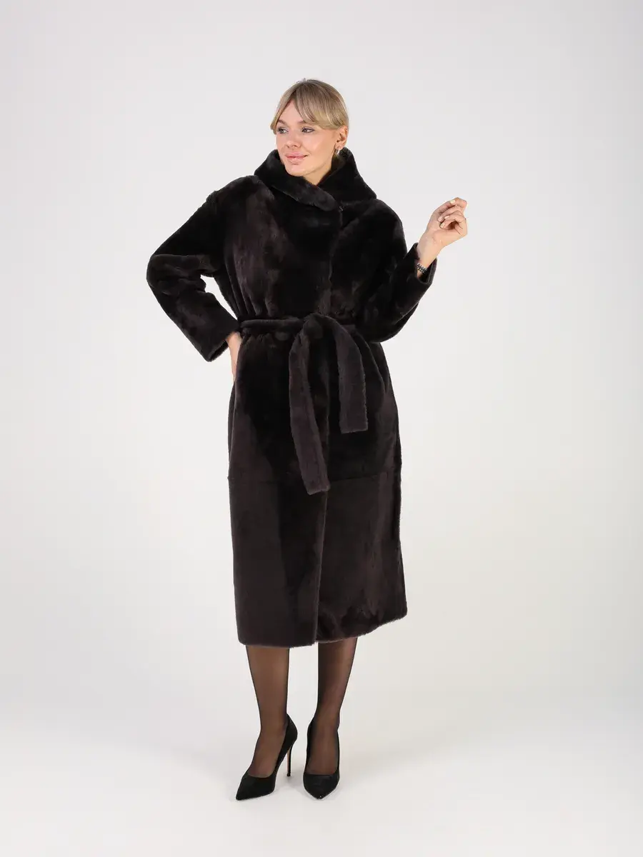 Пальто зимнее женское выполнено из натурального меха овчина, что делает ее очень теплой и комфортной для холодных дней зимой и осенью.