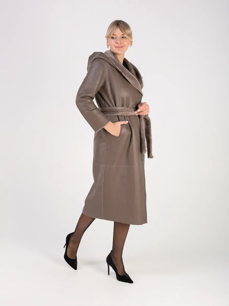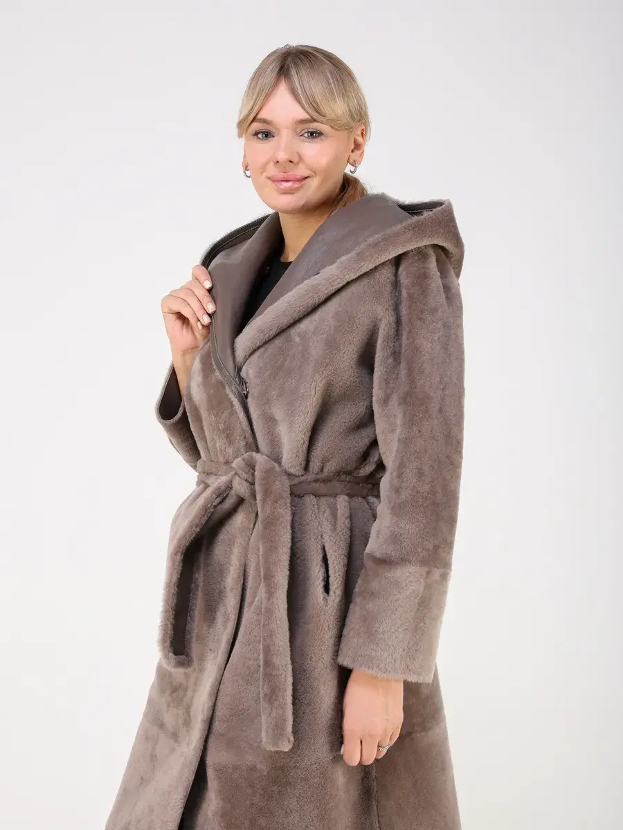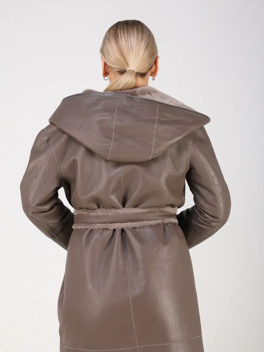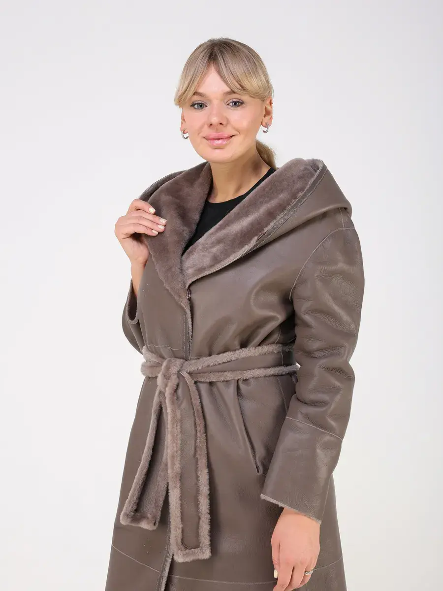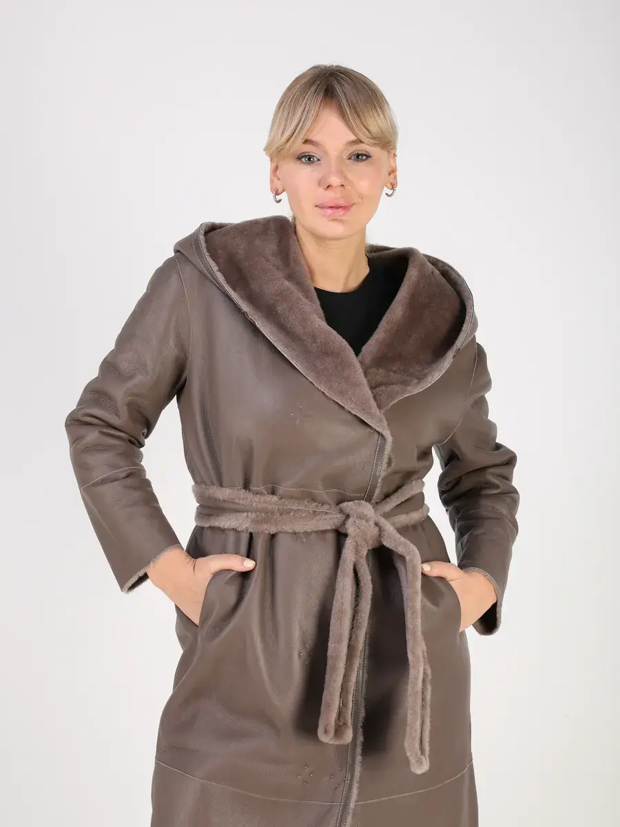 Пальто зимнее женское выполнено из натурального меха овчина, что делает ее очень теплой и комфортной для холодных дней зимой и осенью.