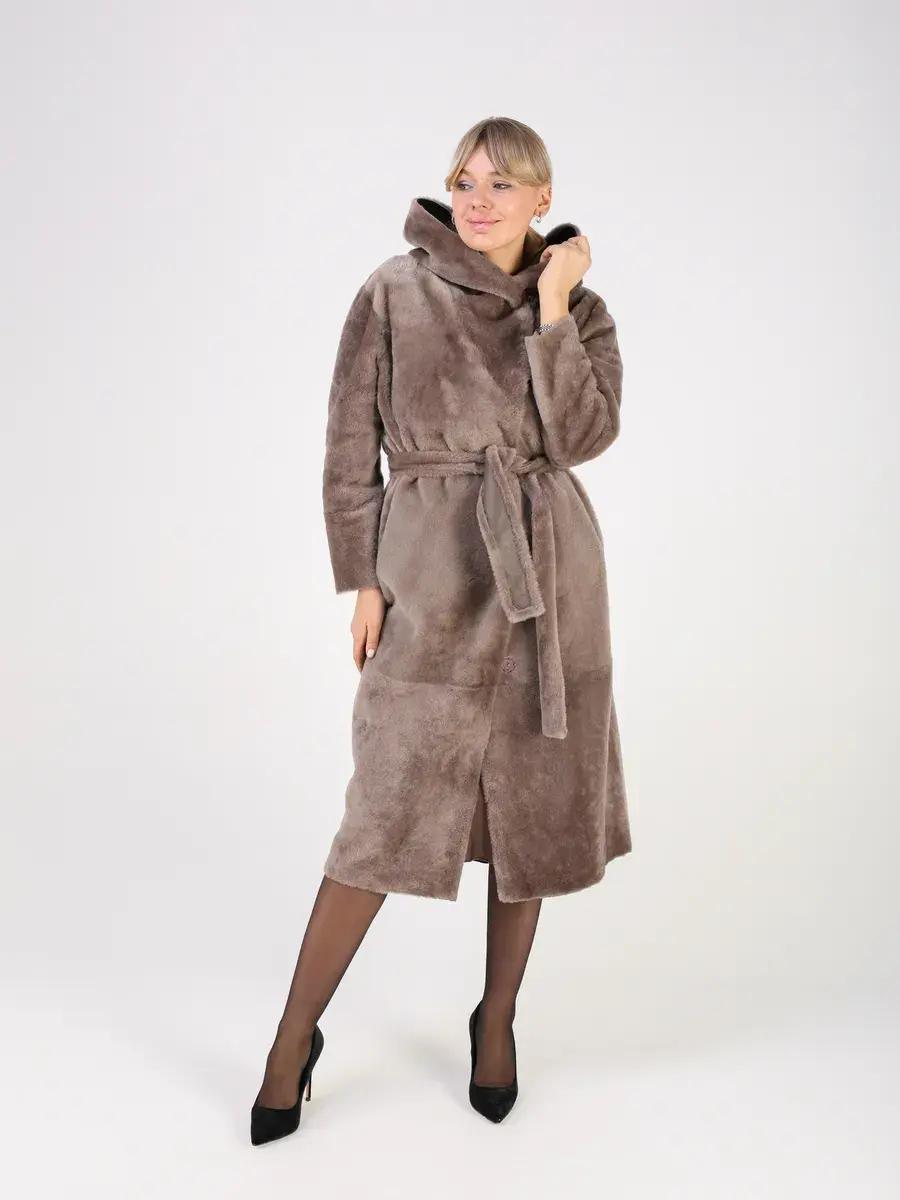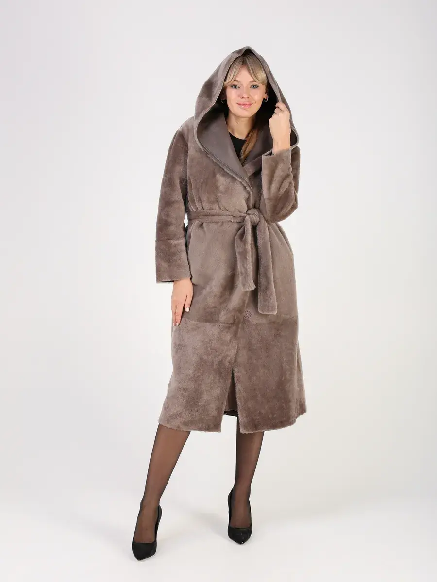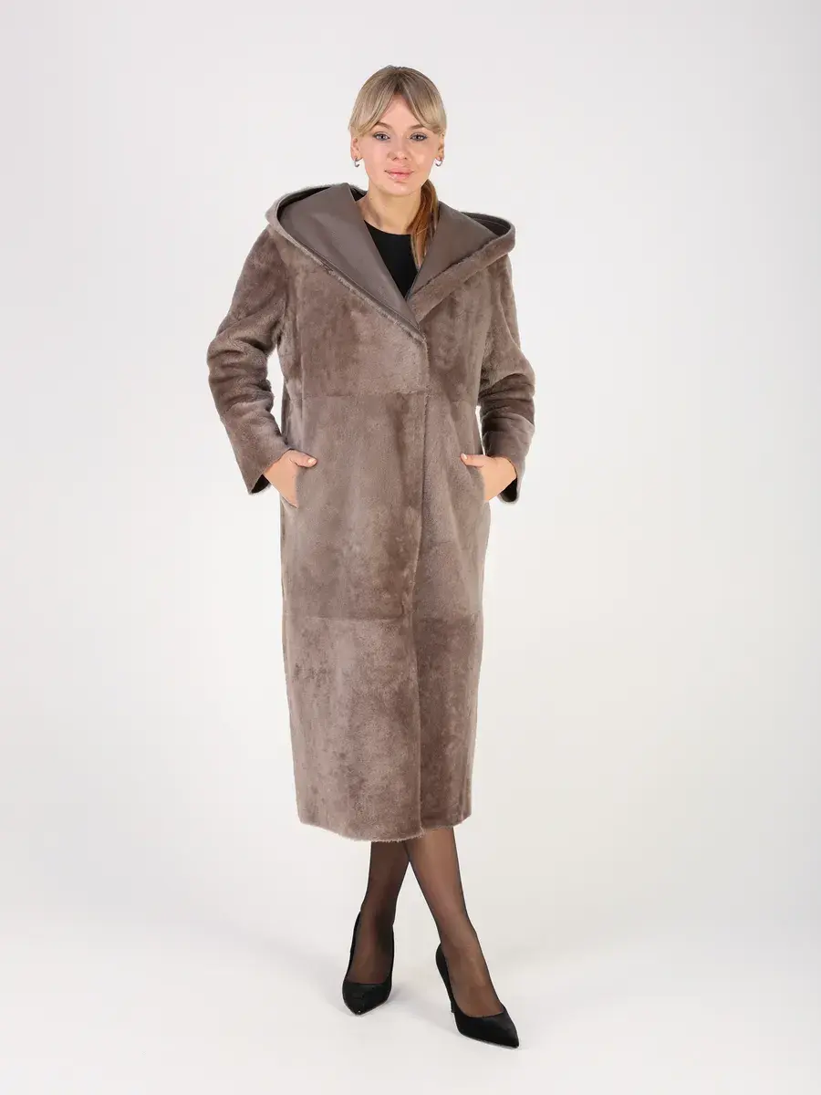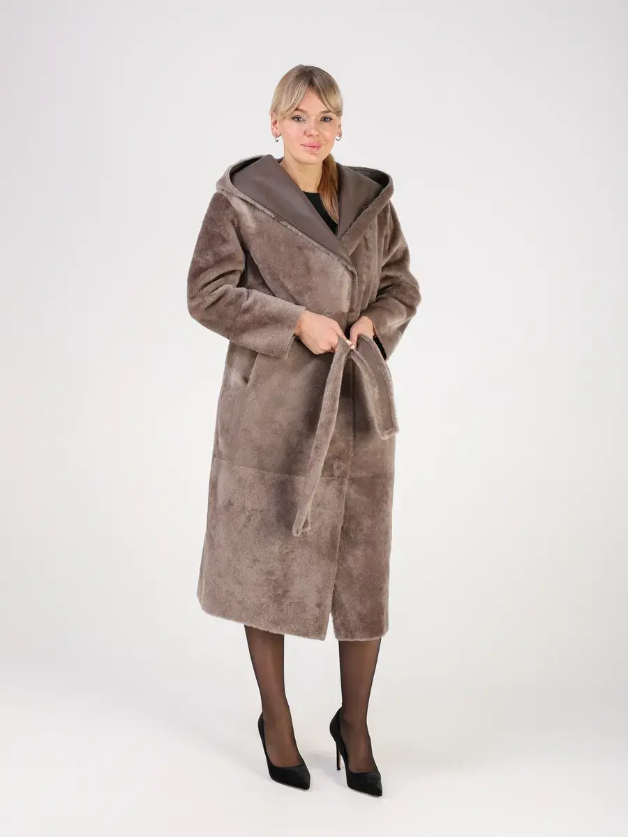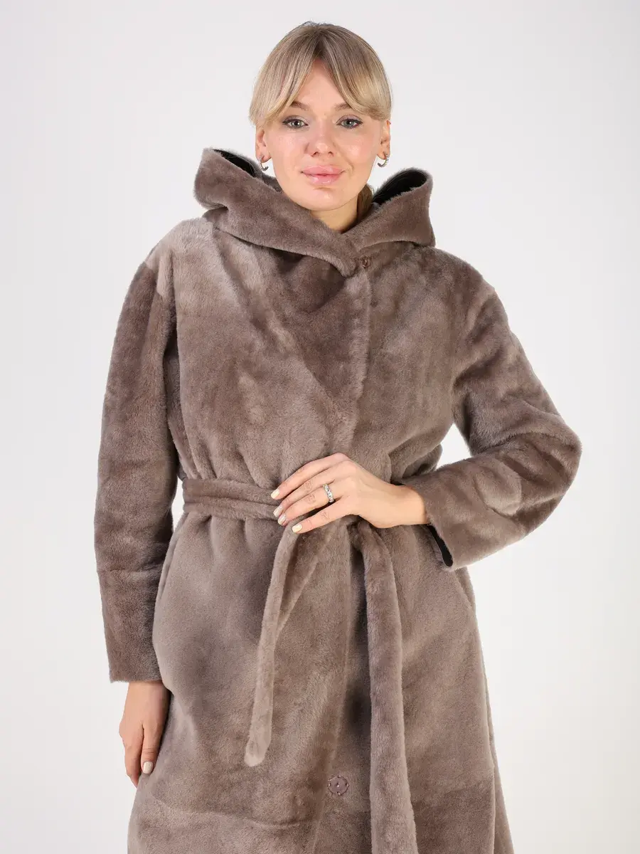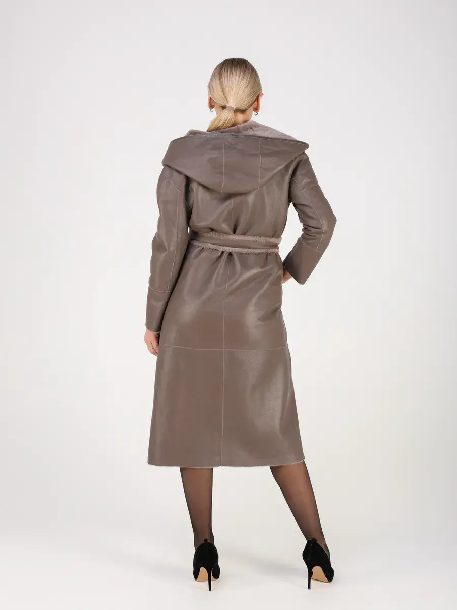 Пальто зимнее женское выполнено из натурального меха овчина, что делает ее очень теплой и комфортной для холодных дней зимой и осенью.