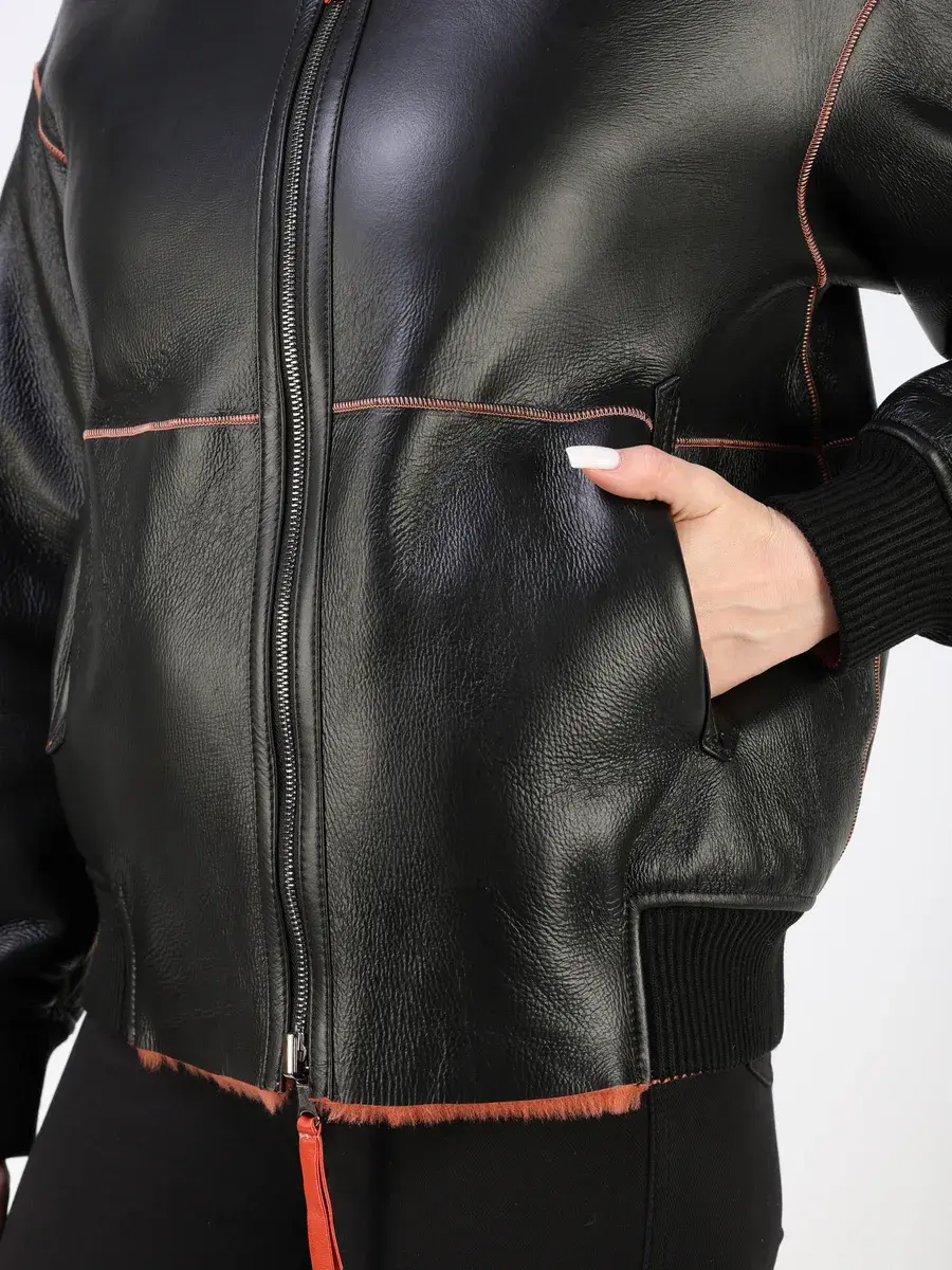 декоративная строчка, трикотажные манжеты, короткая, бомбер,
