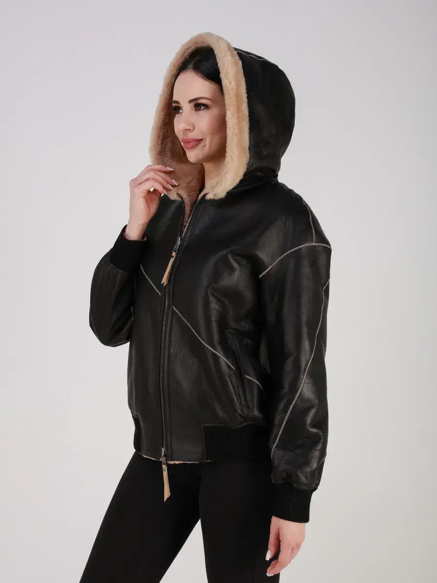 Дубленка женская зимняя короткая с капюшоном выполнено из меха овчины. Имеет мягкий, легкий и плотный мех, который приятно ощущается на теле. Покрытие из силки делает изделие более долговечным!