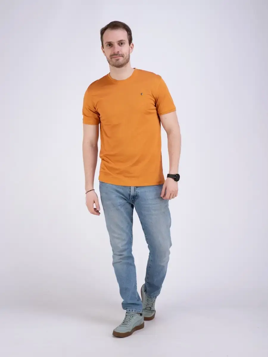 Базовая однотонная футболка мужская из прочной мерсеризованной ткани "каги" высшего качества посадки slim fit (слим фит). Практичная базовая футболка из мягкой по структуре ткани, имеет хорошую воздухопроницаемость, легко гладится, имеет красивый блеск. Футболка долго не потеряет свой цвет и форму, не выгорает на солнце. Идеально подходит как для повседневного гардероба, так и для занятий спортом, не раздражает кожу и позволяет ей дышать.
