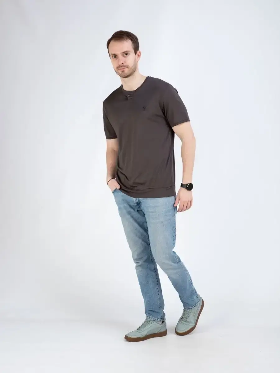 Стильная однотонная футболка мужская из ткани высшего качества. Шикарная футболка производство Турция с застежкой на пуговице. Практичная футболка на каждый день, свободной прямой посадки. Идеально подходит как для повседневного гардероба, так и для занятий спортом и фитнес, не раздражает кожу и позволяет ей дышать.