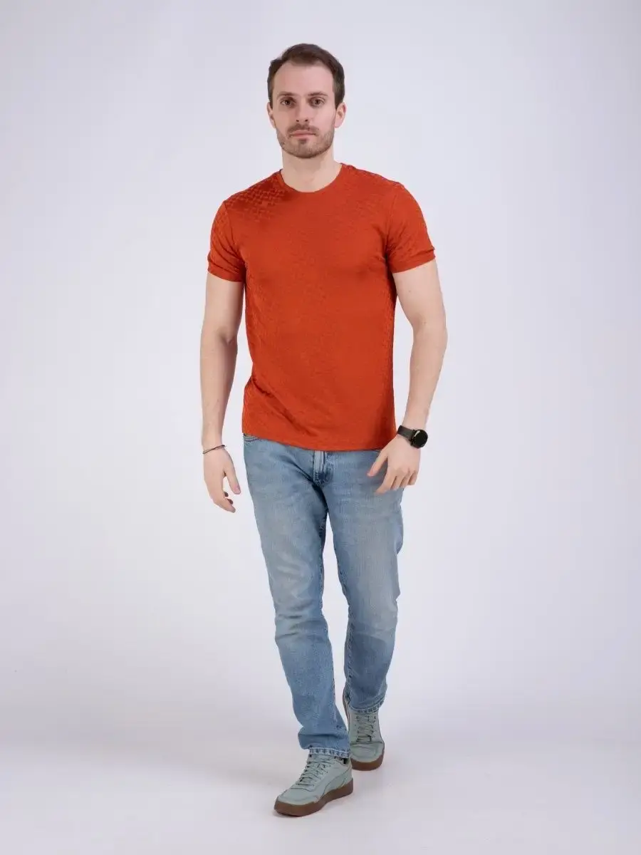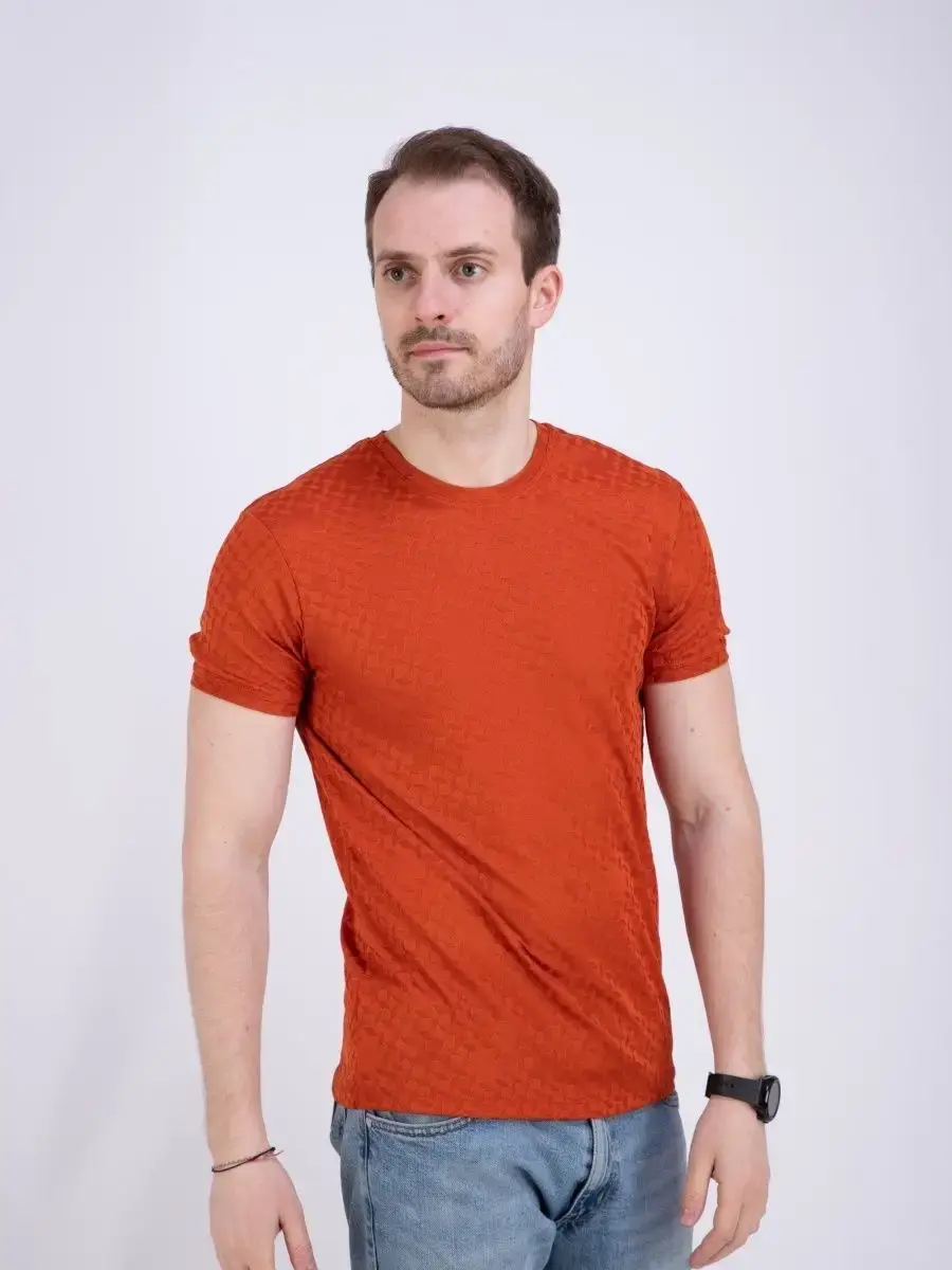 Стильная однотонная футболка мужская из узорчатой ткани "жаккард супрем" высшего качества. Ткань современная, прочная и эластичная с "дышащим" эффектом. Шикарная футболка производство Турция с своеобразным рельефным рисунком, который получается в результате сложного плетения. Практичная футболка на каждый день, посадки slim fit (слим фит). Идеально подходит как для повседневного гардероба, так и для занятий спортом и фитнес, не раздражает кожу и позволяет ей дышать.