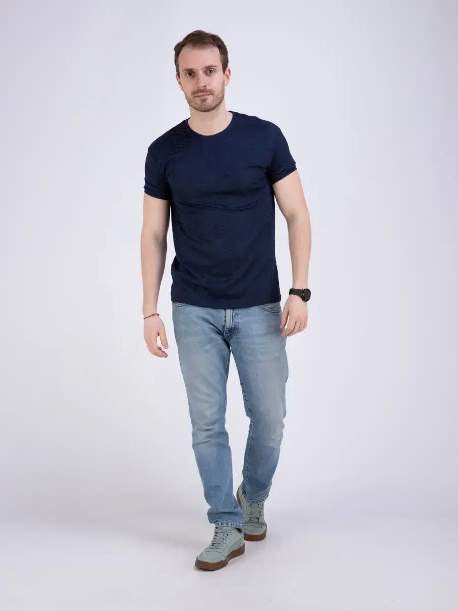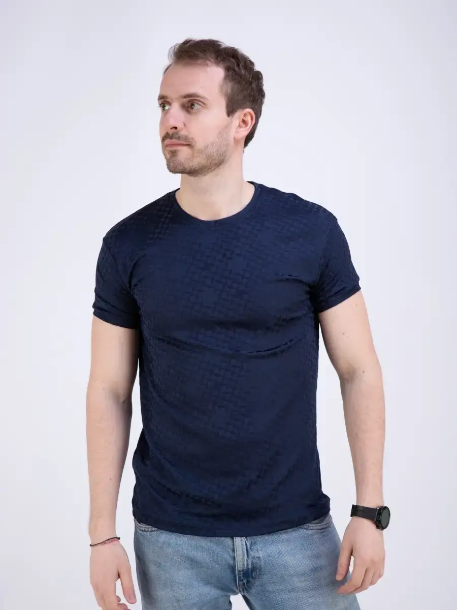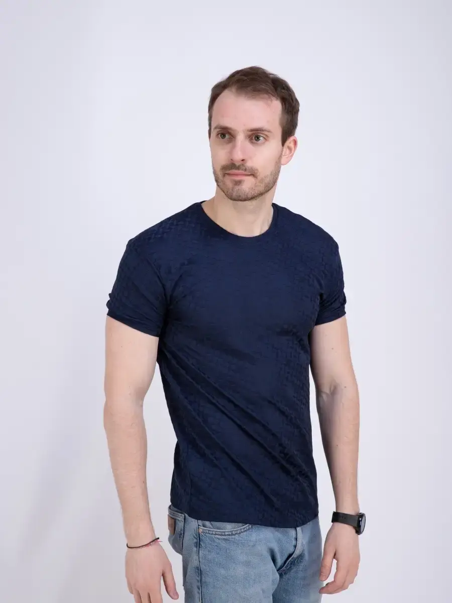 Стильная однотонная футболка мужская из узорчатой ткани "жаккард супрем" высшего качества. Ткань современная, прочная и эластичная с "дышащим" эффектом. Шикарная футболка производство Турция с своеобразным рельефным рисунком, который получается в результате сложного плетения. Практичная футболка на каждый день, посадки slim fit (слим фит). Идеально подходит как для повседневного гардероба, так и для занятий спортом и фитнес, не раздражает кожу и позволяет ей дышать.