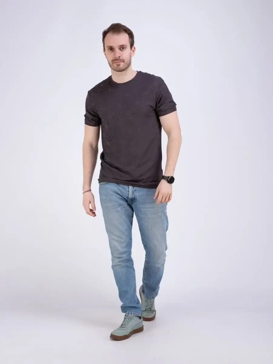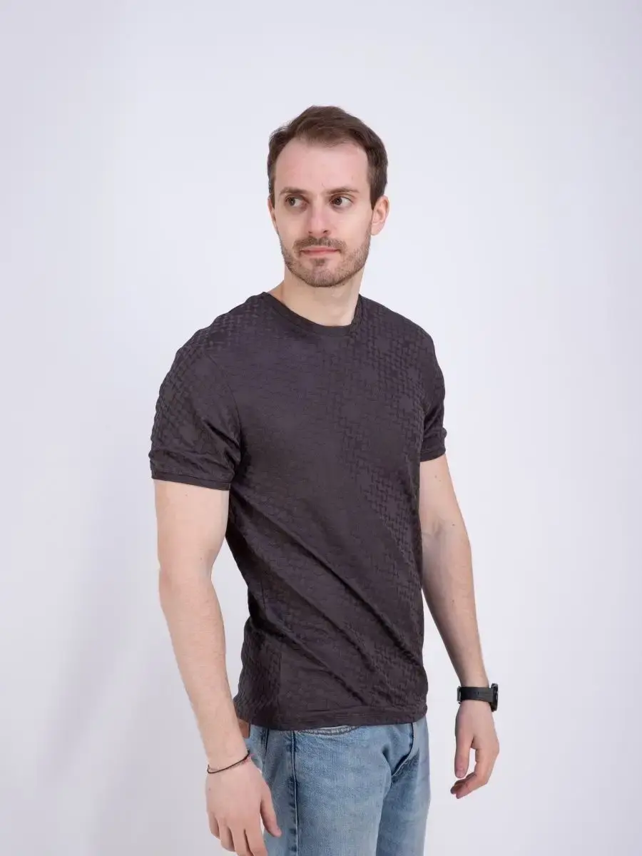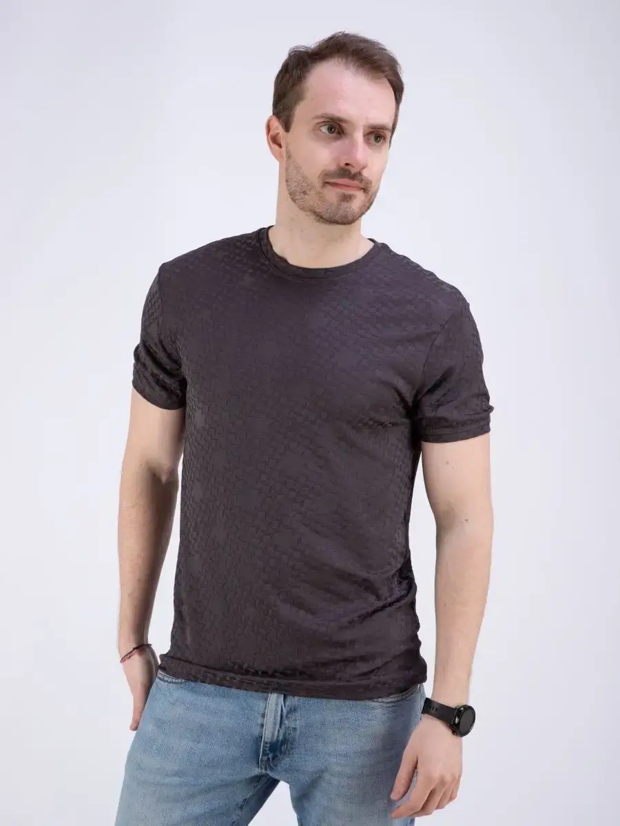Стильная однотонная футболка мужская из узорчатой ткани "жаккард супрем" высшего качества. Ткань современная, прочная и эластичная с "дышащим" эффектом. Шикарная футболка производство Турция с своеобразным рельефным рисунком, который получается в результате сложного плетения. Практичная футболка на каждый день, посадки slim fit (слим фит). Идеально подходит как для повседневного гардероба, так и для занятий спортом и фитнес, не раздражает кожу и позволяет ей дышать.