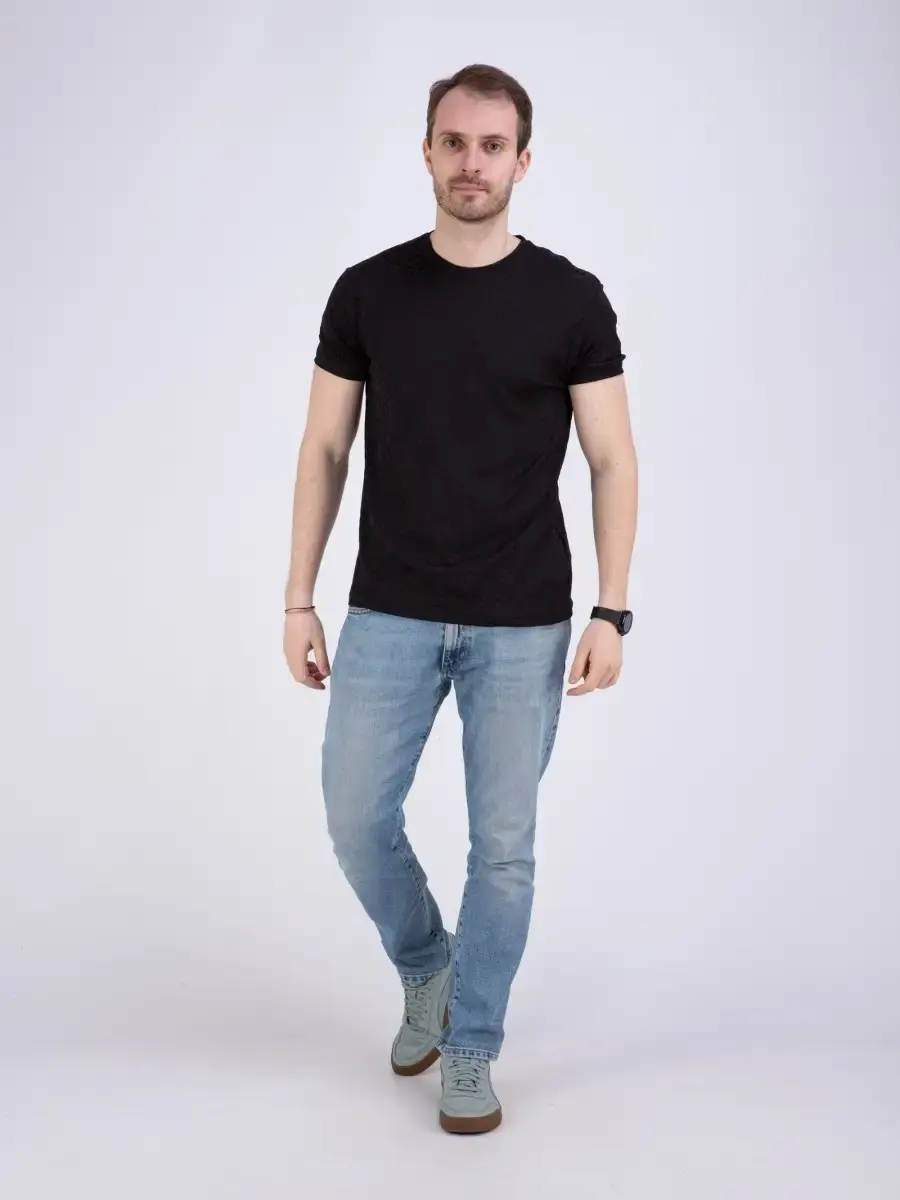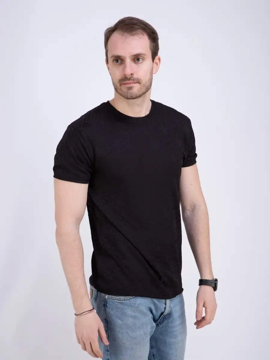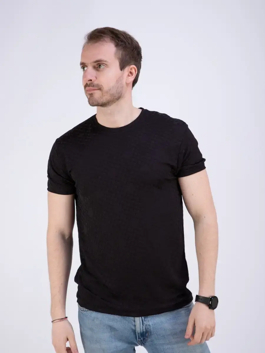 Стильная однотонная футболка мужская из узорчатой ткани "жаккард супрем" высшего качества. Ткань современная, прочная и эластичная с "дышащим" эффектом. Шикарная футболка производство Турция с своеобразным рельефным рисунком, который получается в результате сложного плетения. Практичная футболка на каждый день, посадки slim fit (слим фит). Идеально подходит как для повседневного гардероба, так и для занятий спортом и фитнес, не раздражает кожу и позволяет ей дышать.