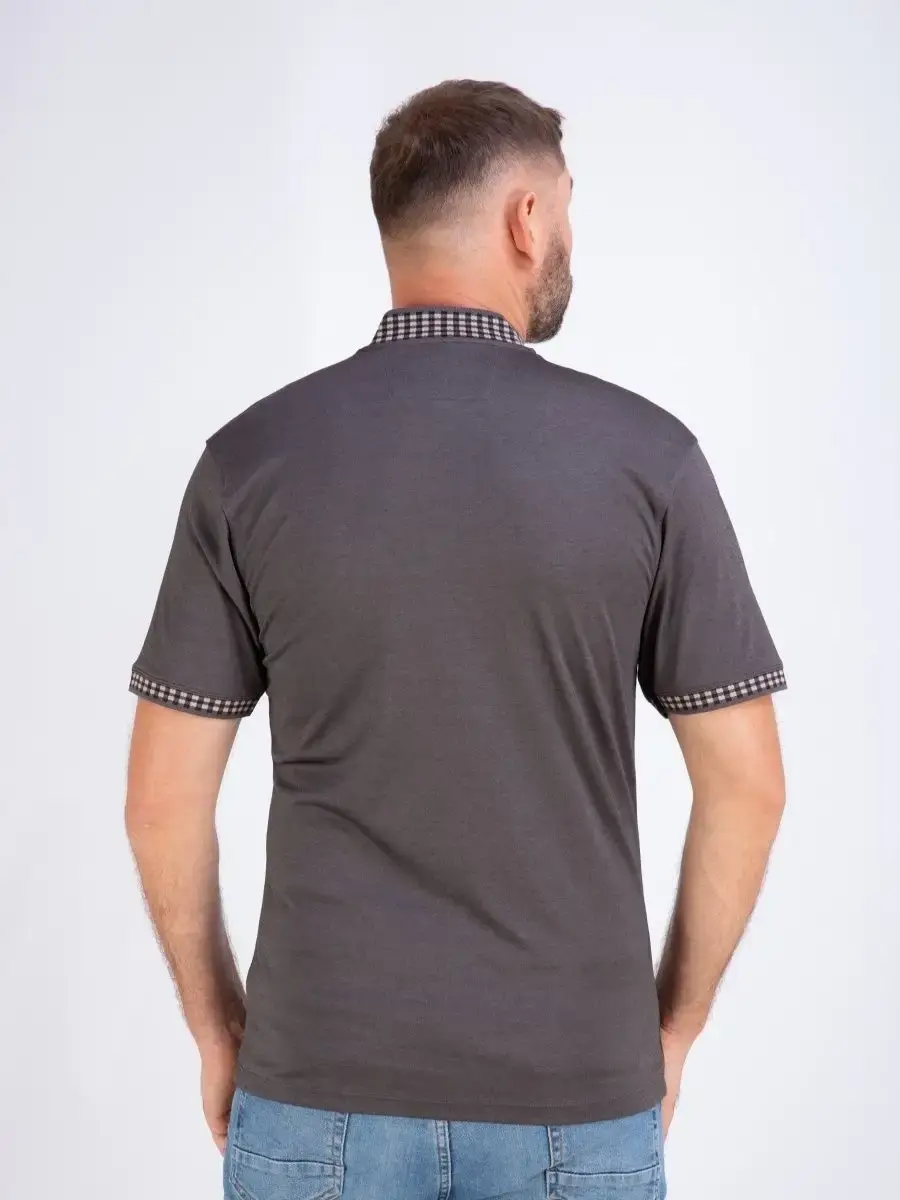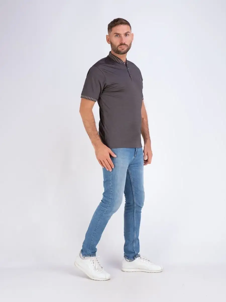 Базовая однотонная футболка мужская из прочной и легкой мерсеризованной ткани "каги" высшего качества слим фит (slim fit) с декоротивными вставками на манжетах и воротнике. Практичная базовая футболка с застежкой на кнопках из мягкой по структуре ткани, имеет хорошую воздухопроницаемость, легко гладится, имеет красивый блеск. Футболка долго не потеряет свой цвет и форму, не выгорает на солнце. Идеально подходит как для повседневного гардероба (casual стиль), деловой стиль так и для занятий спортом, не раздражает кожу и позволяет ей дышать. Производство Турция