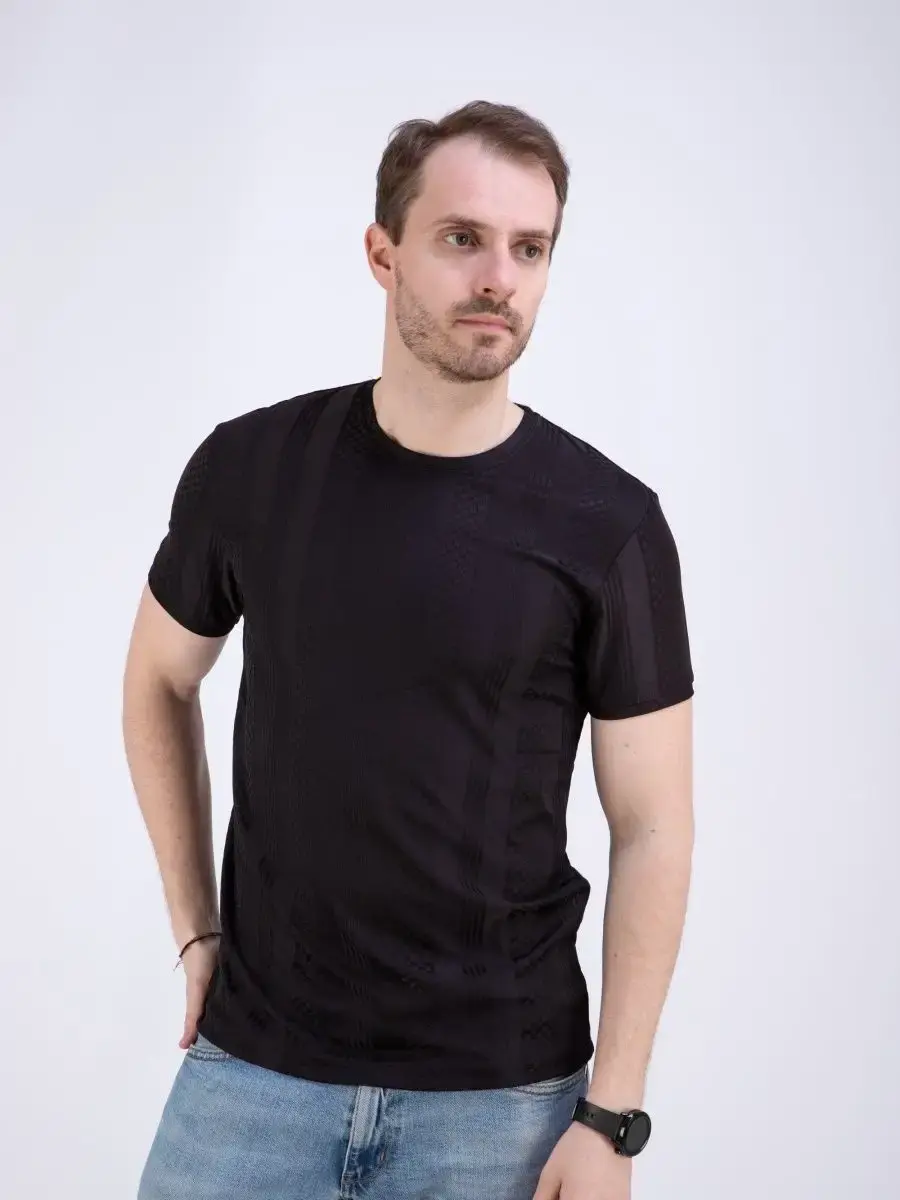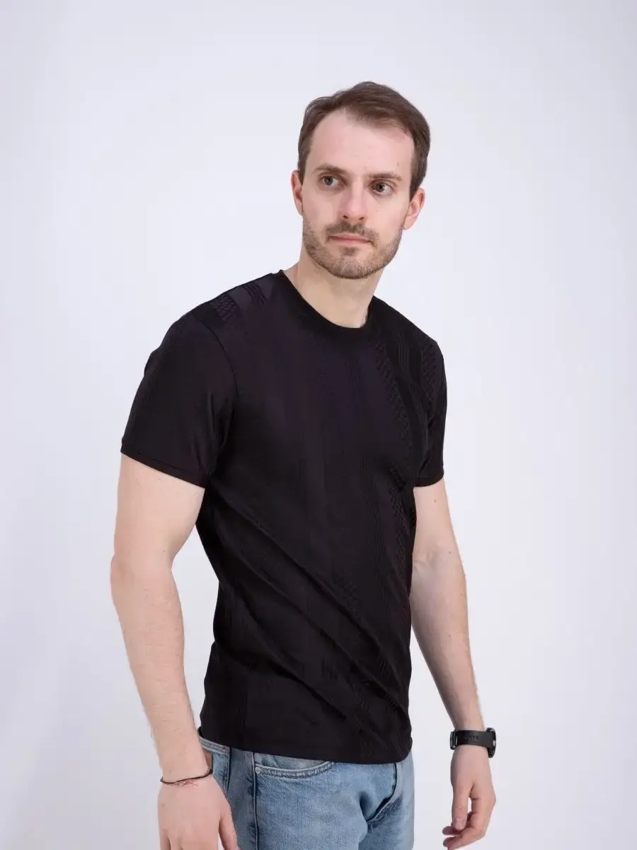 Стильная однотонная футболка мужская из узорчатой ткани "жаккард супрем" высшего качества. Ткань современная, прочная и эластичная с "дышащим" эффектом. Шикарная футболка производство Турция с своеобразным рельефным рисунком, который получается в результате сложного плетения. Практичная футболка на каждый день, посадки slim fit (слим фит). Идеально подходит как для повседневного гардероба, так и для занятий спортом и фитнес, не раздражает кожу и позволяет ей дышать.