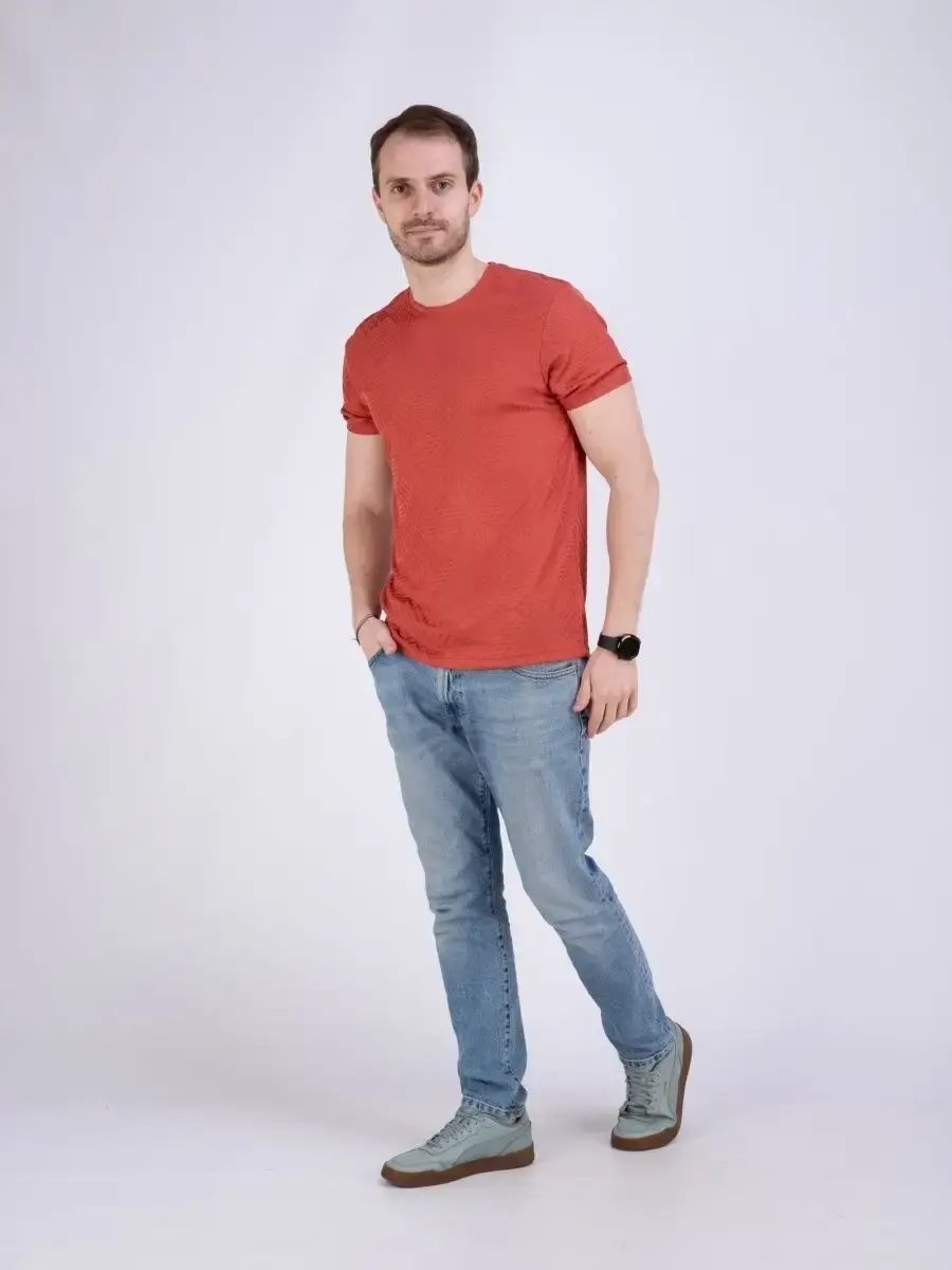 Стильная однотонная футболка мужская из узорчатой ткани "жаккард супрем" высшего качества. Ткань современная, прочная и эластичная с "дышащим" эффектом. Шикарная футболка производство Турция с своеобразным рельефным рисунком, который получается в результате сложного плетения. Практичная футболка на каждый день, посадки slim fit (слим фит). Идеально подходит как для повседневного гардероба, так и для занятий спортом и фитнес, не раздражает кожу и позволяет ей дышать.
