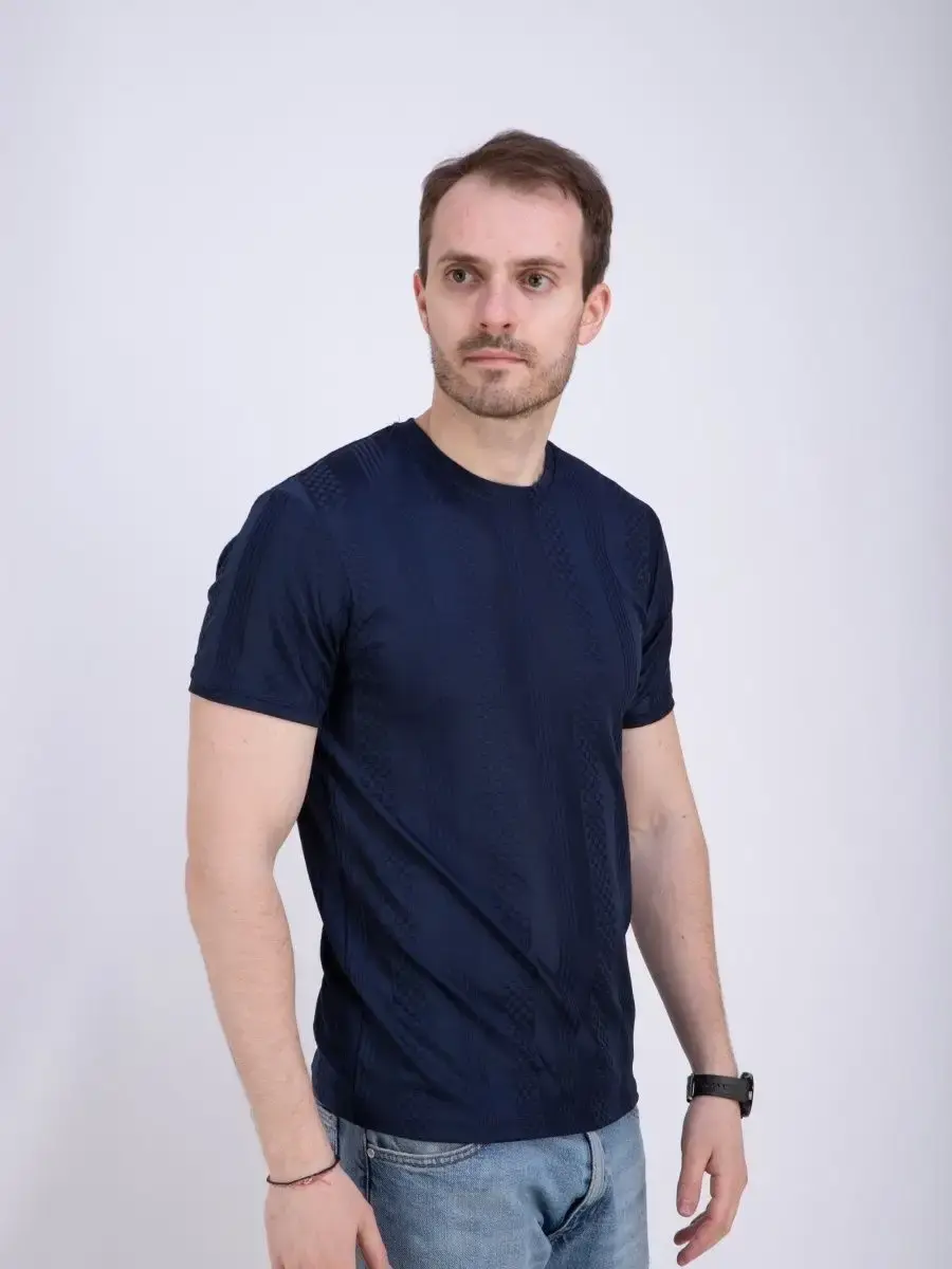 Стильная однотонная футболка мужская из узорчатой ткани "жаккард супрем" высшего качества. Ткань современная, прочная и эластичная с "дышащим" эффектом. Шикарная футболка производство Турция с своеобразным рельефным рисунком, который получается в результате сложного плетения. Практичная футболка на каждый день, посадки slim fit (слим фит). Идеально подходит как для повседневного гардероба, так и для занятий спортом и фитнес, не раздражает кожу и позволяет ей дышать.
