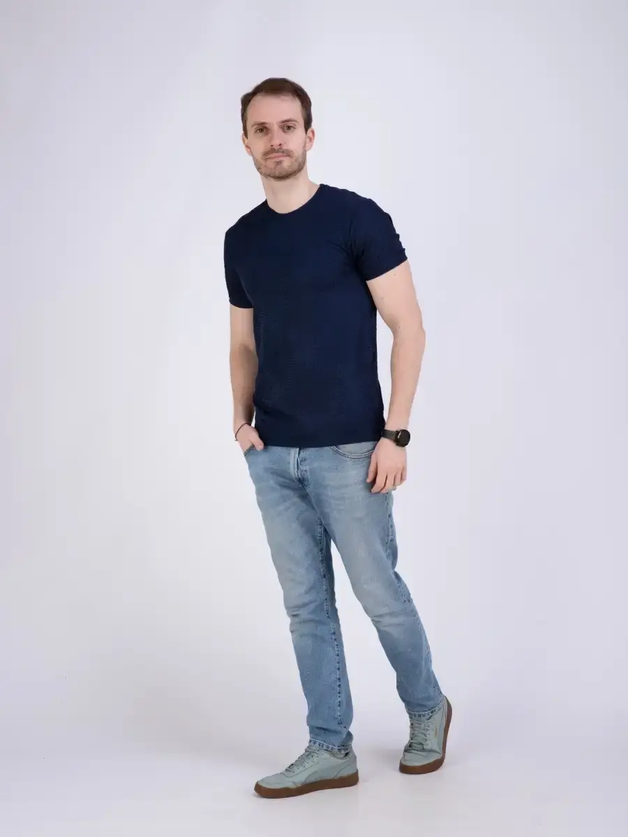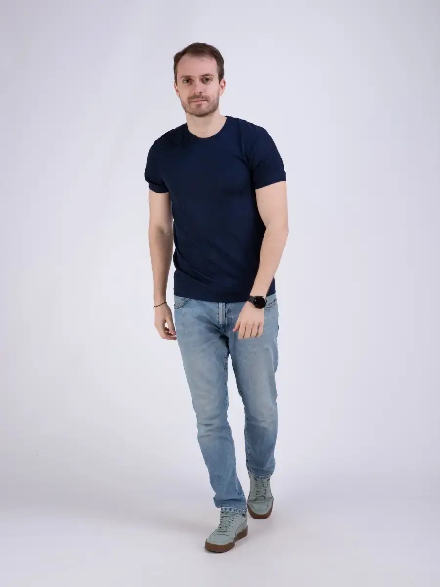 Стильная однотонная футболка мужская из узорчатой ткани "жаккард супрем" высшего качества. Ткань современная, прочная и эластичная с "дышащим" эффектом. Шикарная футболка производство Турция с своеобразным рельефным рисунком, который получается в результате сложного плетения. Практичная футболка на каждый день, посадки slim fit (слим фит). Идеально подходит как для повседневного гардероба, так и для занятий спортом и фитнес, не раздражает кожу и позволяет ей дышать.