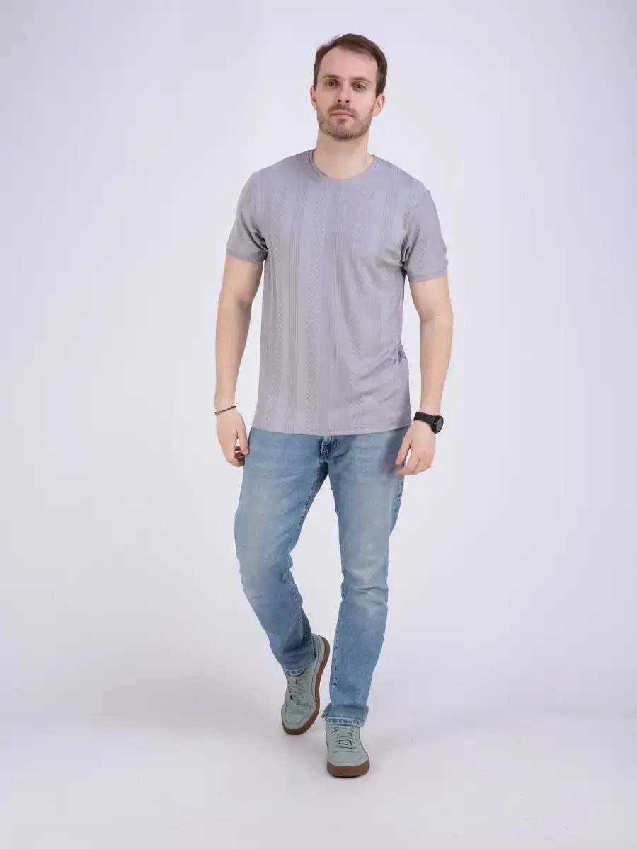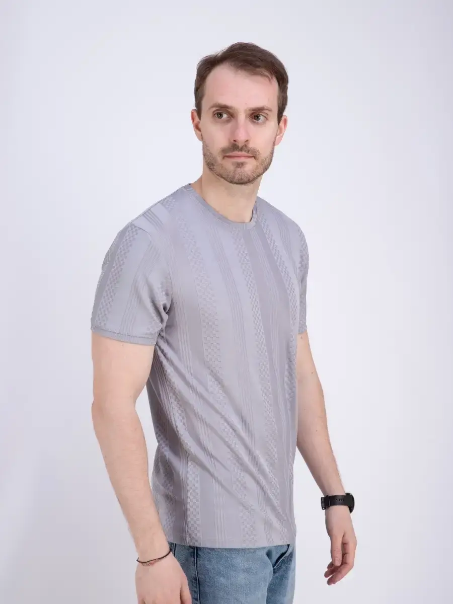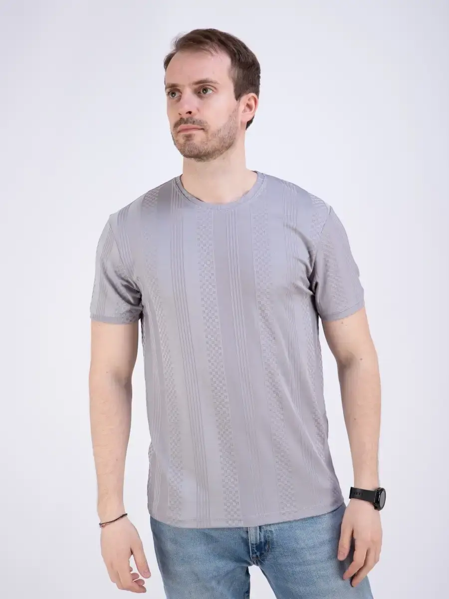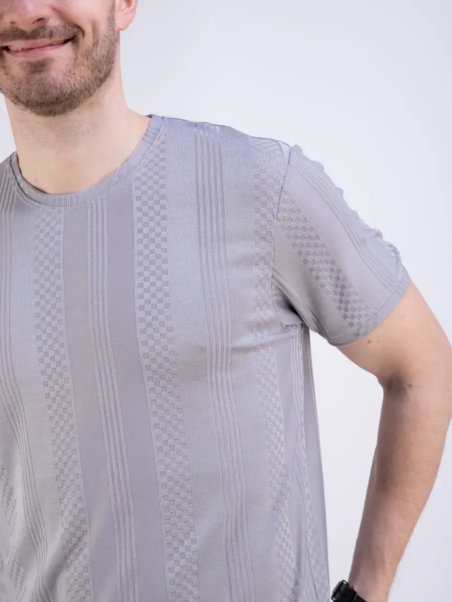 Стильная однотонная футболка мужская из узорчатой ткани "жаккард супрем" высшего качества. Ткань современная, прочная и эластичная с "дышащим" эффектом. Шикарная футболка производство Турция с своеобразным рельефным рисунком, который получается в результате сложного плетения. Практичная футболка на каждый день, посадки slim fit (слим фит). Идеально подходит как для повседневного гардероба, так и для занятий спортом и фитнес, не раздражает кожу и позволяет ей дышать.