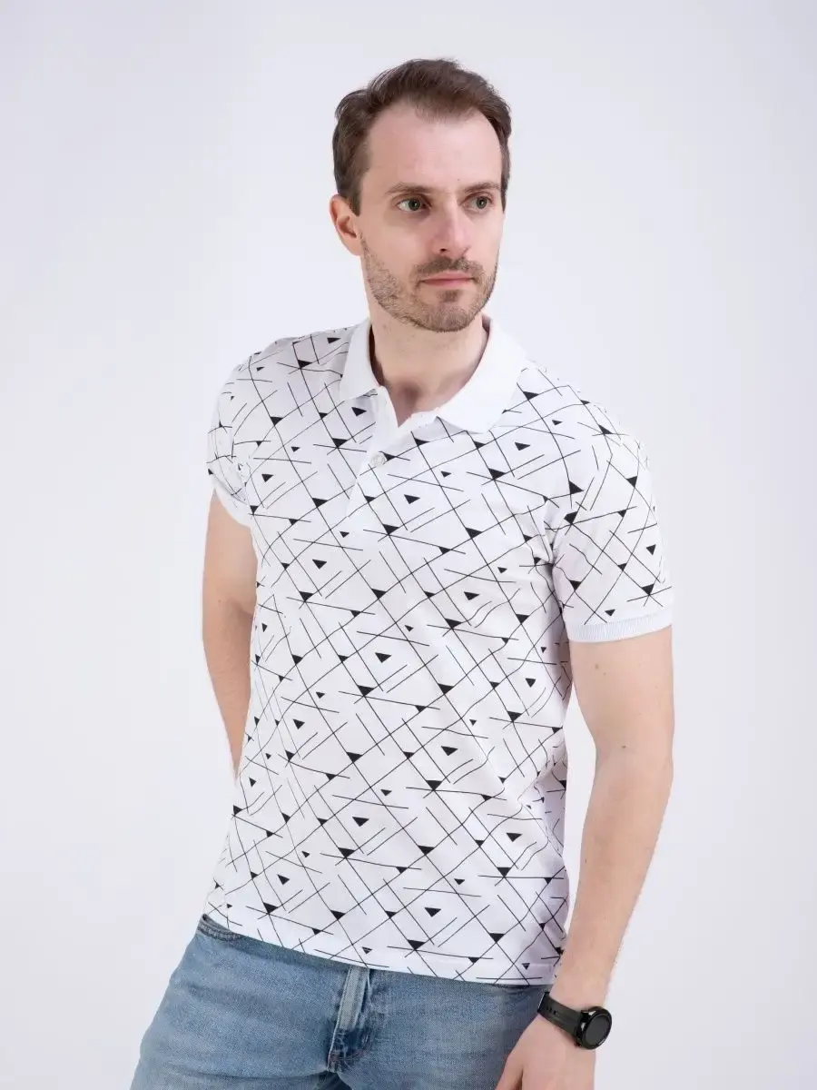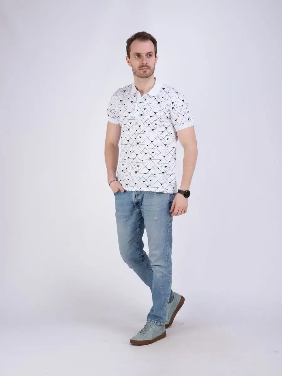 Стильная футболка поло мужская из ткани "пике" высшего качества с застежкой на пуговицах. Ткань современная, прочная и эластичная с "дышащим" эффектом с оригинальной структурой, которая получается в результате сложного плетения. Шикарная футболка мужская производство Турция с своеобразным принтом. Практичная мужская футболка поло на каждый день, посадки regular fit - слегка приталенная. Идеально подходит как для повседневного гардероба - casual стиль, деловой стиль так и для занятий спортом и фитнес, не раздражает кожу и позволяет ей дышать. Рубашка поло прекрасно дополнит Ваш образ, сочетается как с джинсами, так и с брюками, а также с шортами.