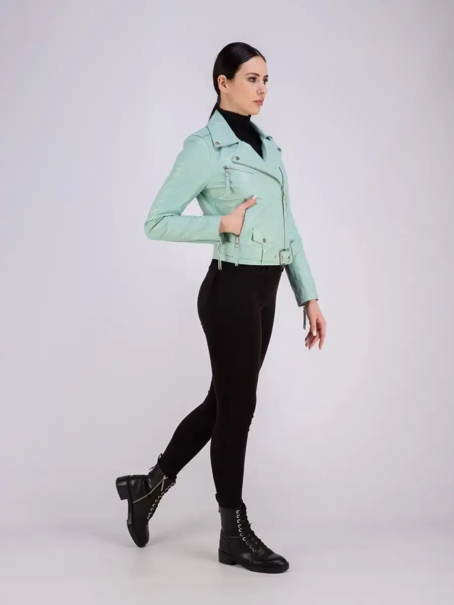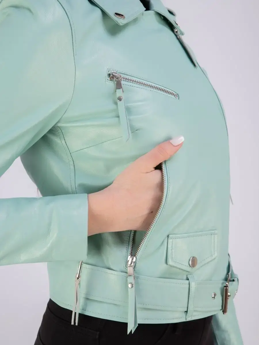 Косуха женская кожаная из 100% натуральной кожи, куртка женская станет вашей любимой покупкой в новом сезоне. Косуха женская укороченная в классическом стиле из нежной кожи ягненка идеальный выбор, если вы желаете составить эффектный, и в то же время очень стильный и модный look. Универсальная косуха женская натуральная кожа, куртка женская весна - осень с прорезными карманами на молнии, с ассиметричной застежкой и с молнией на рукавах отличный вариант верхней одежды на постоянную носку в демисезон, весной, осенью и в прохладное лето. Косуха женская короткая, кожаная куртка женская приталенного кроя прекрасно впишется практически в любой стиль - повседневный, городской, офисный и вечерний.