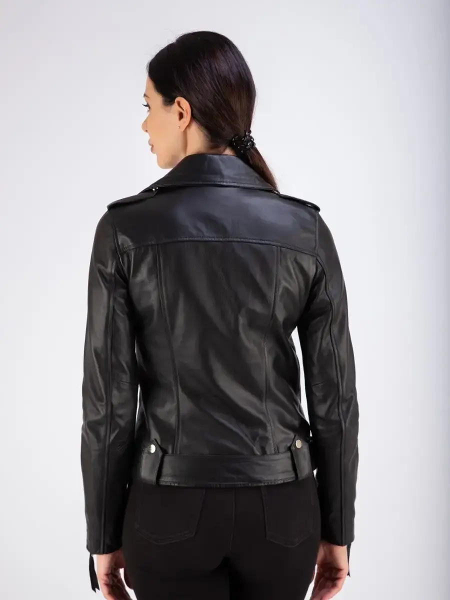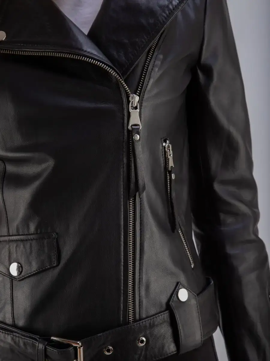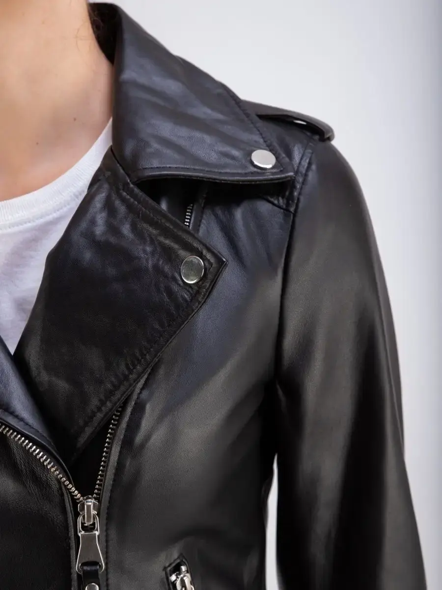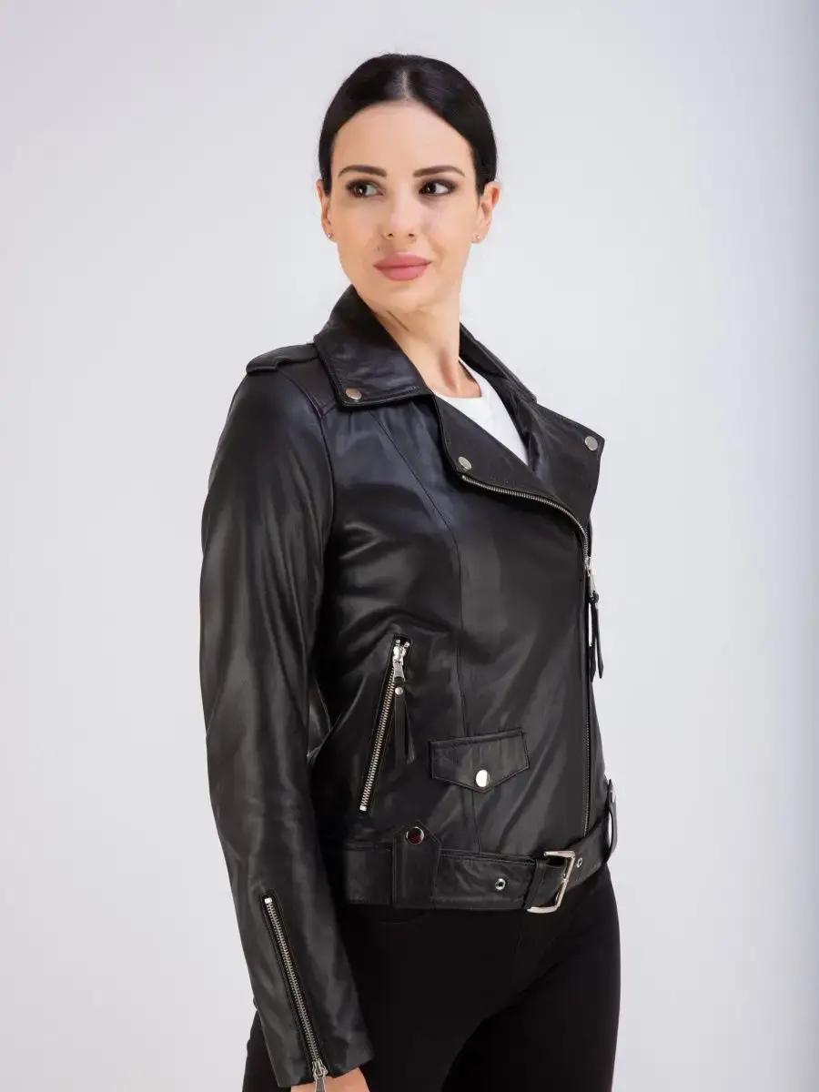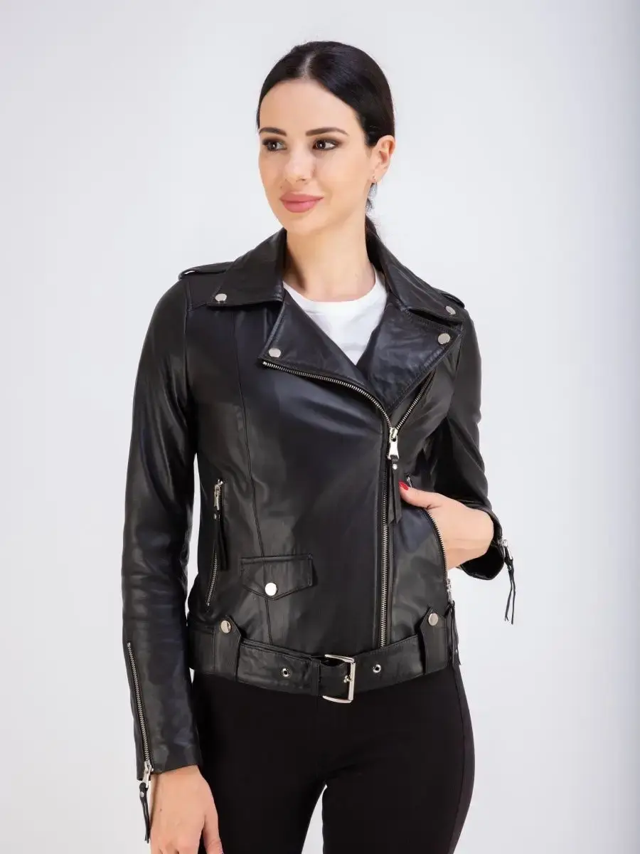 Косуха женская кожаная выполнена из 100% натуральной кожи. Куртка женская станет вашей любимой покупкой в новом сезоне. Косуха женская укороченная в классическом стиле из нежной кожи ягненка идеальный выбор, если вы желаете составить эффектный, и в то же время очень стильный и модный look. Универсальная косуха женская натуральная кожа, куртка женская весна - осень с прорезными карманами на молнии, с ассиметричной застежкой и с молнией на рукавах отличный вариант верхней одежды на постоянную носку в демисезон, весной, осенью и в прохладное лето. Косуха женская короткая, кожаная куртка женская приталенного кроя прекрасно впишется практически в любой стиль - повседневный, городской, офисный и вечерний.