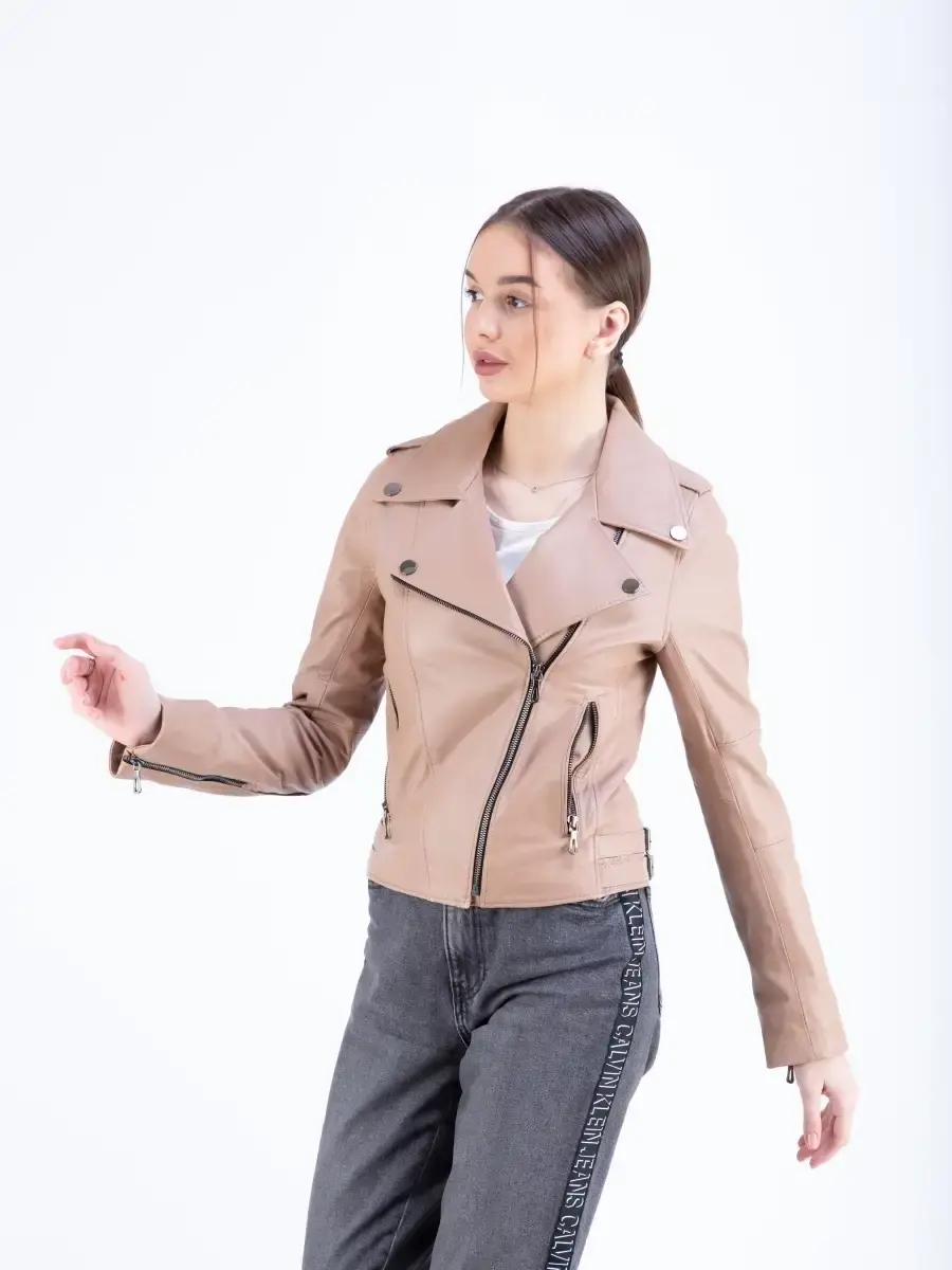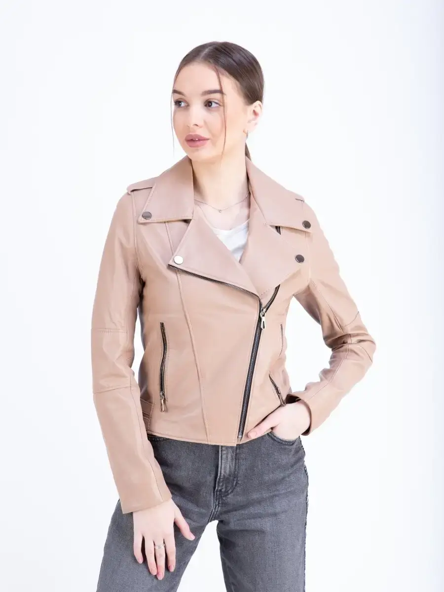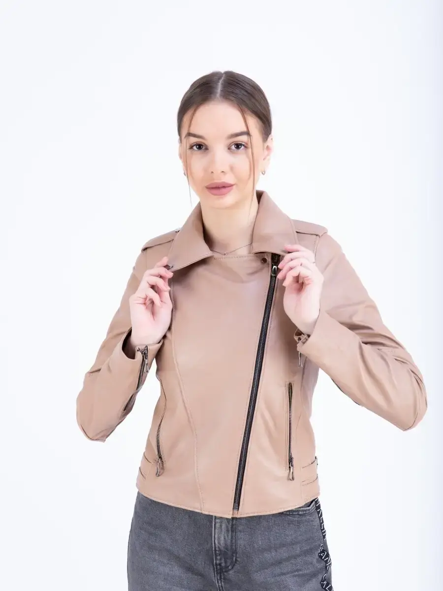 Косуха кожаная куртка женская из натуральной кожи ягненка. Кожаная косуха женская натуральная с прорезными карманами на молнии очень удобная и стильная. Курка женская из натуральной кожи приталенного кроя всегда будет обладать превосходным видом. MONDIAL Производство Турция