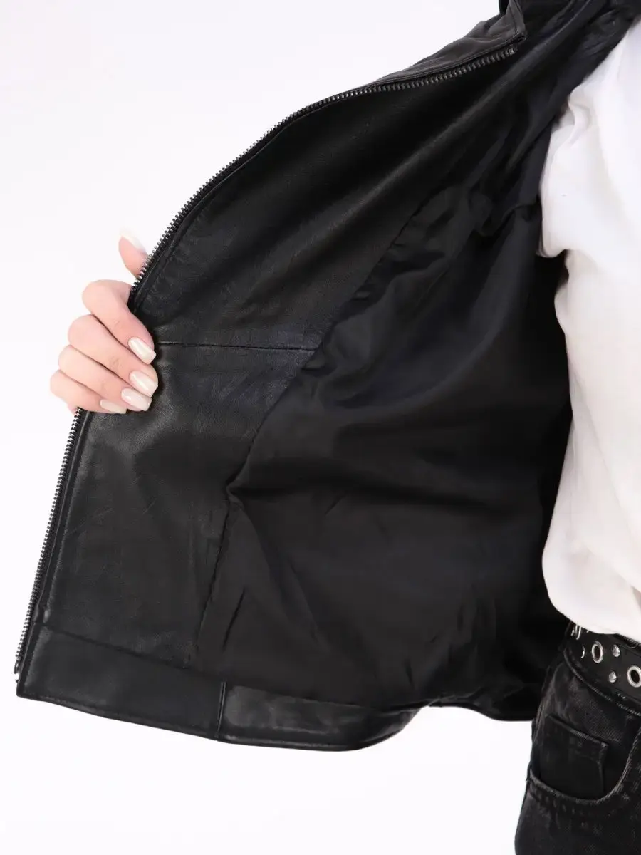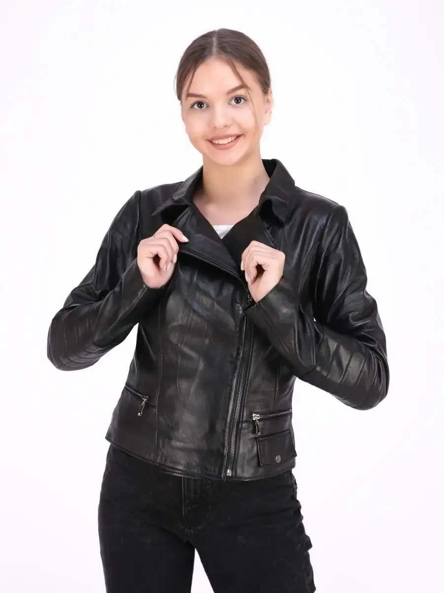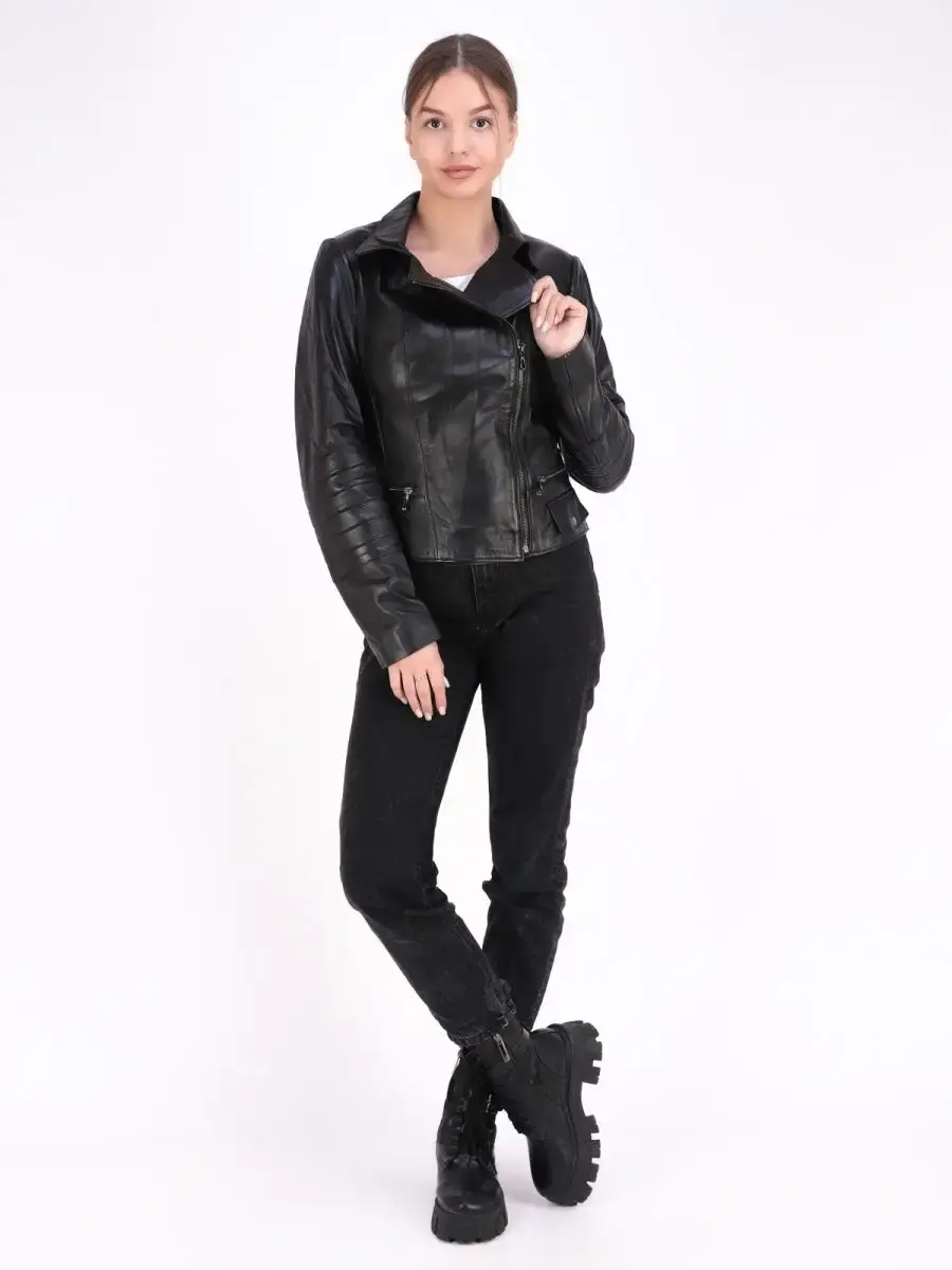 Женская куртка косуха из высококачественной гладкой натуральной кожи ягненка. MONDIAL Производство Турция.