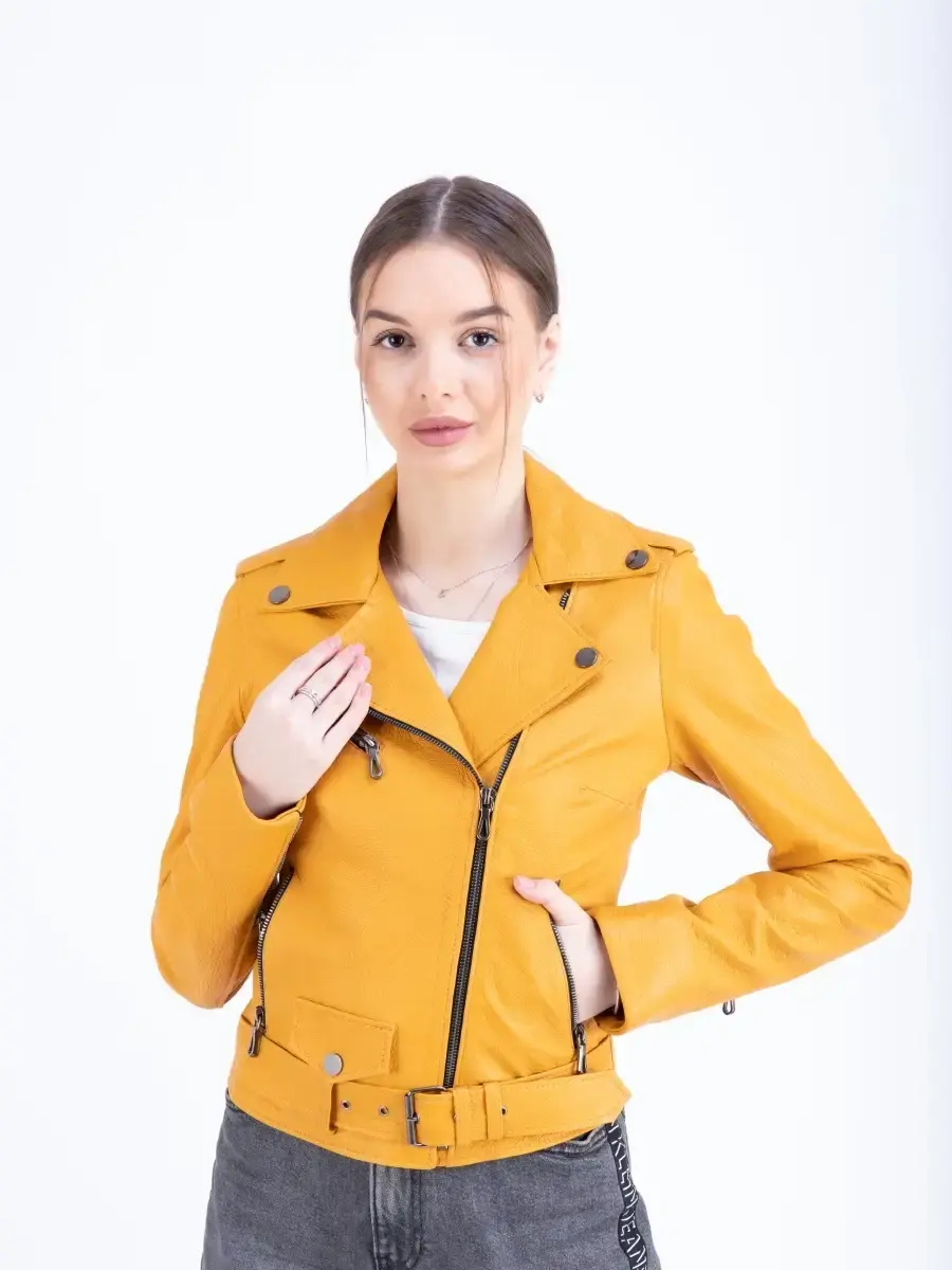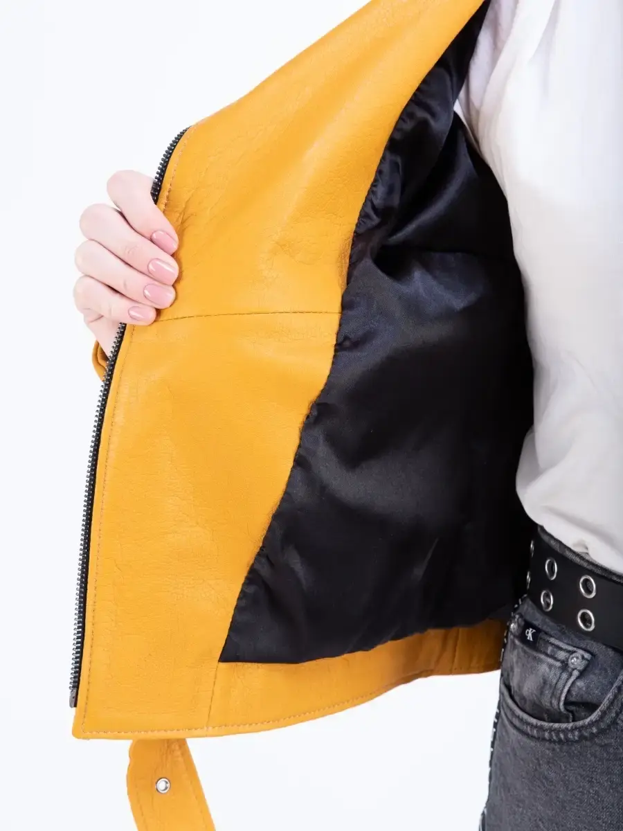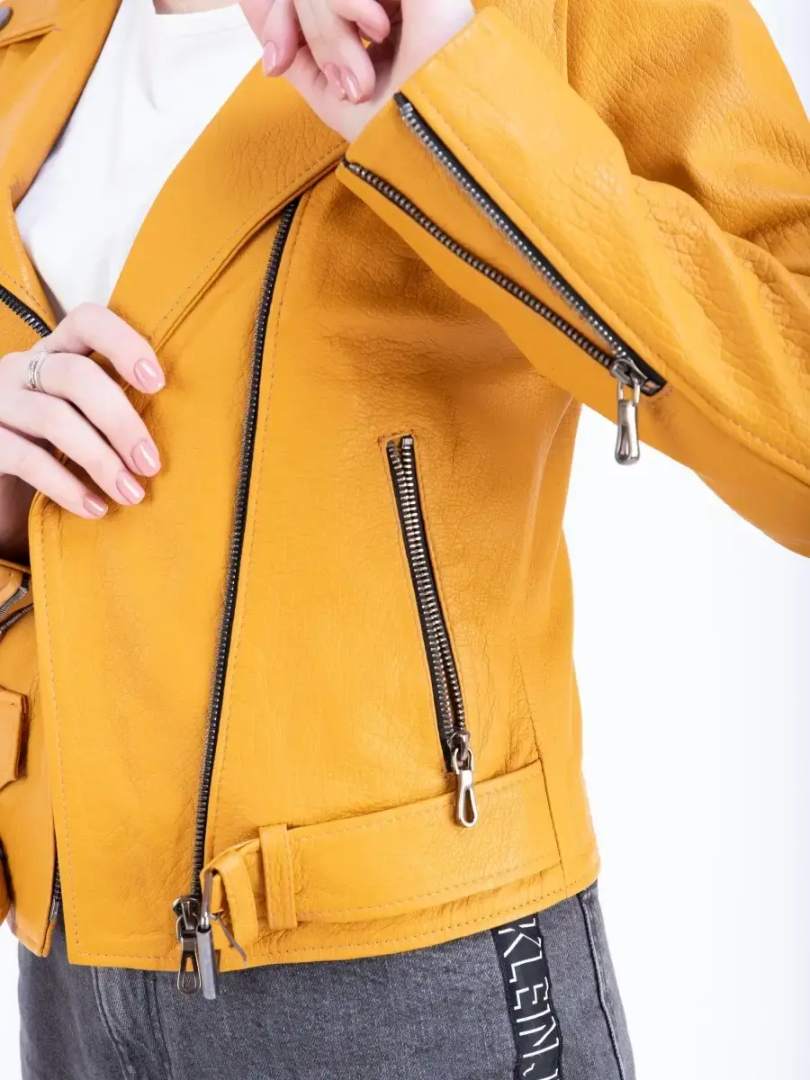 Женская косуха куртка из 100% высококачественной натуральной кожи. Косуха кожаная куртка женская выполнена из прочной и в тоже время из мягкой натуральной кожи. Выделка кожи фактурная - джумбо, смотрится роскошно и богато. Кожаная куртка нужная вещь для женщин и девушек. Кожаная демисезонная крутка очень удобная и функциональная. Универсальная кожанка из натуральной кожи, подойдет для любого сезона погоды осень, весна. Стильная байкерская куртка не оставить вас без внимания. Производство Турция.