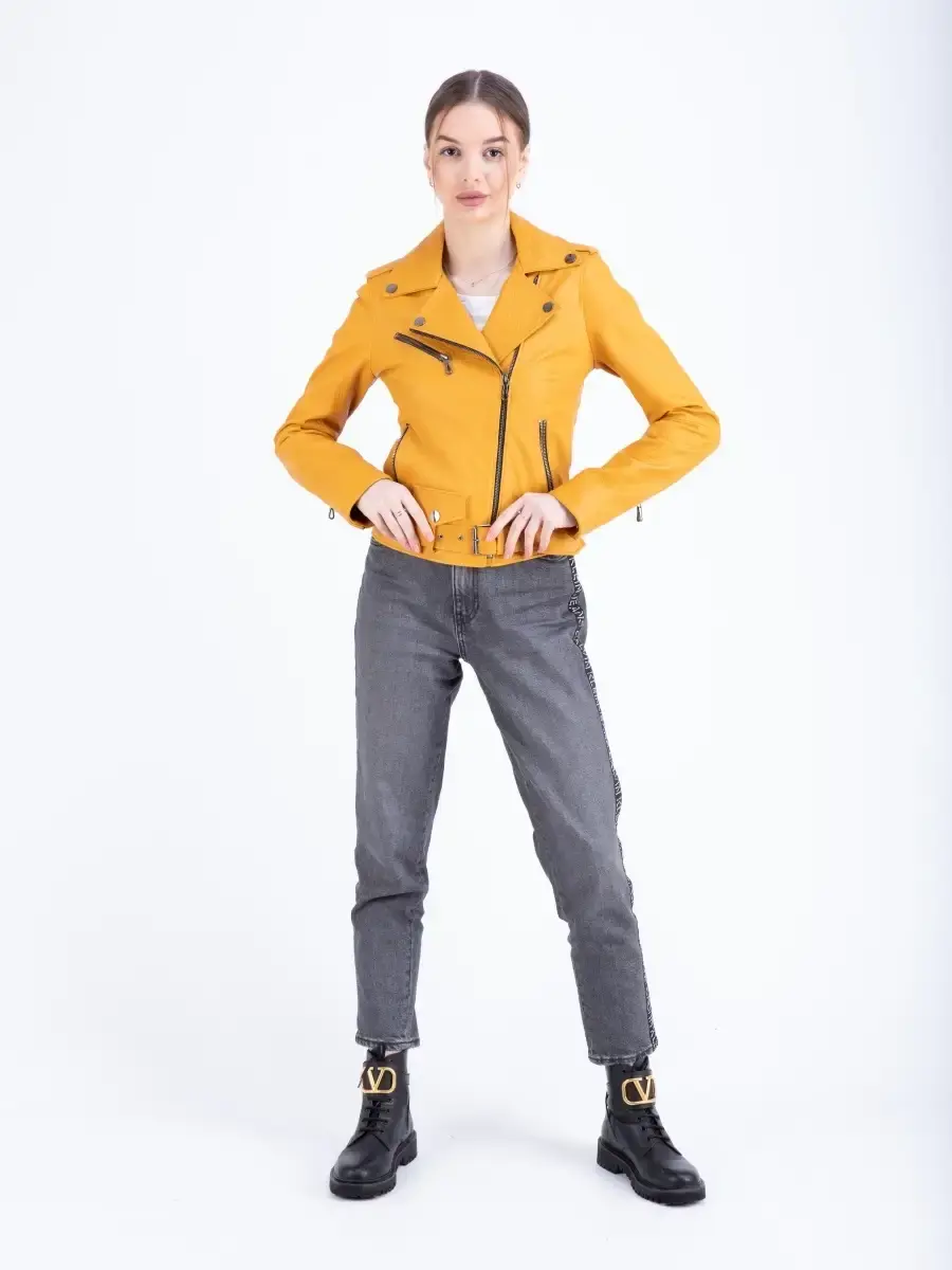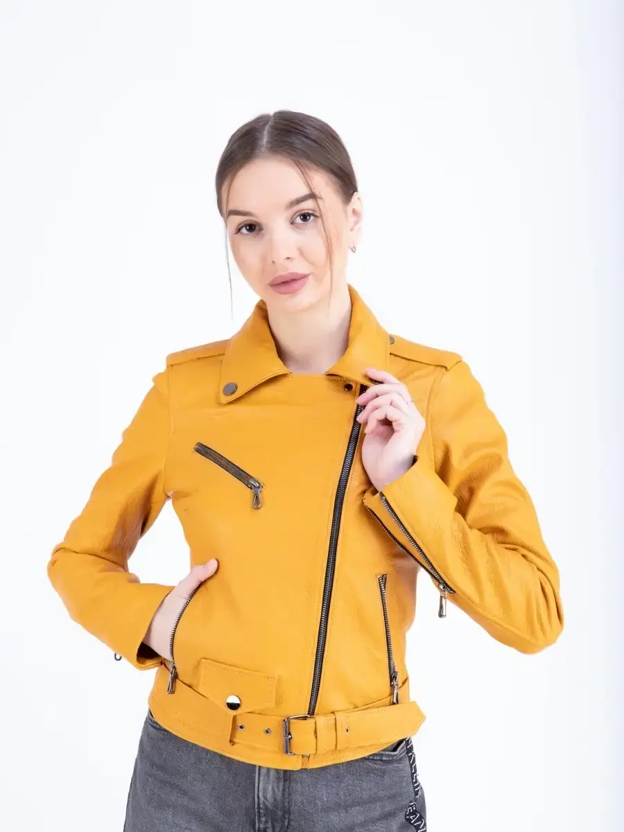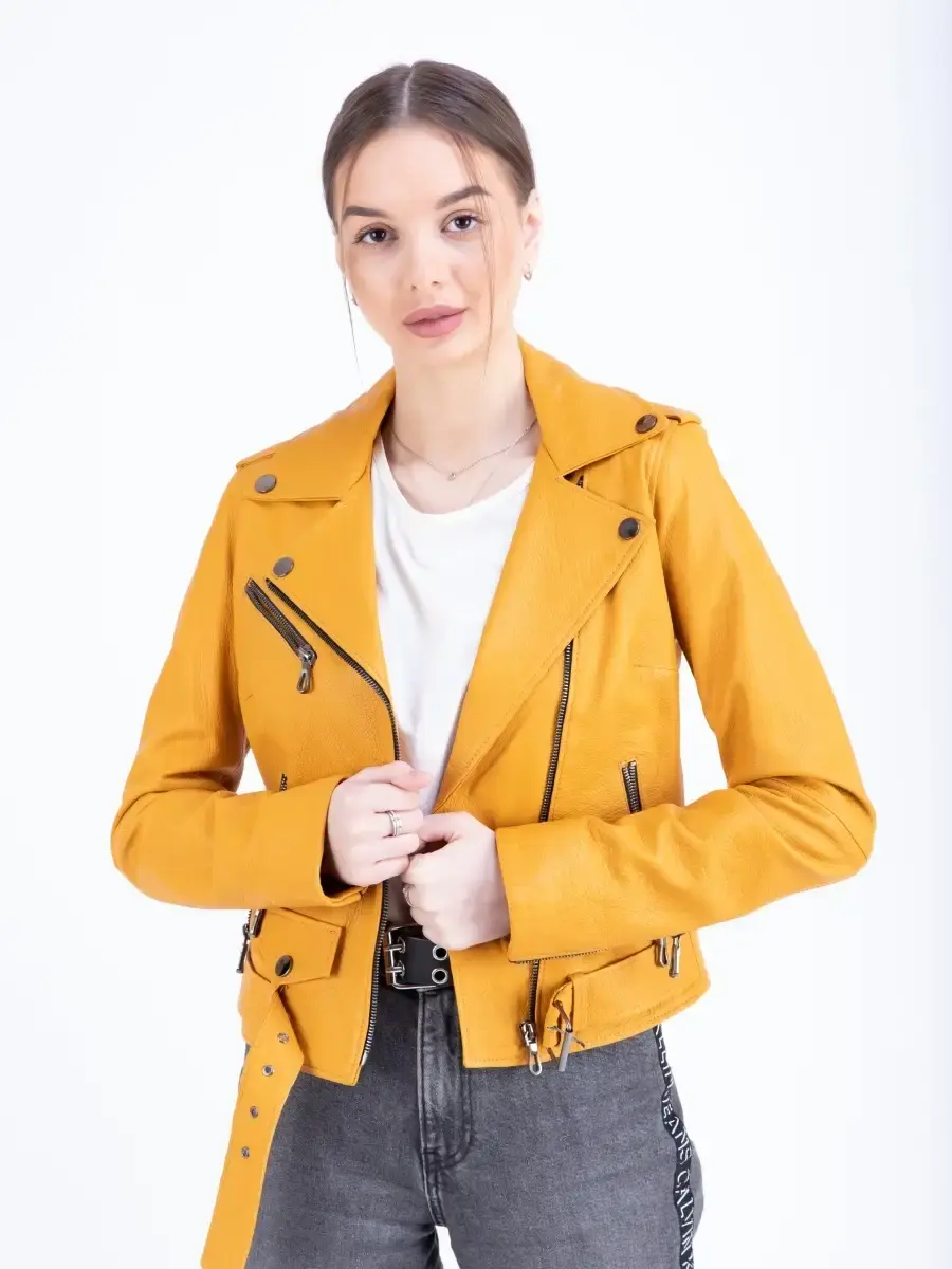 Женская косуха куртка из 100% высококачественной натуральной кожи. Косуха кожаная куртка женская выполнена из прочной и в тоже время из мягкой натуральной кожи. Выделка кожи фактурная - джумбо, смотрится роскошно и богато. Кожаная куртка нужная вещь для женщин и девушек. Кожаная демисезонная крутка очень удобная и функциональная. Универсальная кожанка из натуральной кожи, подойдет для любого сезона погоды осень, весна. Стильная байкерская куртка не оставить вас без внимания. Производство Турция.