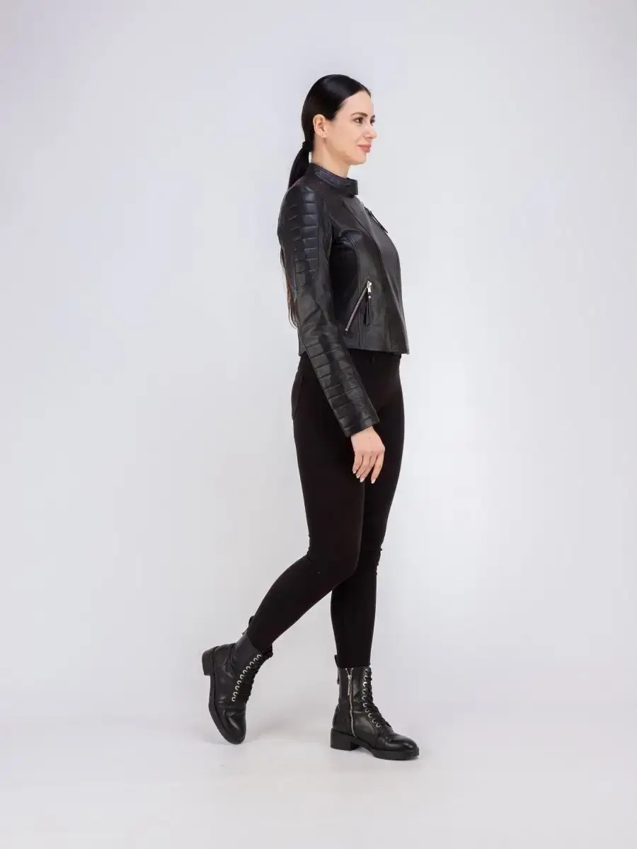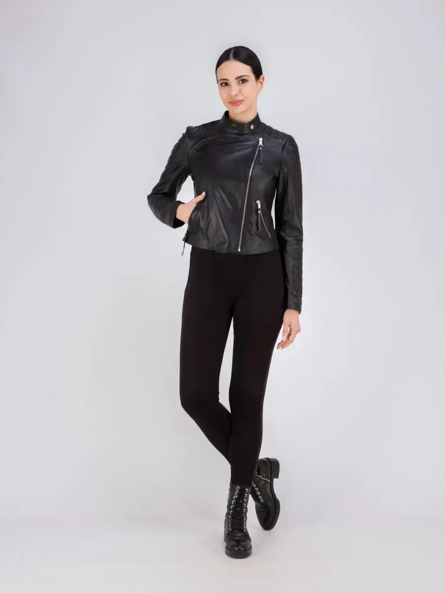 Стильная кожаная косуха бренда MONDIAL позволит создать поистине крутые, современные образы, не лишаясь при этом комфорта. Она изготовлена из натуральной кожи премиум - качества и обладает модным, удобным кроем. Короткая кожанка привлекает особое внимание благодаря стеганым строчкам на длинных рукавах. Эстетичная мотокуртка турецкого производства станет базовым предметом межсезонного гардероба взрослой женщины и девочки - подростка. Она красиво садится по фигуре девушек высокого и невысокого роста, придает силуэту женственные очертания. Курточка оснащена мягкой тканевой текстильной подкладкой, функциональными карманами и асимметричной молнией с заклепкой на бегунке. Верхняя одежда из качественного водоотталкивающего материала идеально подойдет для автоледи и дам разного возраста. Она будет актуальна весной и осенью, позволит легко создать элегантные луки в популярном спортивном и кэжуал стиле. Трендовая молодежная вещь из водонепроницаемой, непромокаемой кожи может смело использоваться для похода в школу и офис, а также на неформальную встречу в весенний и осенний, прохладный летний период. В нашей коллекции представлены модели как с отложным воротником, так и стойкой. Они предложены в разных размерах, включая plus - size (плюс - сайз). Есть курточки в классическом черном и универсальном светлом бежевом, лаконичном коричневом и утонченном синем цвете. Также предложена модель в расцветке хаки. Среди такого многообразия не составит труда подобрать наиболее подходящий вариант, исходя из личных предпочтений и преследуемых целей. Такая вещь станет любимой демисезонной верхней одеждой, так как сочетает комфорт и качество.