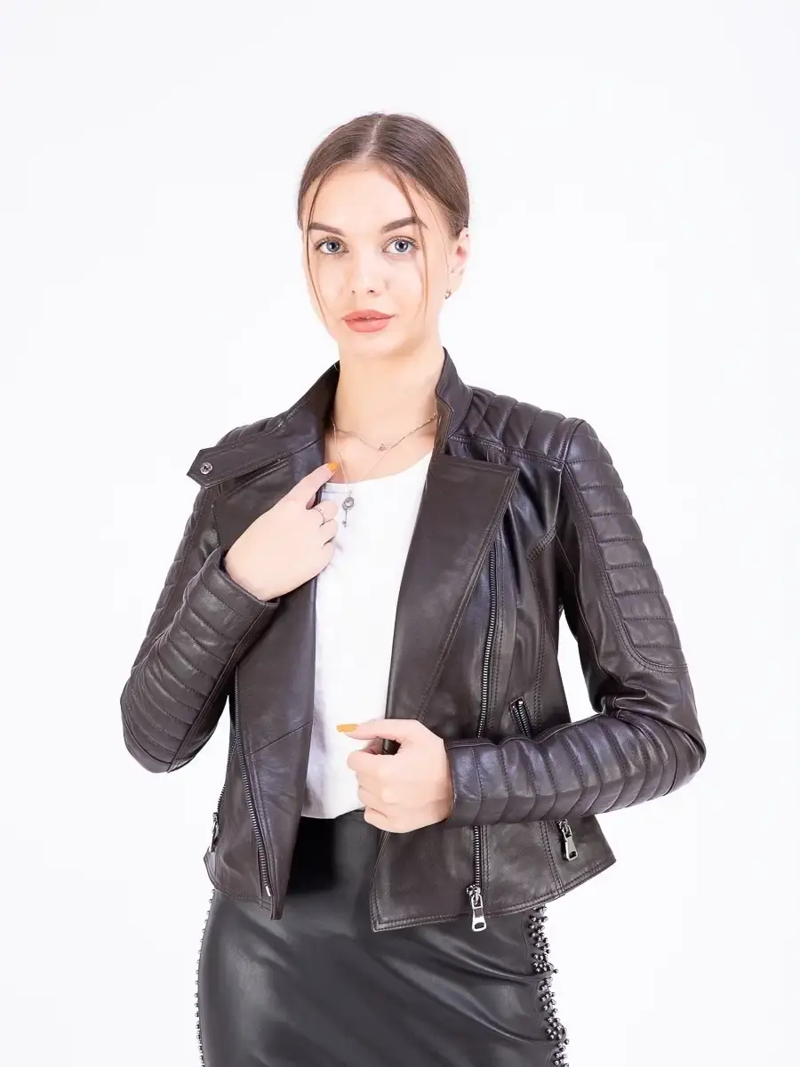 Стильная кожаная косуха бренда MONDIAL позволит создать поистине крутые, современные образы, не лишаясь при этом комфорта. Она изготовлена из натуральной кожи премиум - качества и обладает модным, удобным кроем. Короткая кожанка привлекает особое внимание благодаря стеганым строчкам на длинных рукавах. Эстетичная мотокуртка турецкого производства станет базовым предметом межсезонного гардероба взрослой женщины и девочки - подростка. Она красиво садится по фигуре девушек высокого и невысокого роста, придает силуэту женственные очертания. Курточка оснащена мягкой тканевой текстильной подкладкой, функциональными карманами и асимметричной молнией с заклепкой на бегунке. Верхняя одежда из качественного водоотталкивающего материала идеально подойдет для автоледи и дам разного возраста. Она будет актуальна весной и осенью, позволит легко создать элегантные луки в популярном спортивном и кэжуал стиле. Трендовая молодежная вещь из водонепроницаемой, непромокаемой кожи может смело использоваться для похода в школу и офис, а также на неформальную встречу в весенний и осенний, прохладный летний период. В нашей коллекции представлены модели как с отложным воротником, так и стойкой. Они предложены в разных размерах, включая plus - size (плюс - сайз). Есть курточки в классическом черном и универсальном светлом бежевом, лаконичном коричневом и утонченном синем цвете. Также предложена модель в расцветке хаки. Среди такого многообразия не составит труда подобрать наиболее подходящий вариант, исходя из личных предпочтений и преследуемых целей. Такая вещь станет любимой демисезонной верхней одеждой, так как сочетает комфорт и качество.