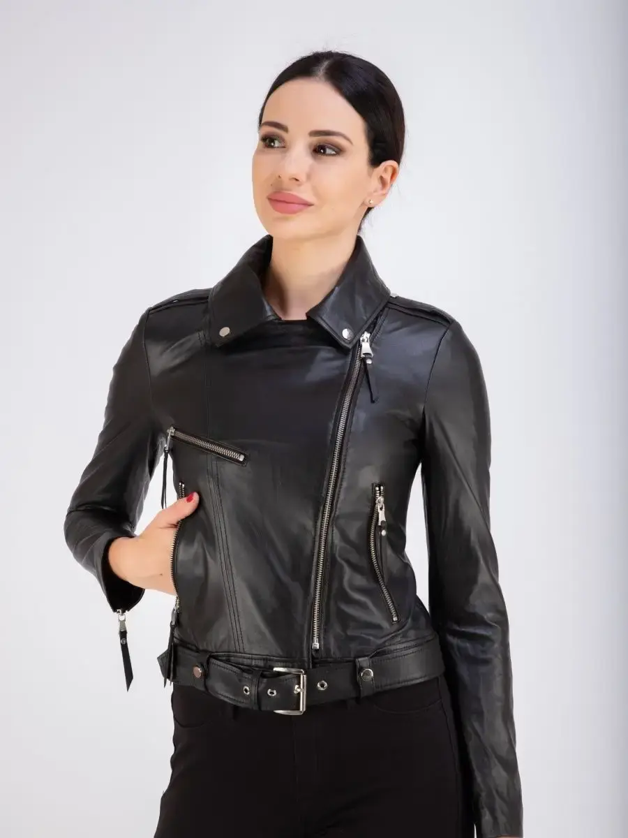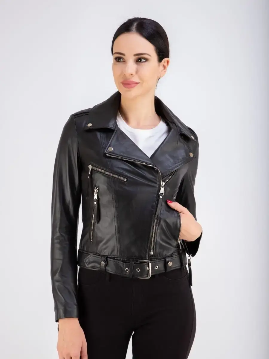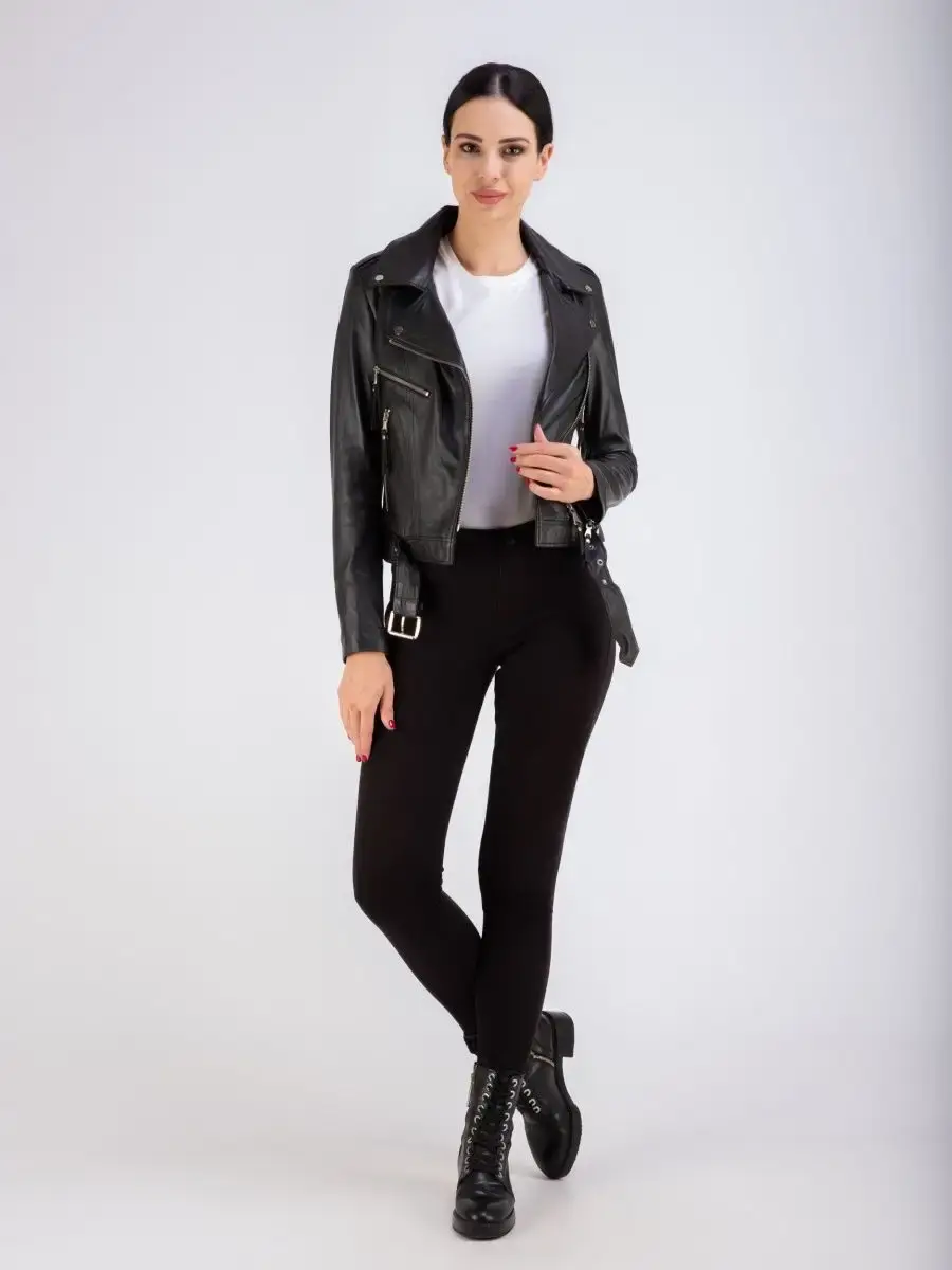 Косуха женская из 100% натуральной кожи идеальное решение для создания универсального гардероба. Куртка косуха женская, куртка женская весна - осень в классическом стиле из нежной кожи ягненка идеальный выбор, если вы желаете составить эффектный, и в то же время очень стильный и модный образ. Универсальная косуха женская натуральная кожа, кожаная куртка с прорезными карманами на молнии, с ассиметричной застежкой и с молнией на рукавах отличный вариант верхней одежды на постоянную носку в демисезон, весной, осенью и в прохладное лето. Косуха женская короткая, куртка демисезонная женская приталенного кроя прекрасно впишется практически в любой стиль - повседневный, городской, офисный и вечерний. Сочетание дизайна с долговечностью, драгоценностью и мягкостью натуральной кожи делает косухи женские, куртки женские, плащи и пальто из кожи идеальным предметом женской одежды. Вы можете купить косухи, куртки, косуха женская кожаная, куртка женская демисезонная косуха женская укороченная, кожаная куртка женская, косуха для девочки, куртка кожаная женская в подарок со скидкой на странице бренда MONDIAL! Длина по спинке 50см. Производство Турция