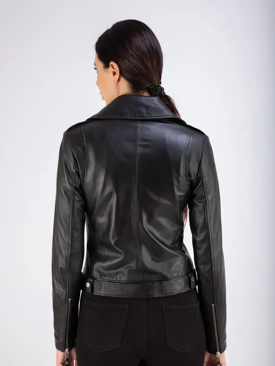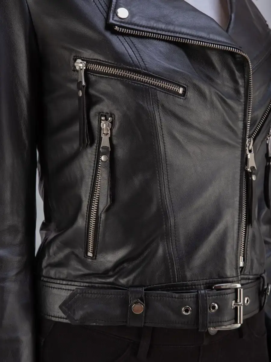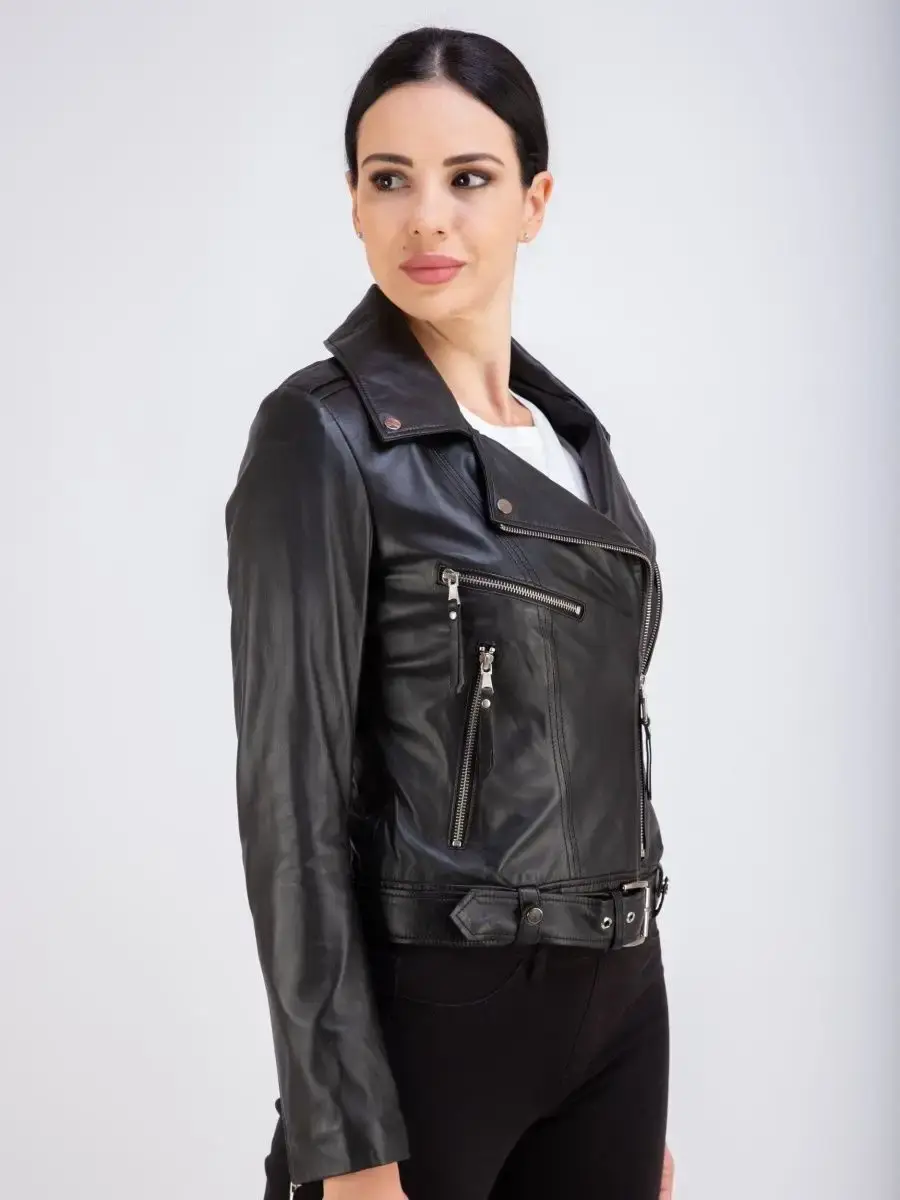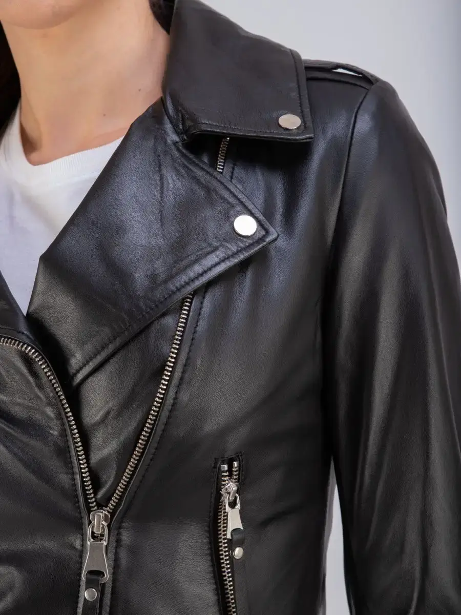 Косуха женская из 100% натуральной кожи идеальное решение для создания универсального гардероба. Куртка косуха женская, куртка женская весна - осень в классическом стиле из нежной кожи ягненка идеальный выбор, если вы желаете составить эффектный, и в то же время очень стильный и модный образ. Универсальная косуха женская натуральная кожа, кожаная куртка с прорезными карманами на молнии, с ассиметричной застежкой и с молнией на рукавах отличный вариант верхней одежды на постоянную носку в демисезон, весной, осенью и в прохладное лето. Косуха женская короткая, куртка демисезонная женская приталенного кроя прекрасно впишется практически в любой стиль - повседневный, городской, офисный и вечерний. Сочетание дизайна с долговечностью, драгоценностью и мягкостью натуральной кожи делает косухи женские, куртки женские, плащи и пальто из кожи идеальным предметом женской одежды. Вы можете купить косухи, куртки, косуха женская кожаная, куртка женская демисезонная косуха женская укороченная, кожаная куртка женская, косуха для девочки, куртка кожаная женская в подарок со скидкой на странице бренда MONDIAL! Длина по спинке 50см. Производство Турция