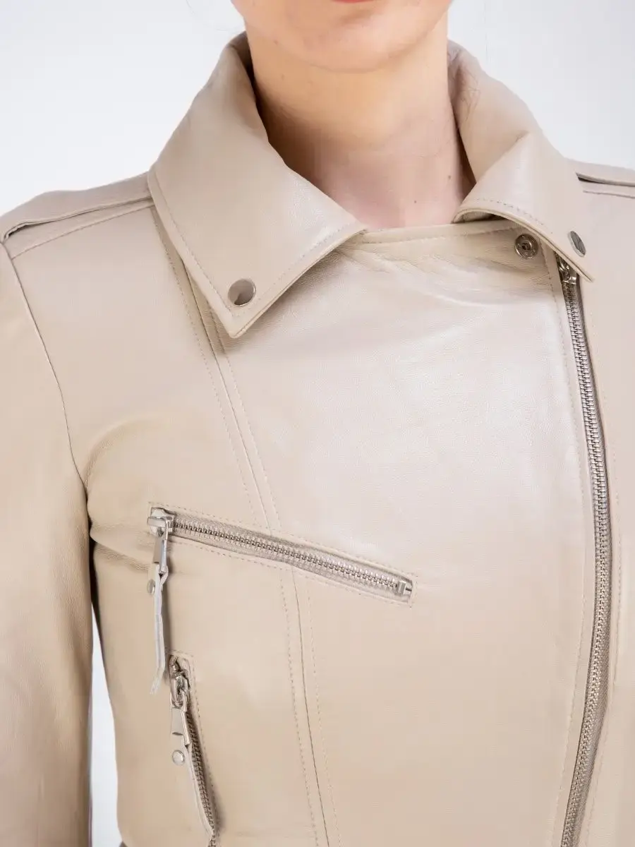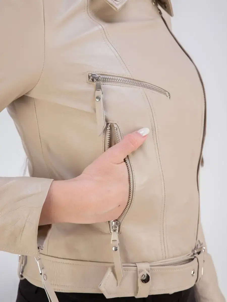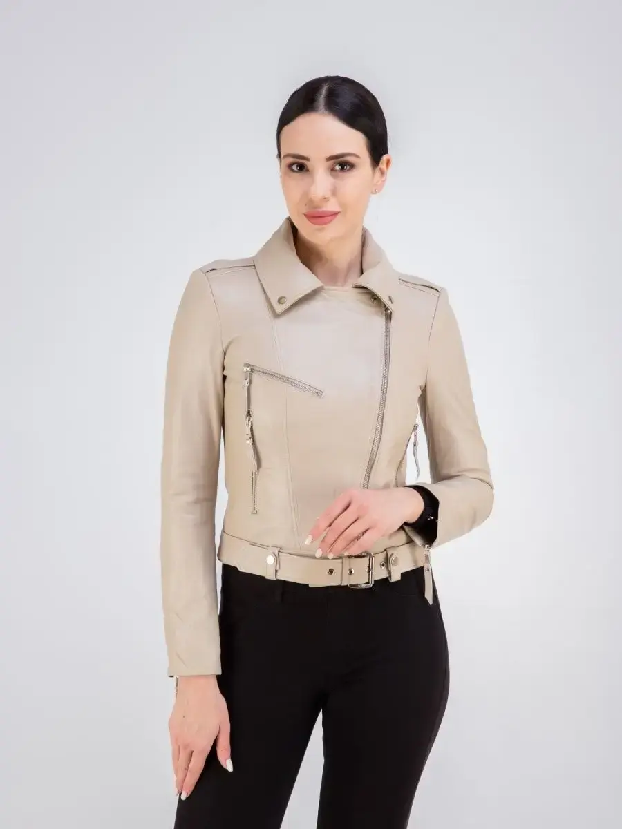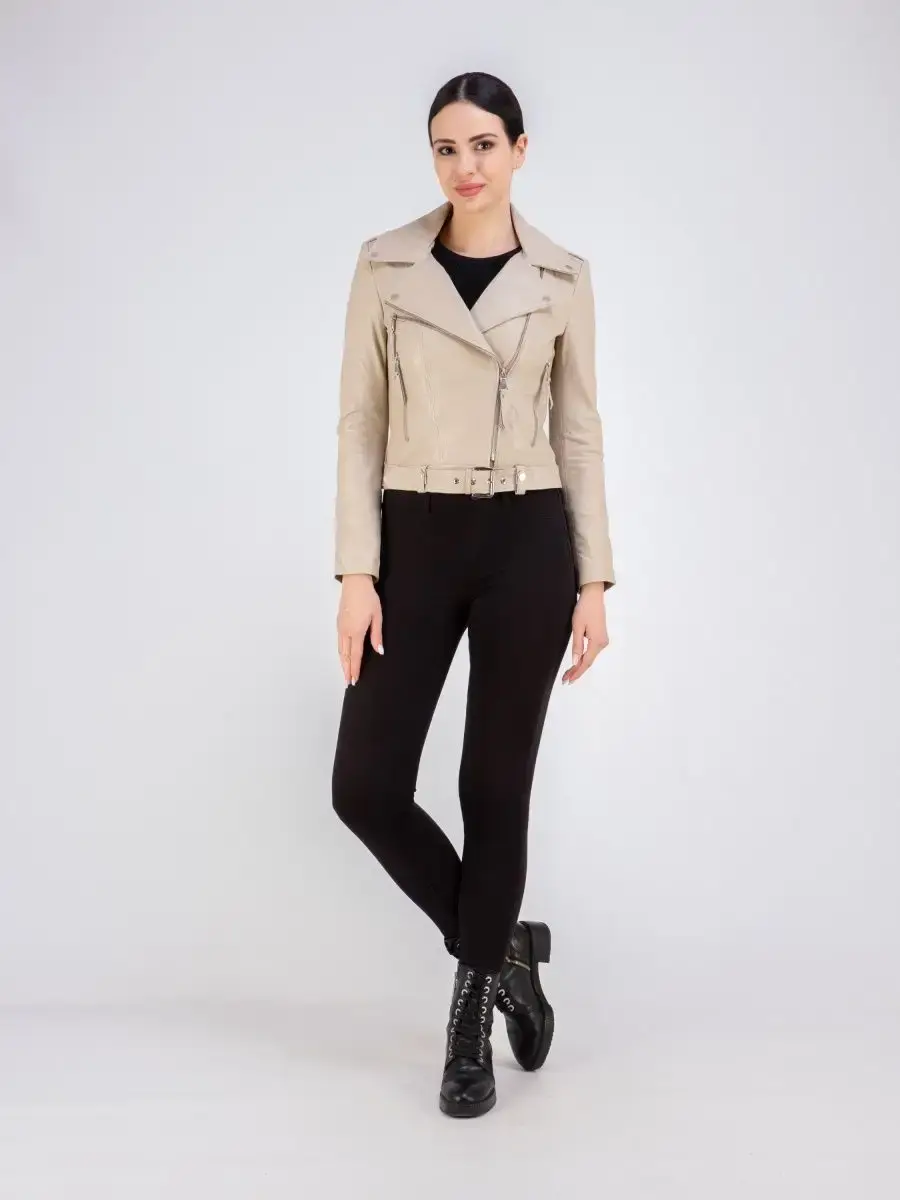 Косуха женская из 100% натуральной кожи идеальное решение для создания универсального гардероба. Куртка косуха женская, куртка женская весна - осень в классическом стиле из нежной кожи ягненка идеальный выбор, если вы желаете составить эффектный, и в то же время очень стильный и модный образ. Универсальная косуха женская натуральная кожа, кожаная куртка с прорезными карманами на молнии, с ассиметричной застежкой и с молнией на рукавах отличный вариант верхней одежды на постоянную носку в демисезон, весной, осенью и в прохладное лето. Косуха женская короткая, куртка демисезонная женская приталенного кроя прекрасно впишется практически в любой стиль - повседневный, городской, офисный и вечерний. Сочетание дизайна с долговечностью, драгоценностью и мягкостью натуральной кожи делает косухи женские, куртки женские, плащи и пальто из кожи идеальным предметом женской одежды. Вы можете купить косухи, куртки, косуха женская кожаная, куртка женская демисезонная косуха женская укороченная, кожаная куртка женская, косуха для девочки, куртка кожаная женская в подарок со скидкой на странице бренда MONDIAL! Длина по спинке 50см. Производство Турция