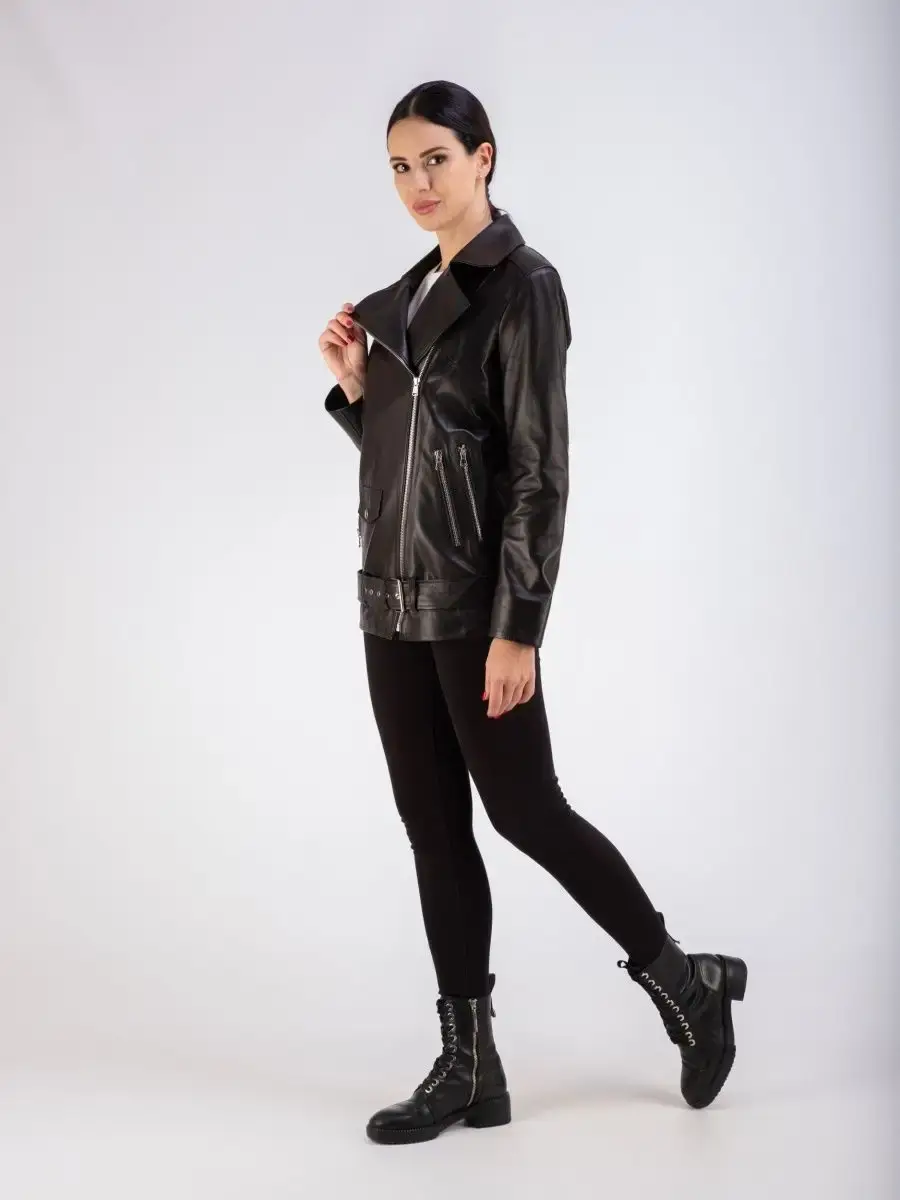 Удлиненная косуха куртка женская кожаная идеальный выбор, если вы планируете составить эффектный, и в то же время комфортный look. Это настоящая классика, которая действительно, никогда не потеряет своей актуальности. Гладкая кожа, узнаваемый модный силуэт, карманы на молнии - косуха женская из натуральной кожи - шикарный вариант верхней одежды на каждый день. Такая модель обязательно должна присутствовать в вашем гардеробе. Легко можно вписать в любой любимый вами стиль, и скомбинировать эту модель кожаной куртки с огромным количеством вещей. Например, с черной кожаной курткой - косухой можно надеть джинсы, лосины, брюки, юбки, платья. Производство Турция. Предлагаем широкий выбор моделей: кожаная куртка, из натуральной кожи, кожаная куртка женская, кожаная куртка косуха, куртка кожаная женская черная, кожаная куртка женская черная, кожаная куртка-рубашка, куртка рубашка, кожаный плащ, плащ женский, куртка, из натуральной кожи, косуха куртка женская, косуха женская, кожаная куртка косуха, куртка демисезонная, для высоких, для невысоких, большие размеры, оверсайз, женская куртка