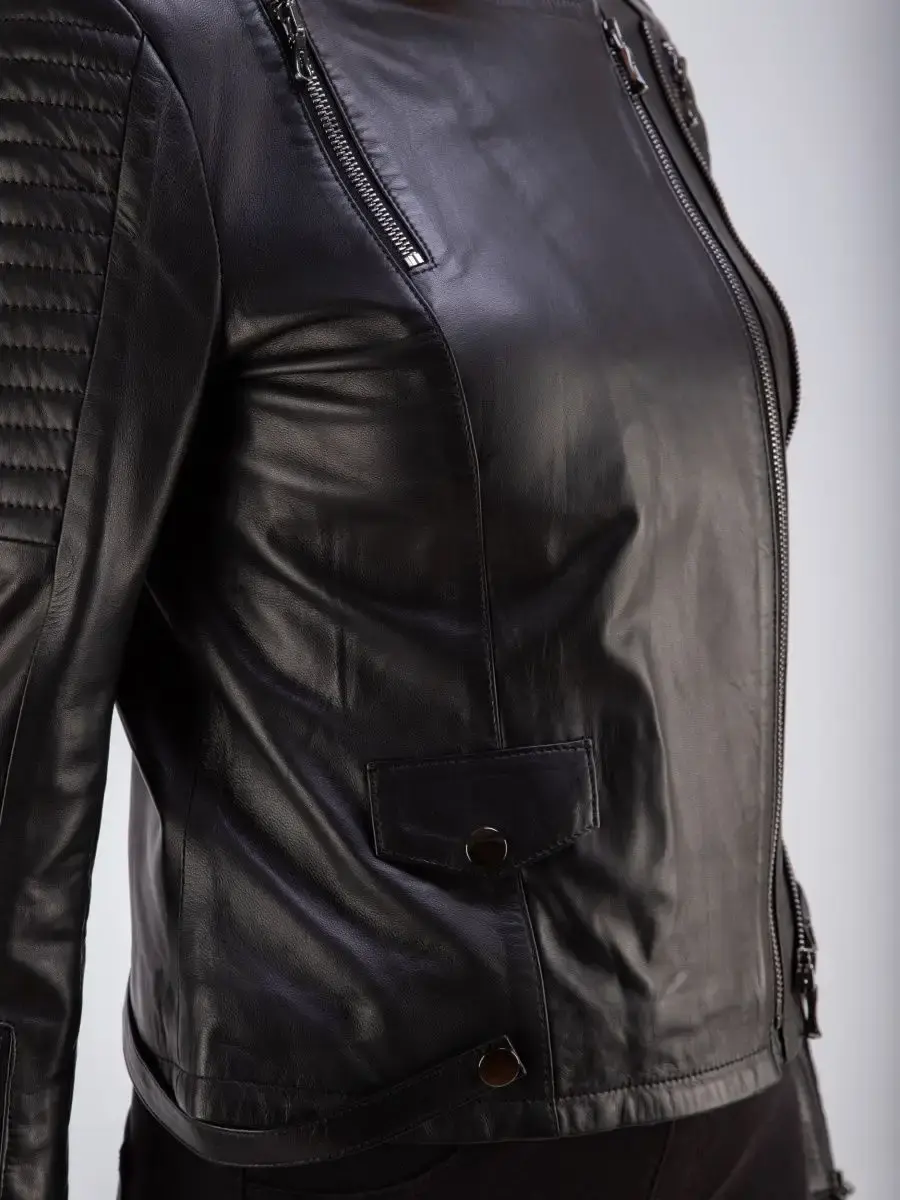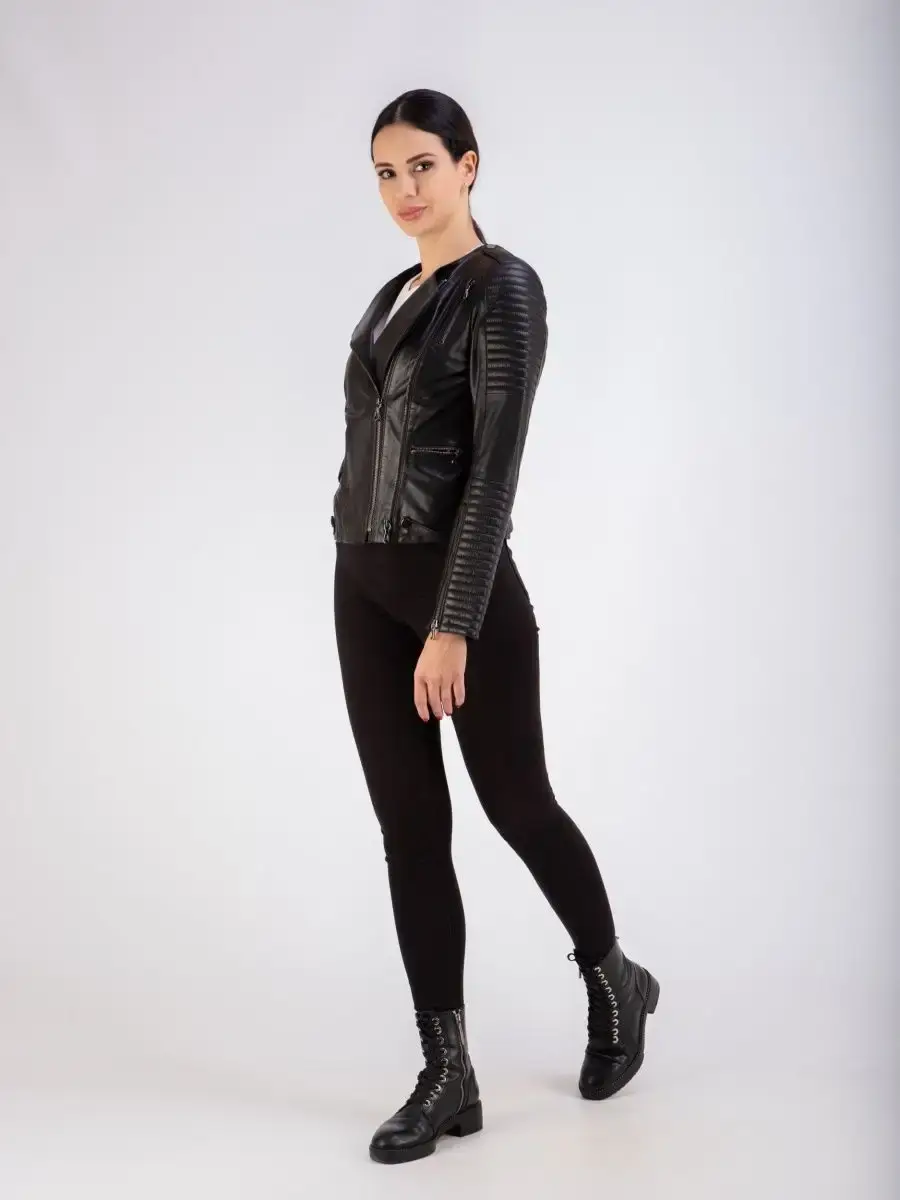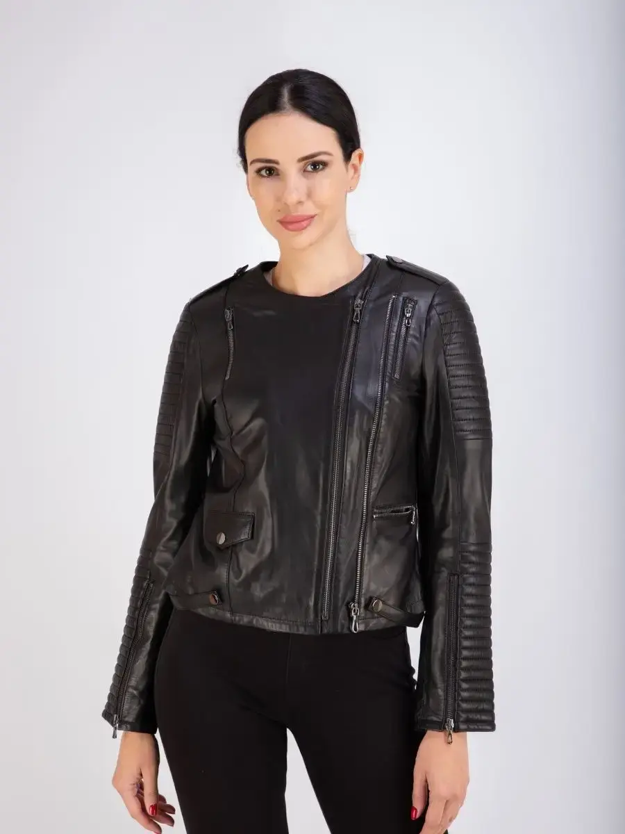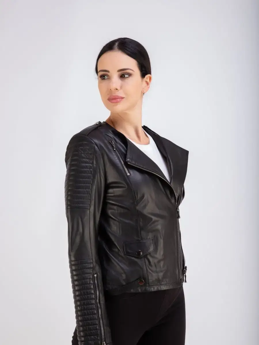 Куртка женская - косуха женская из натуральной кожи ягненка. Кожаная косуха женская натуральная с прорезными карманами на молнии очень удобная и стильная. Курка женская из натуральной кожи полуприталенного кроя всегда будет обладать превосходным видом. Кожаная куртка из гладкой кожи с английским воротником отличный вариант на каждый день, отлично сочетается с различными вещами. Производство Турция. Предлагаем широкий выбор моделей: кожаная куртка, из натуральной кожи, кожаная куртка женская, кожаная куртка косуха, куртка кожаная женская черная, кожаная куртка женская черная, кожаная куртка-рубашка, куртка рубашка, кожаный плащ, плащ женский, куртка, из натуральной кожи, косуха куртка женская, косуха женская, кожаная куртка косуха, куртка демисезонная, для высоких, для невысоких, большие размеры, оверсайз, женская куртка.