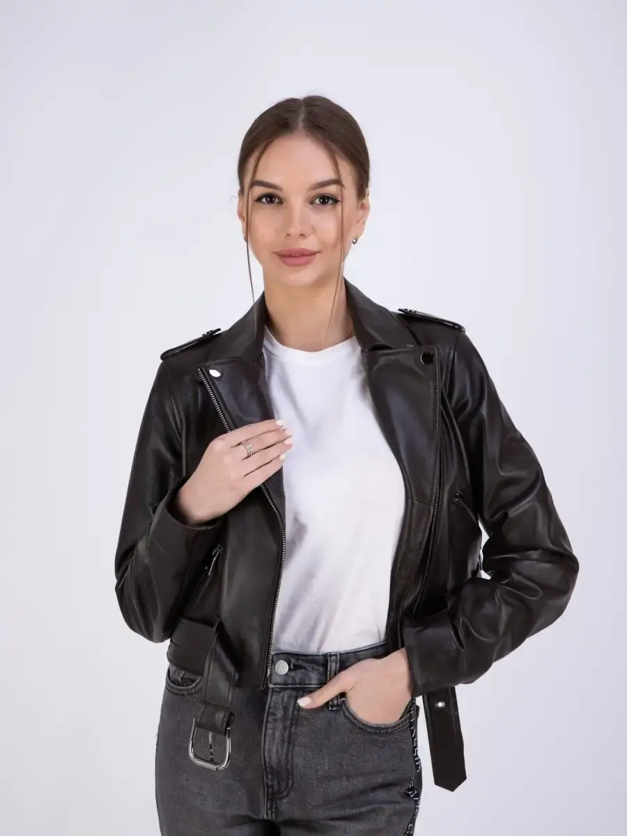 Короткая куртка женская - косуха женская из натуральной кожи ягненка. Кожаная косуха женская натуральная с прорезными карманами на молнии очень удобная и стильная. Курка женская из натуральной кожи приталенного кроя всегда будет обладать превосходным видом. Кожаная куртка из гладкой кожи с английским воротником отличный вариант на каждый день, отлично сочетается с различными вещами. MONDIAL Производство Турция. Предлагаем широкий выбор моделей: кожаная куртка, из натуральной кожи, кожаная куртка женская, кожаная куртка косуха, куртка кожаная женская черная, кожаная куртка женская черная, кожаная куртка-рубашка, куртка рубашка, кожаный плащ, плащ женский, куртка, из натуральной кожи, косуха куртка женская, косуха женская, кожаная куртка косуха, куртка демисезонная, для высоких, для невысоких, большие размеры, оверсайз, женская куртка
