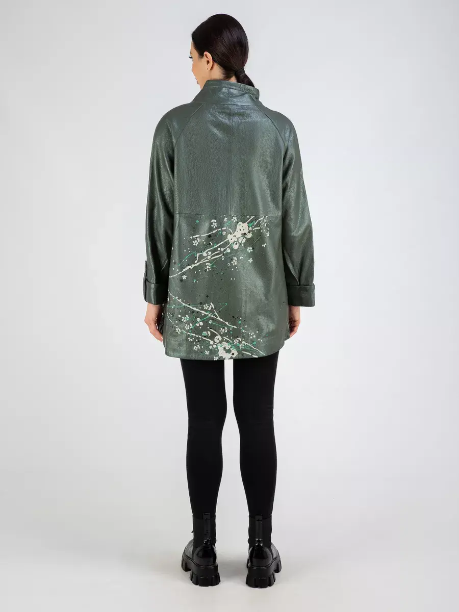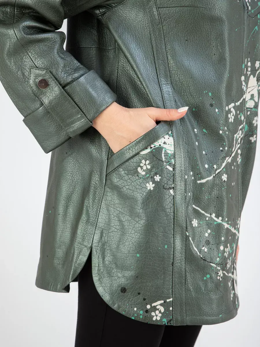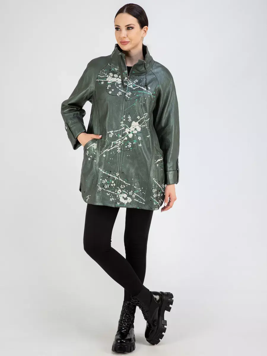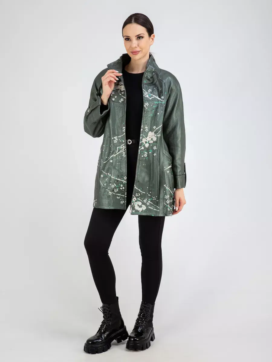 Каждая деталь этой удлиненной кожаной куртки выполнена с особым вниманием к качеству материалов. Премиальная фактурная кожа, ровные швы, модные прорезные карманы, яркий цвет и принт, манжеты и ассиметричный подол добавляют акценты стиля и функциональности, делают эту женскую куртку эксклюзивным элементом гардероба, который подходит практически под любой стиль, деловой или повседневный. Стильная застежка на молнии придаёт образу особый шарм. Высокий воротник стойка с кулиской добавляет изюминку образу, делая его неповторимым.