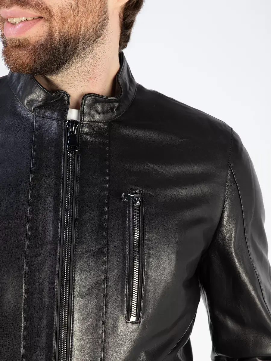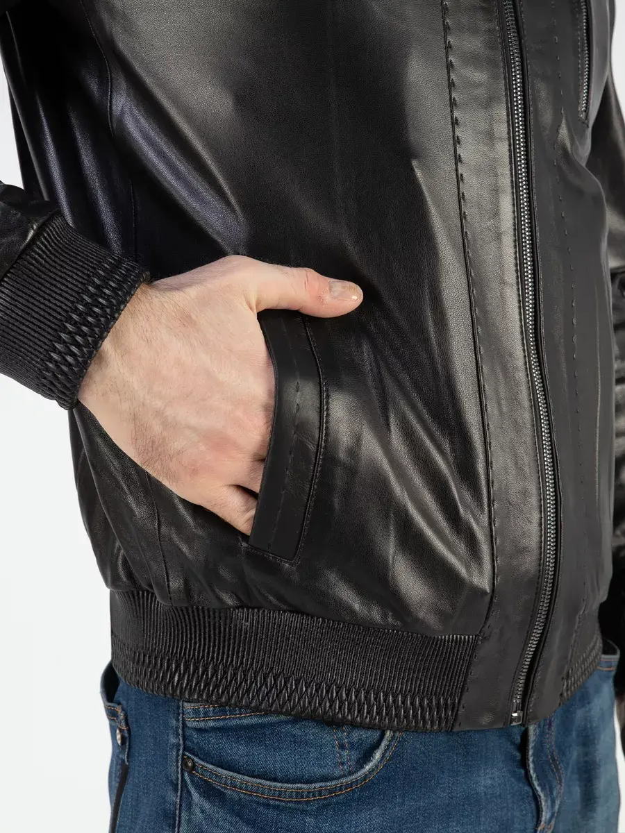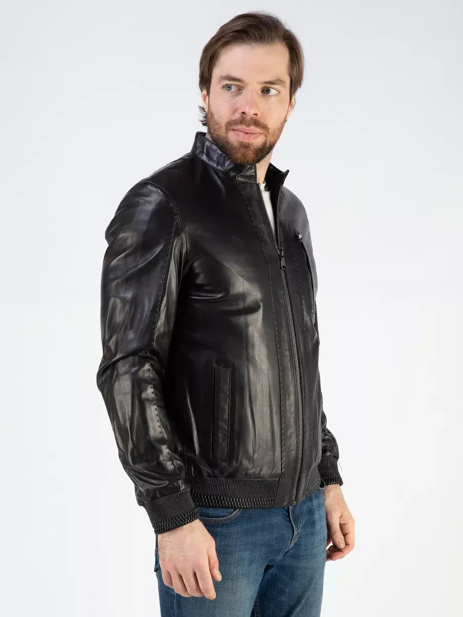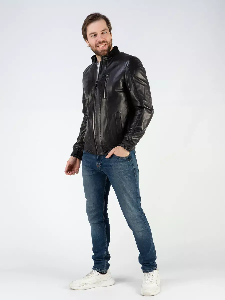Куртка мужская демисезонная из высококачественной натуральной кожи, эта стильная и практичная верхняя одежда, которая идеально подойдет для носки весной и осенью. Кожаная куртка изготовлена из натуральной кожи ягненка выделки вежеталь, которая обеспечивает комфорт и долговечность. Выделка кожи плотная и мягкая, износоустойчивая к царапинам и воздействию окружающей среды поэтому дольше сохраняет отличный внешний вид.