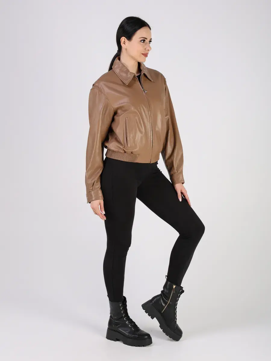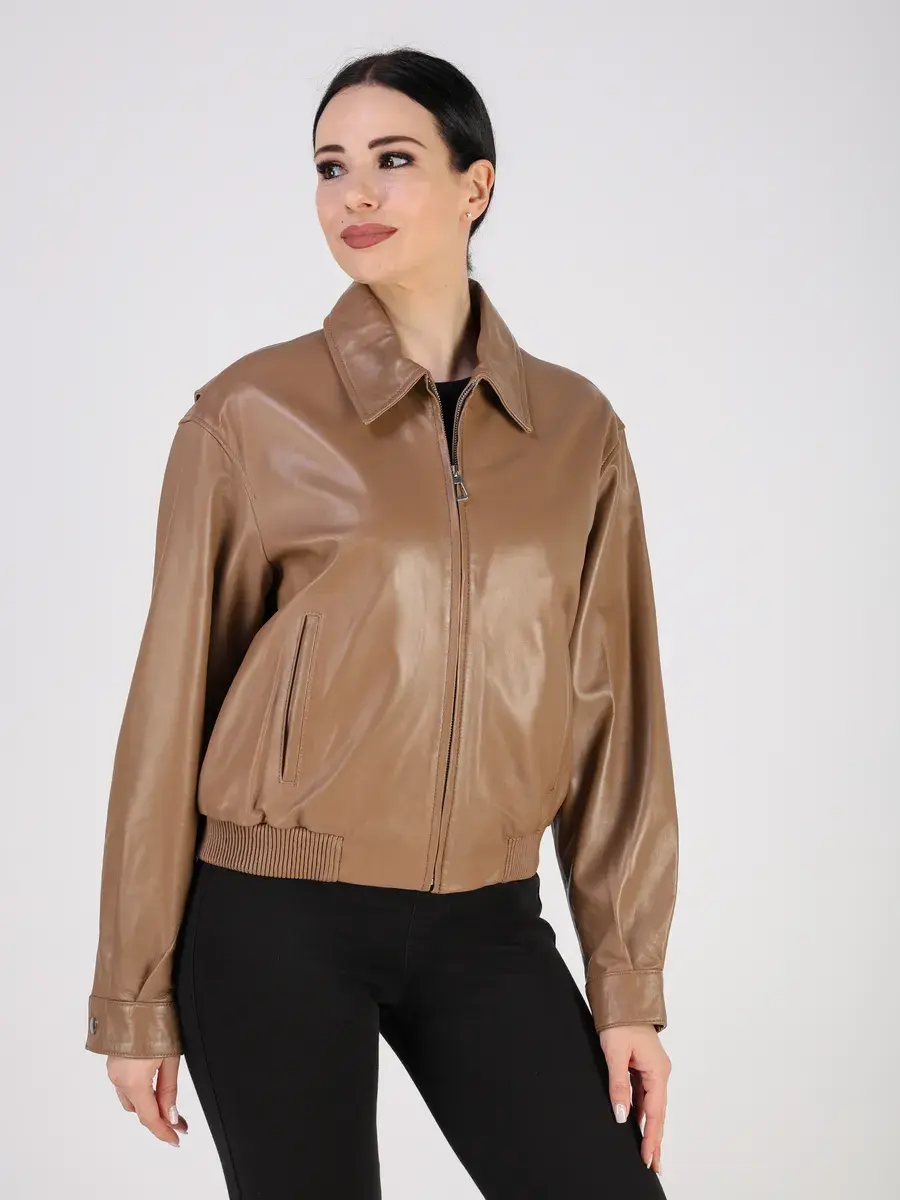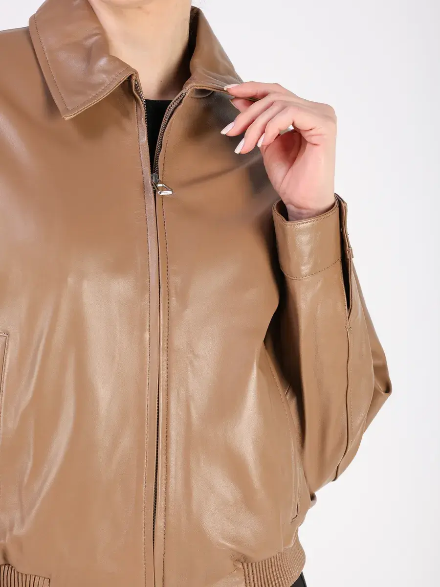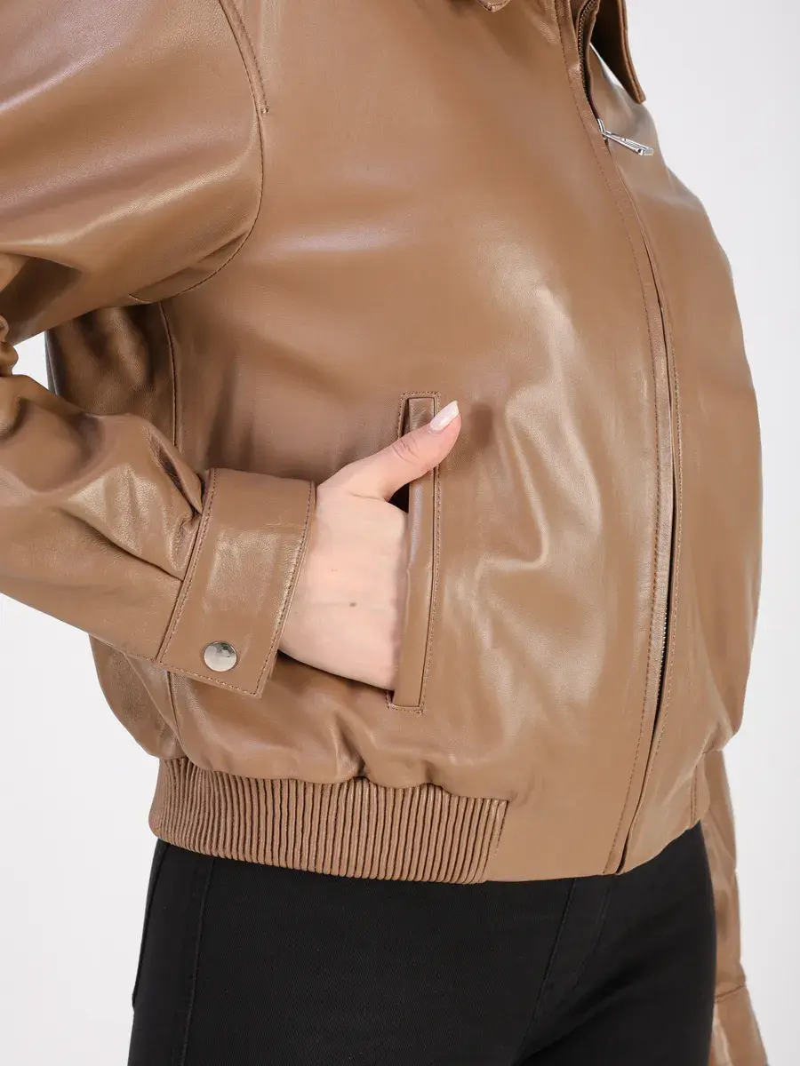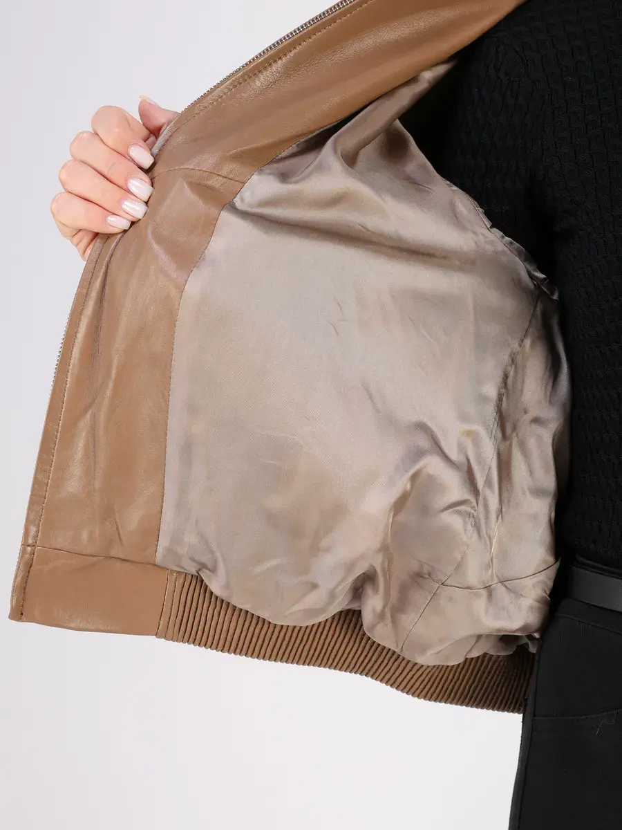 Куртка осенняя женская изготовлена из высококачественной кожи ягненка, которая отличается высокой прочностью и долговечностью, сохраняя при этом свою мягкость и эластичность, в любое время года, осенью и весной.