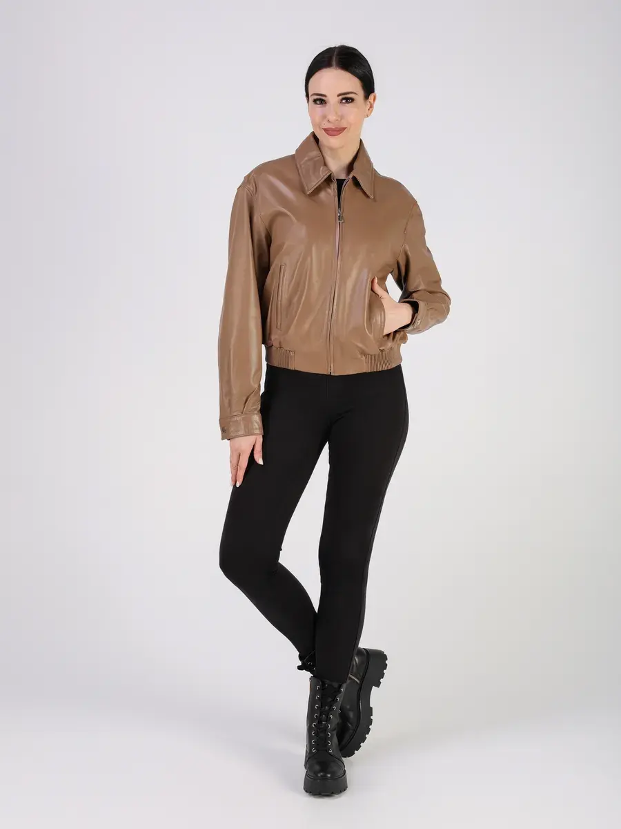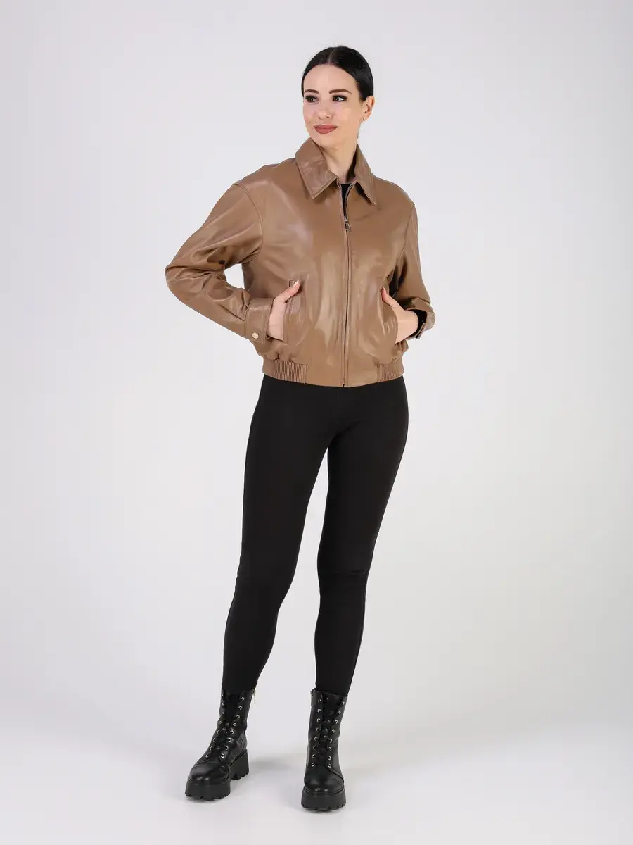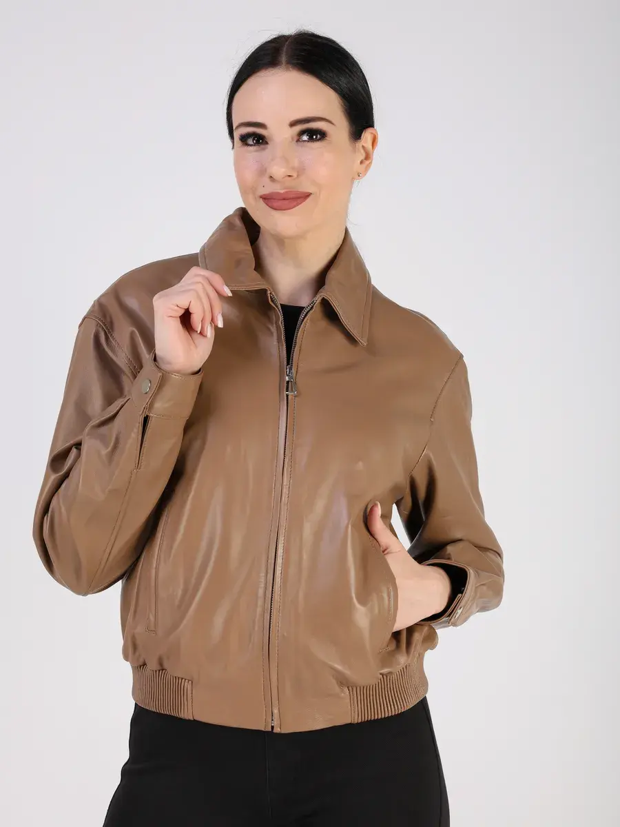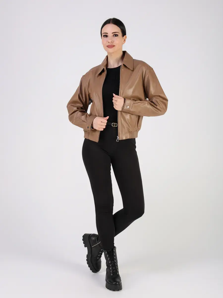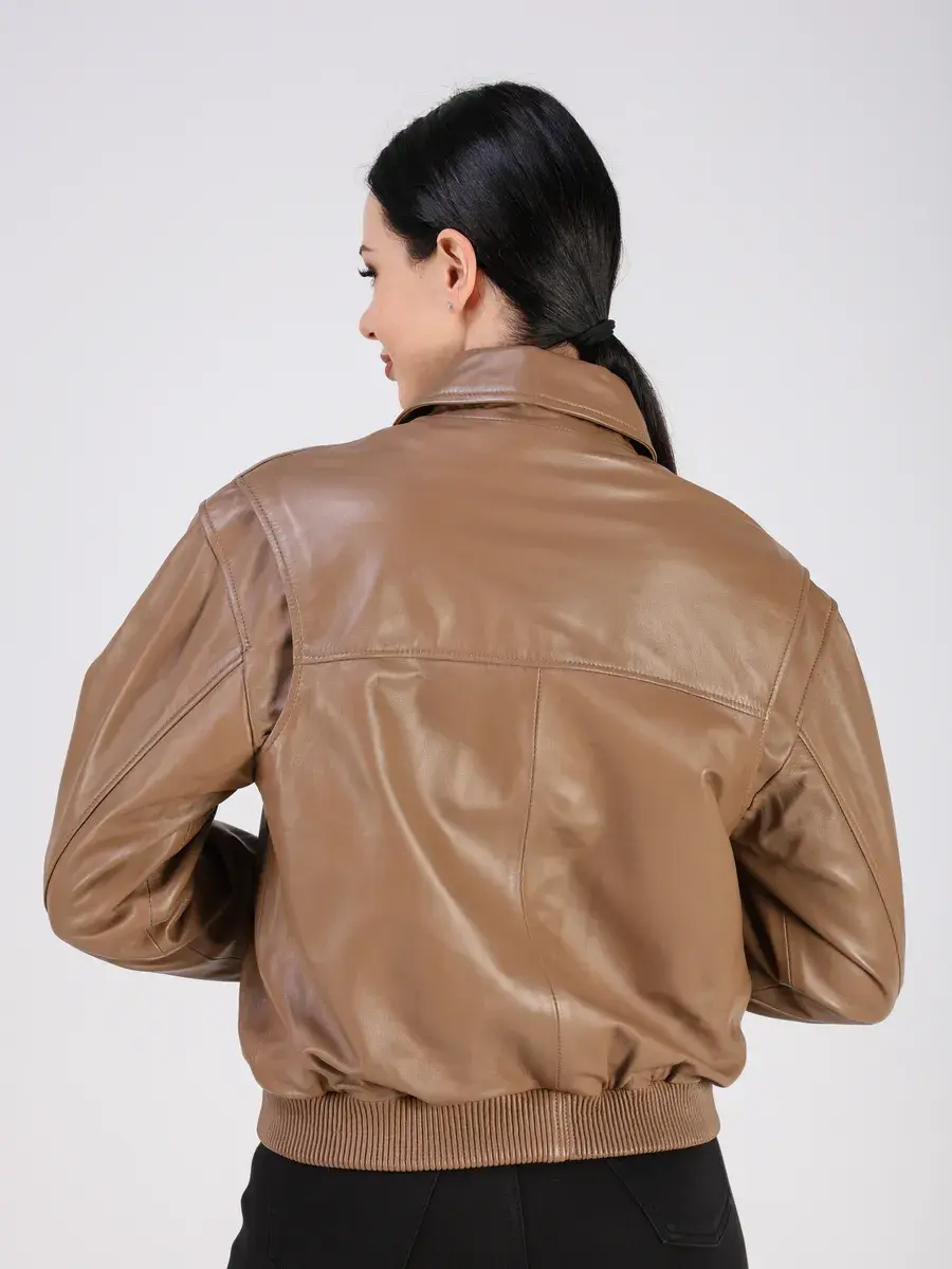 Куртка осенняя женская изготовлена из высококачественной кожи ягненка, которая отличается высокой прочностью и долговечностью, сохраняя при этом свою мягкость и эластичность, в любое время года, осенью и весной.